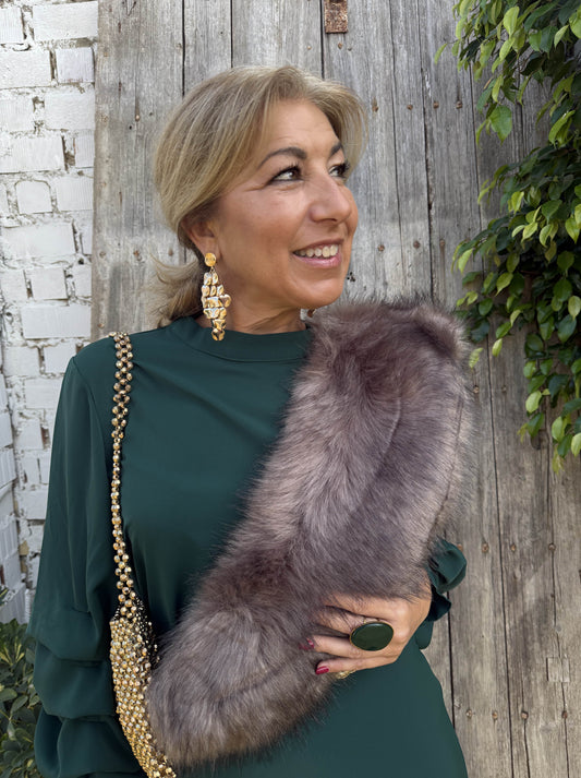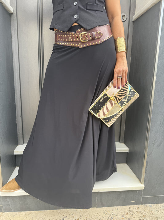 FALDA DRAPEADA TERCIOPELO BROCHE DORADO