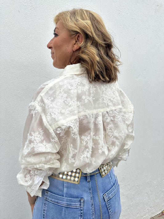 CAMISA TRANSPARENCIAS BORDADO BEIGE