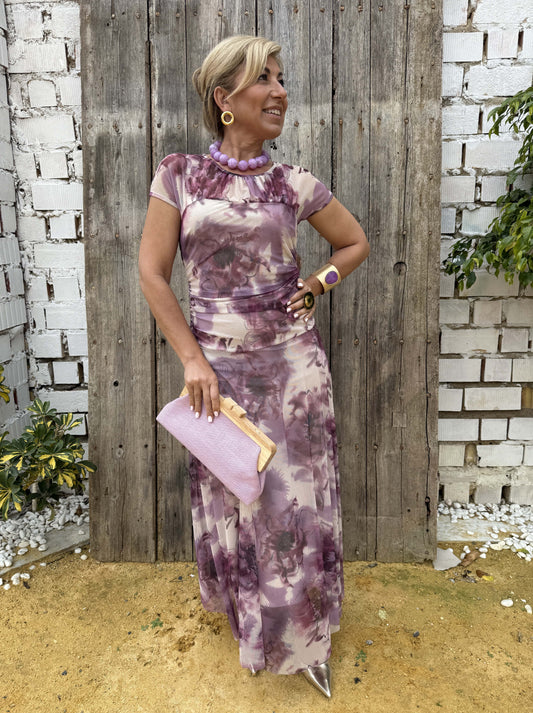 VESTIDO TUL CINTURA FRUNCIDA ESTAMPADO