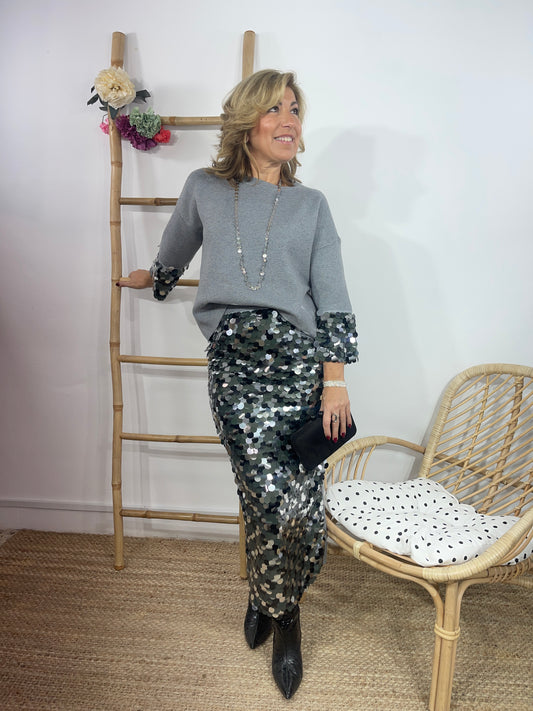 FALDA DRAPEADA TERCIOPELO Y LENTEJUELAS
