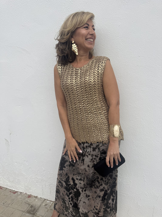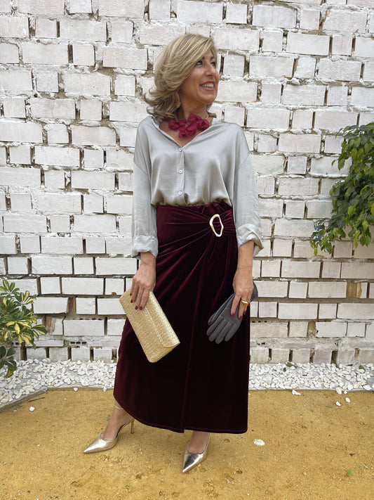 FALDA DRAPEADA TERCIOPELO BROCHE DORADO