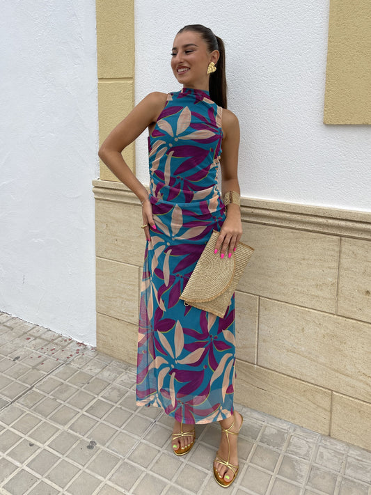 OfertaVESTIDO ESTAMPADO TUL FRUNCE