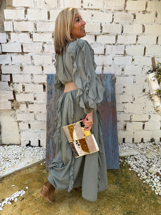 FALDA DRAPEADA TERCIOPELO BROCHE DORADO