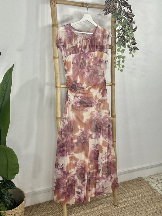 VESTIDO TUL CINTURA FRUNCIDA ESTAMPADO
