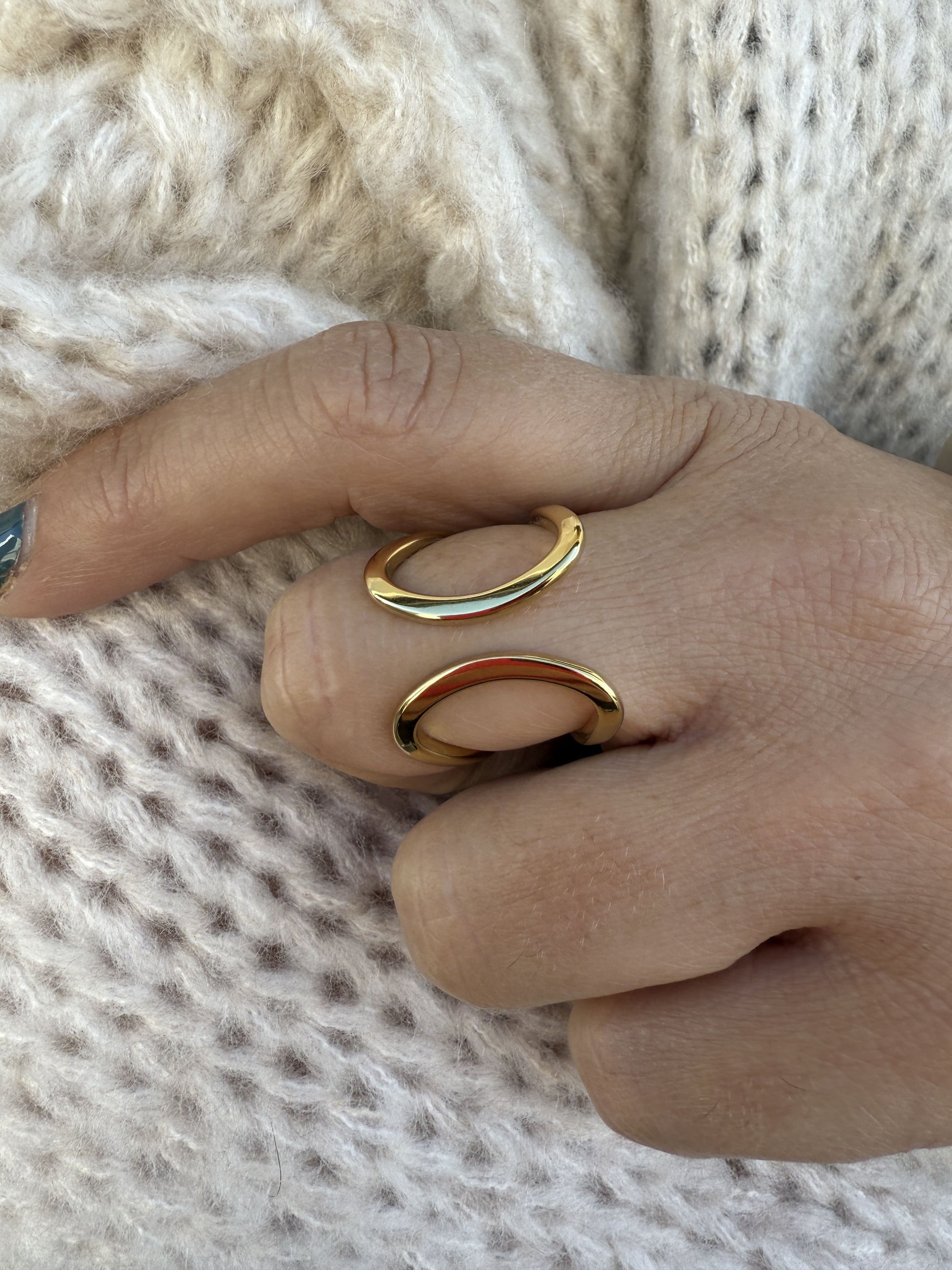 Anillo de acero con forma irregular y apertura en la parte superior.