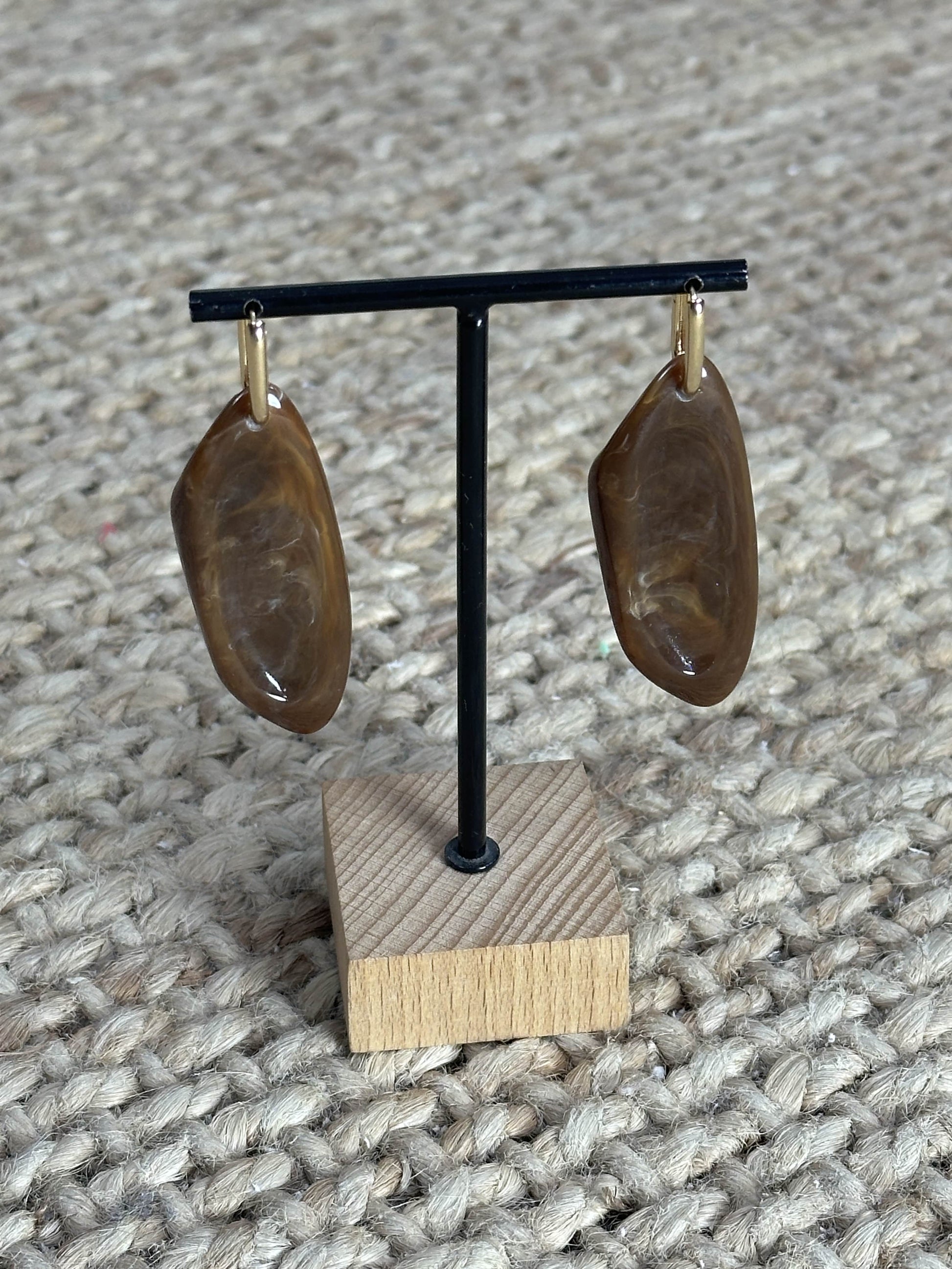 Argolla pequeña de acero dorada con abalorio de piedra de resina colgando.