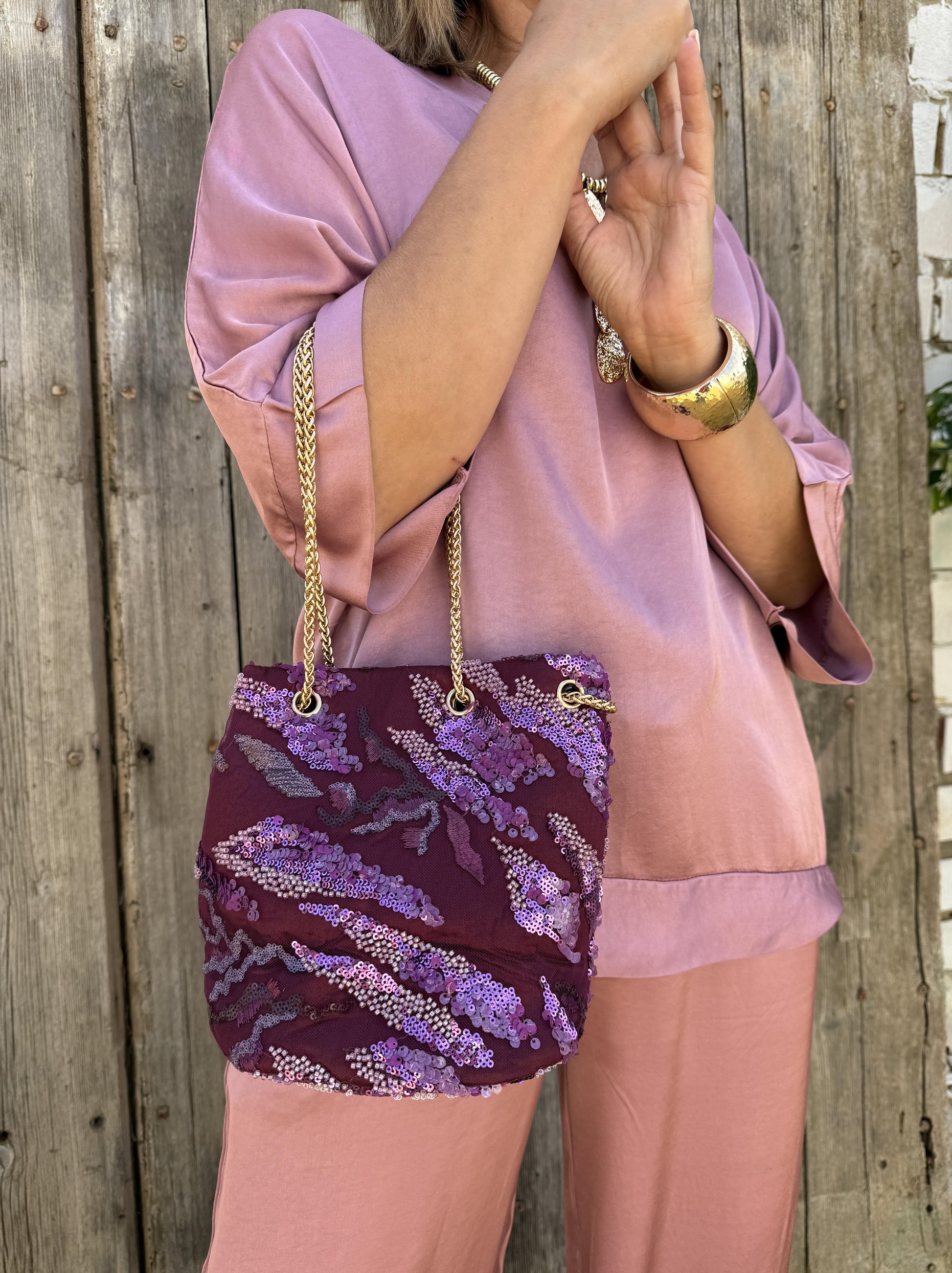 Disponible en color violeta y burdeos.