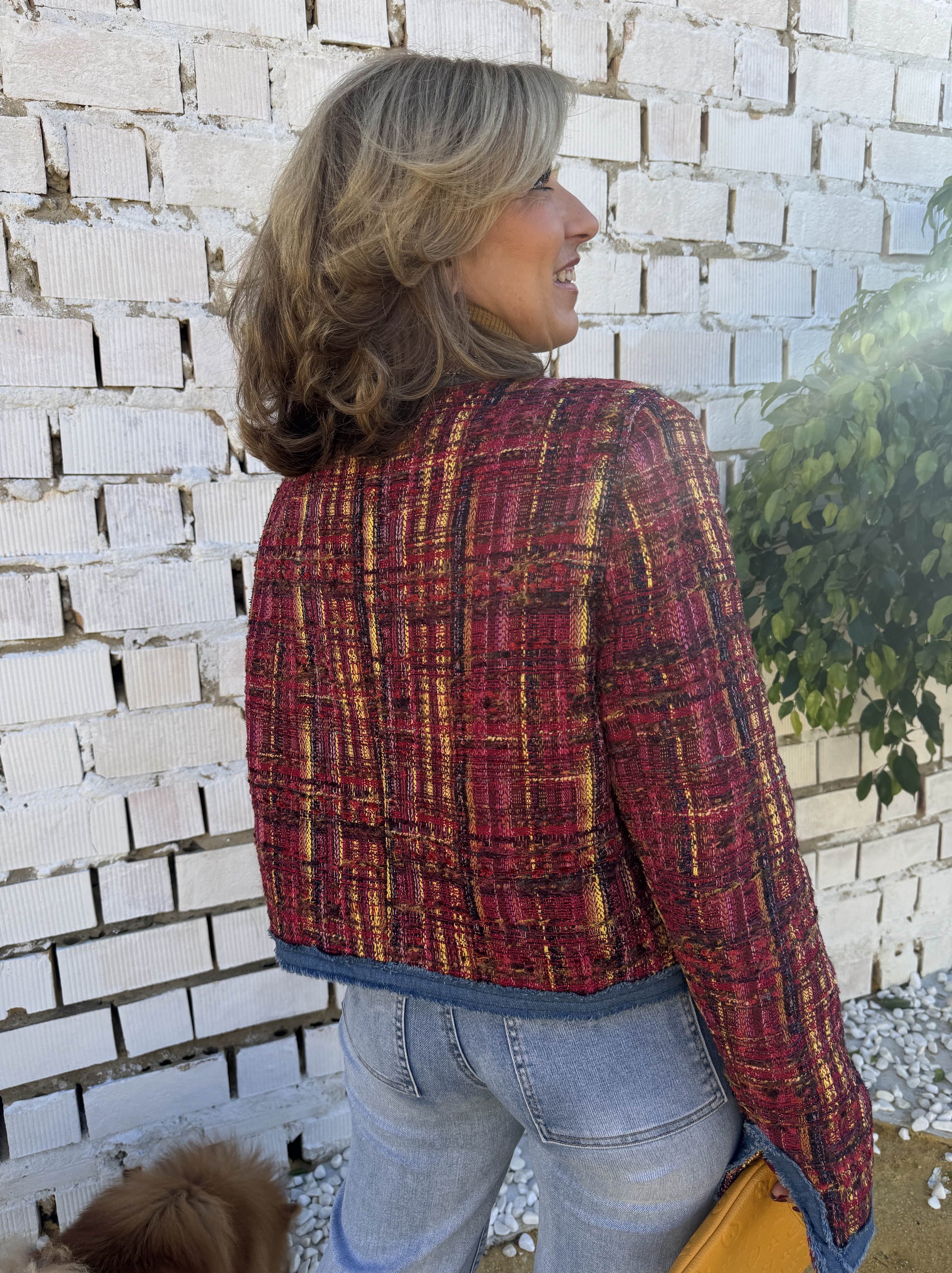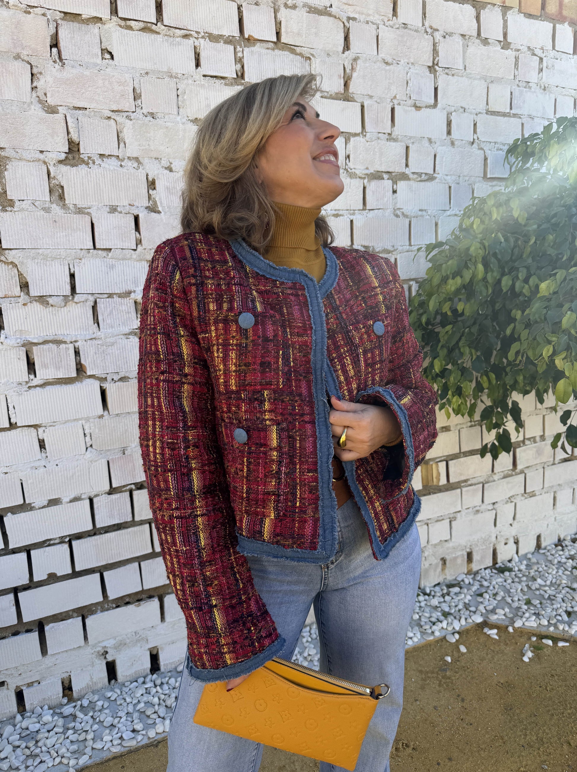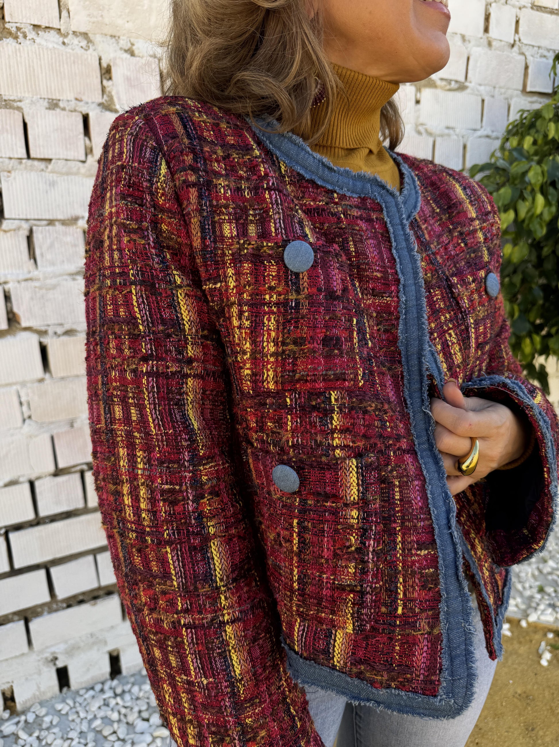 Chaqueta tweed corta con hilos de colores y filo vaquero.