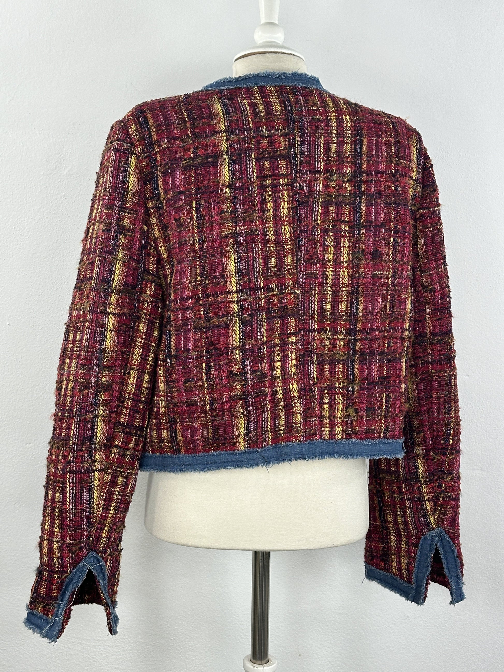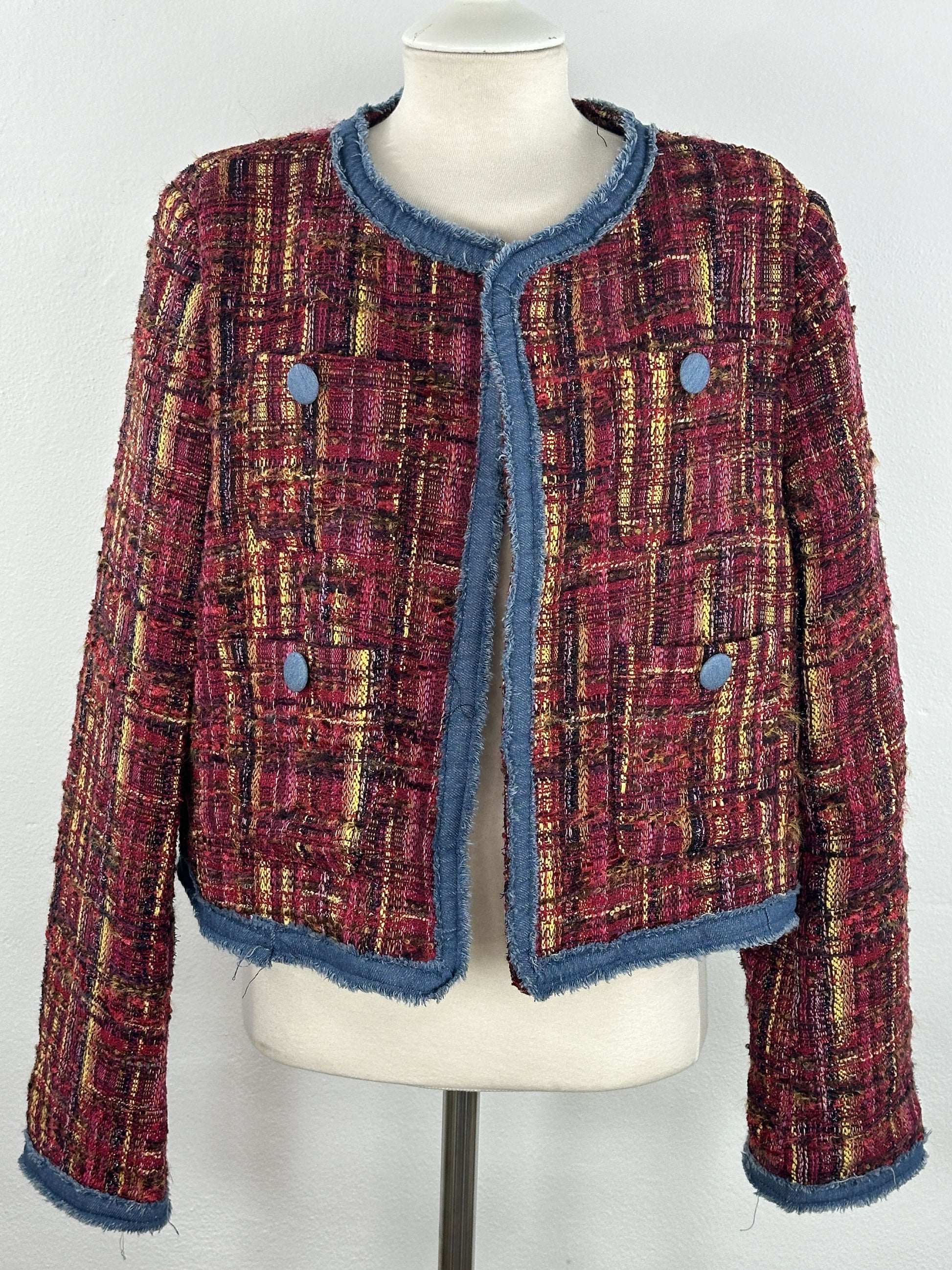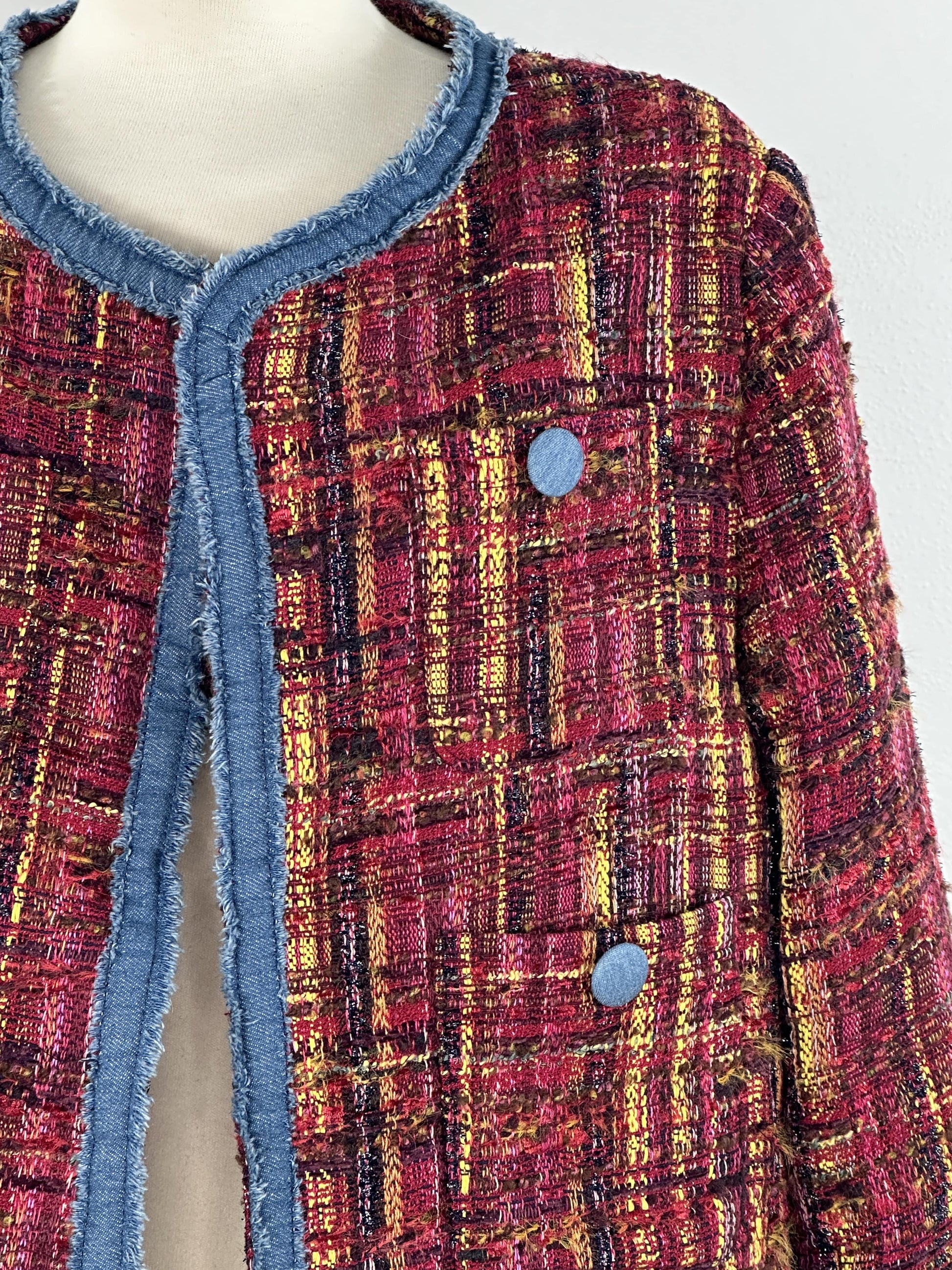 Chaqueta tweed corta con hilos de colores y filo vaquero.