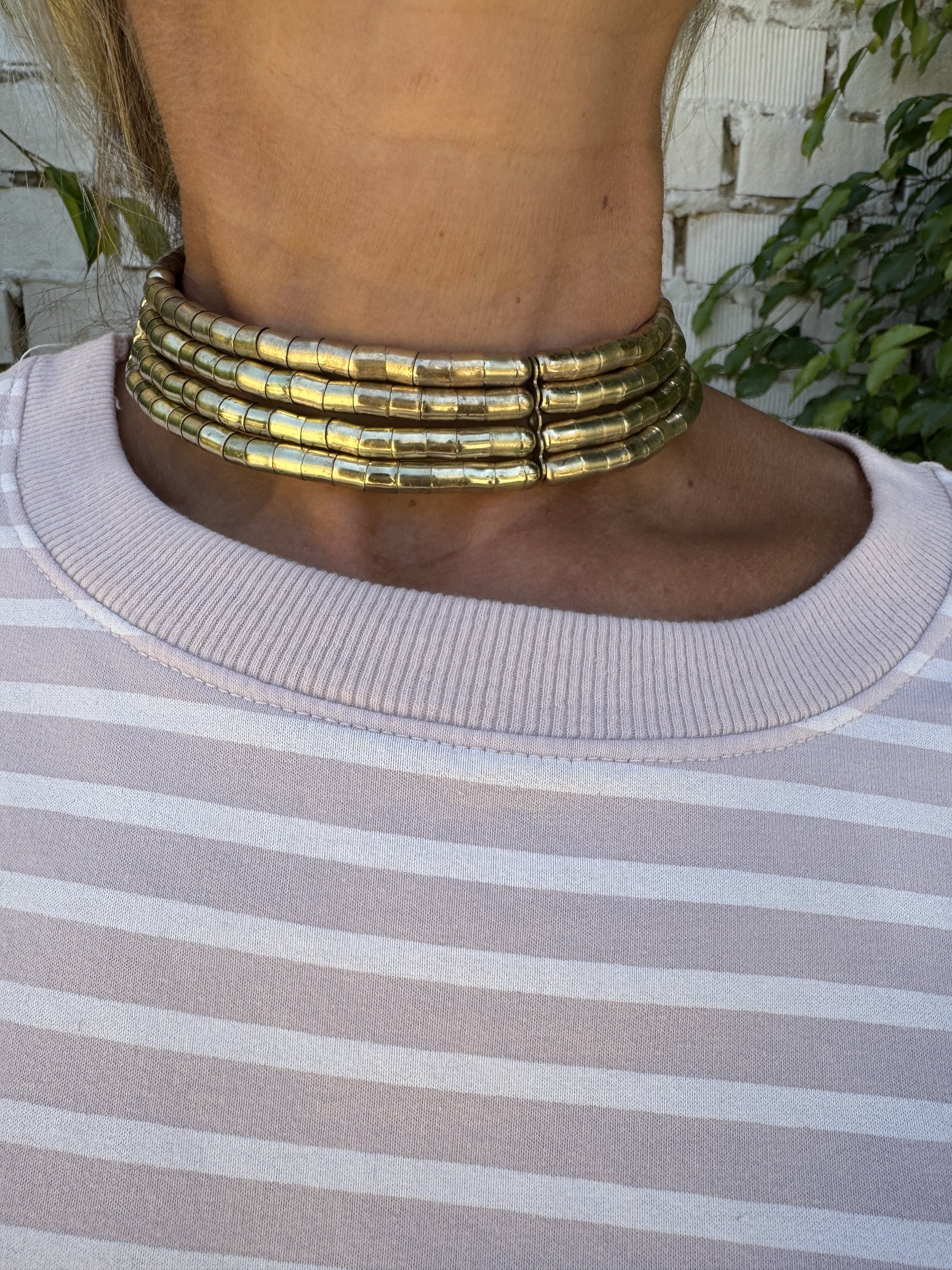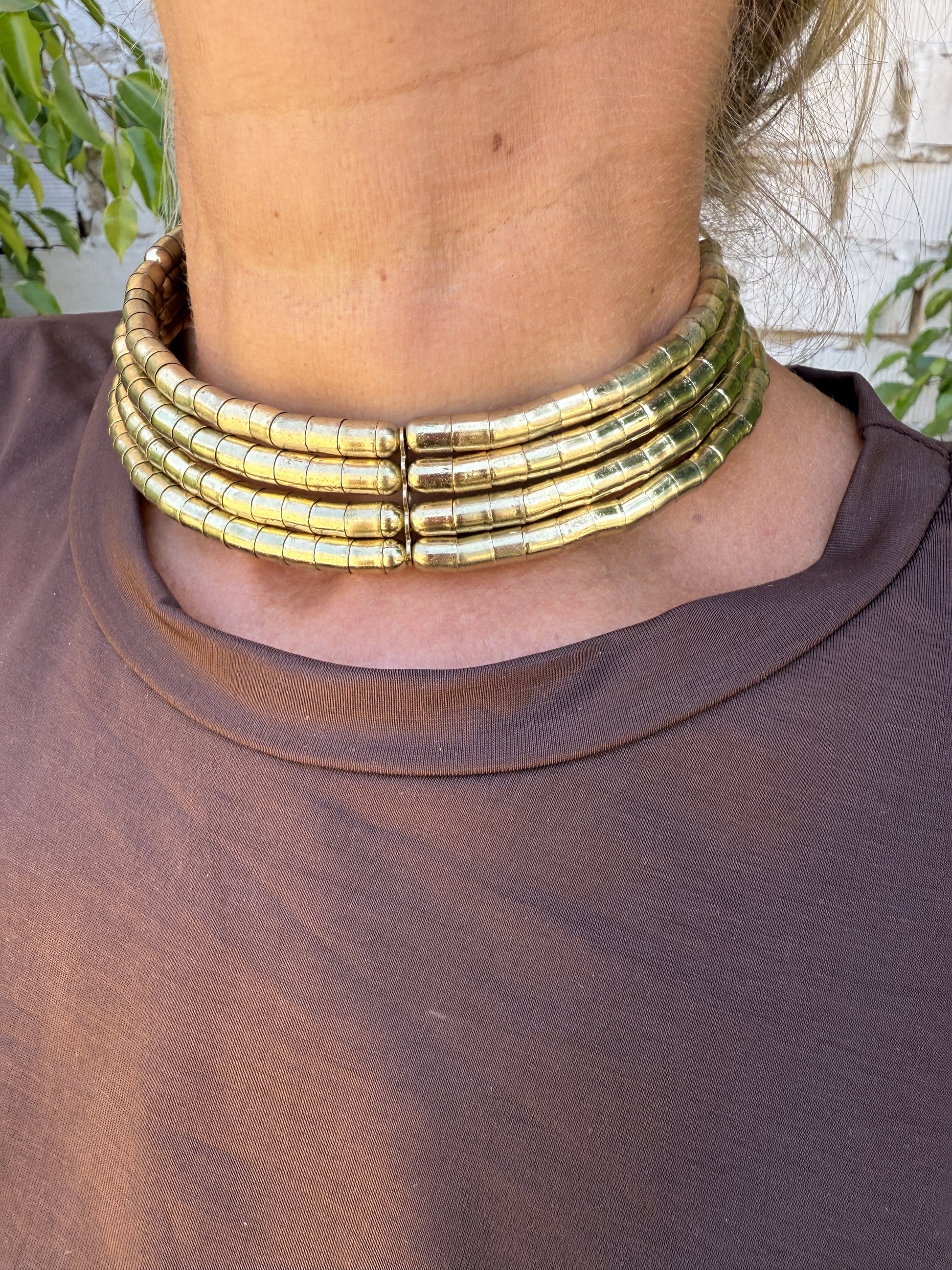 Choker semirrígido en color dorado con 4 tiras tipo gusanito.