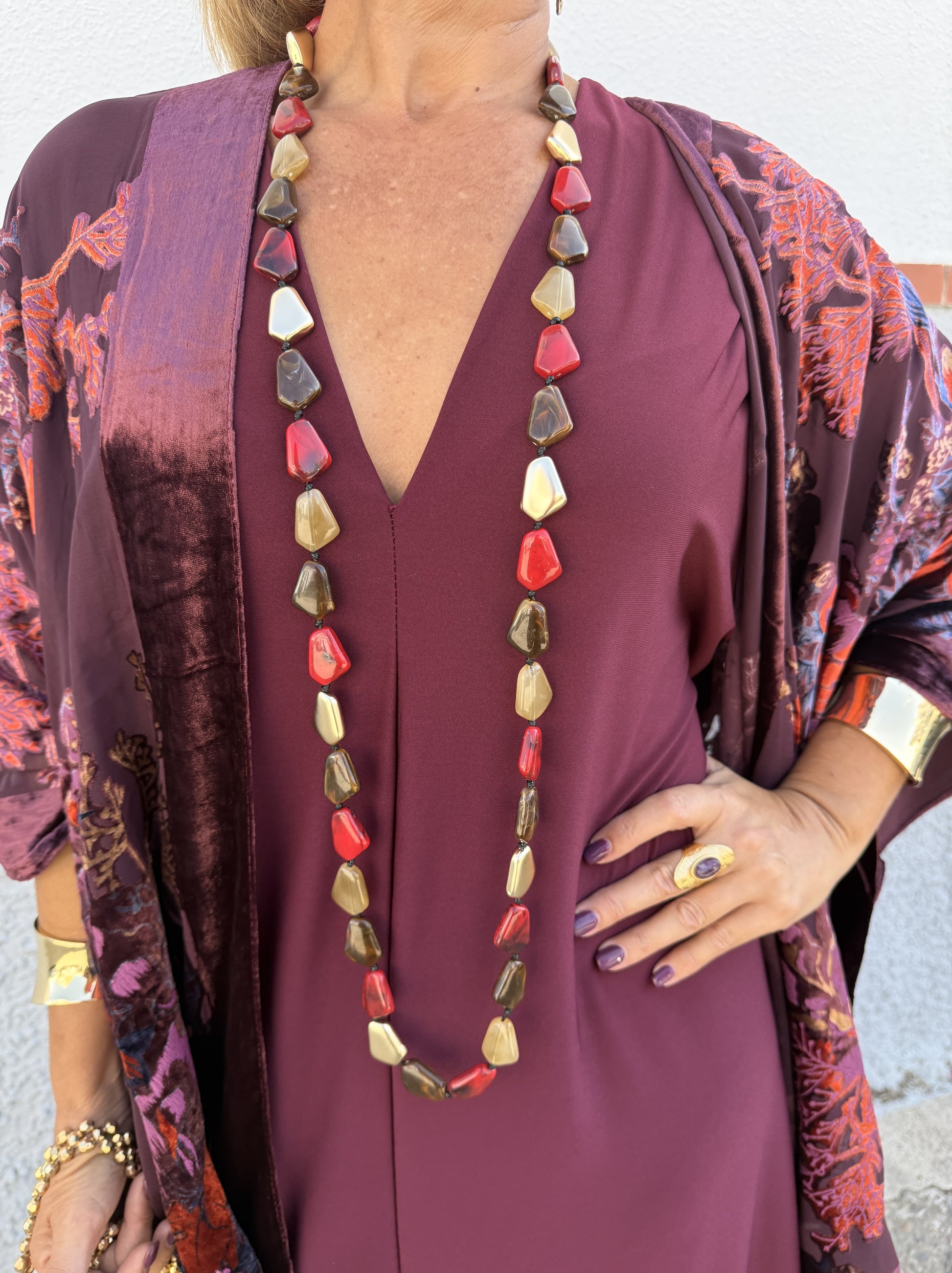 Collar largo con abalorios en forma de piedra de diferentes colores.