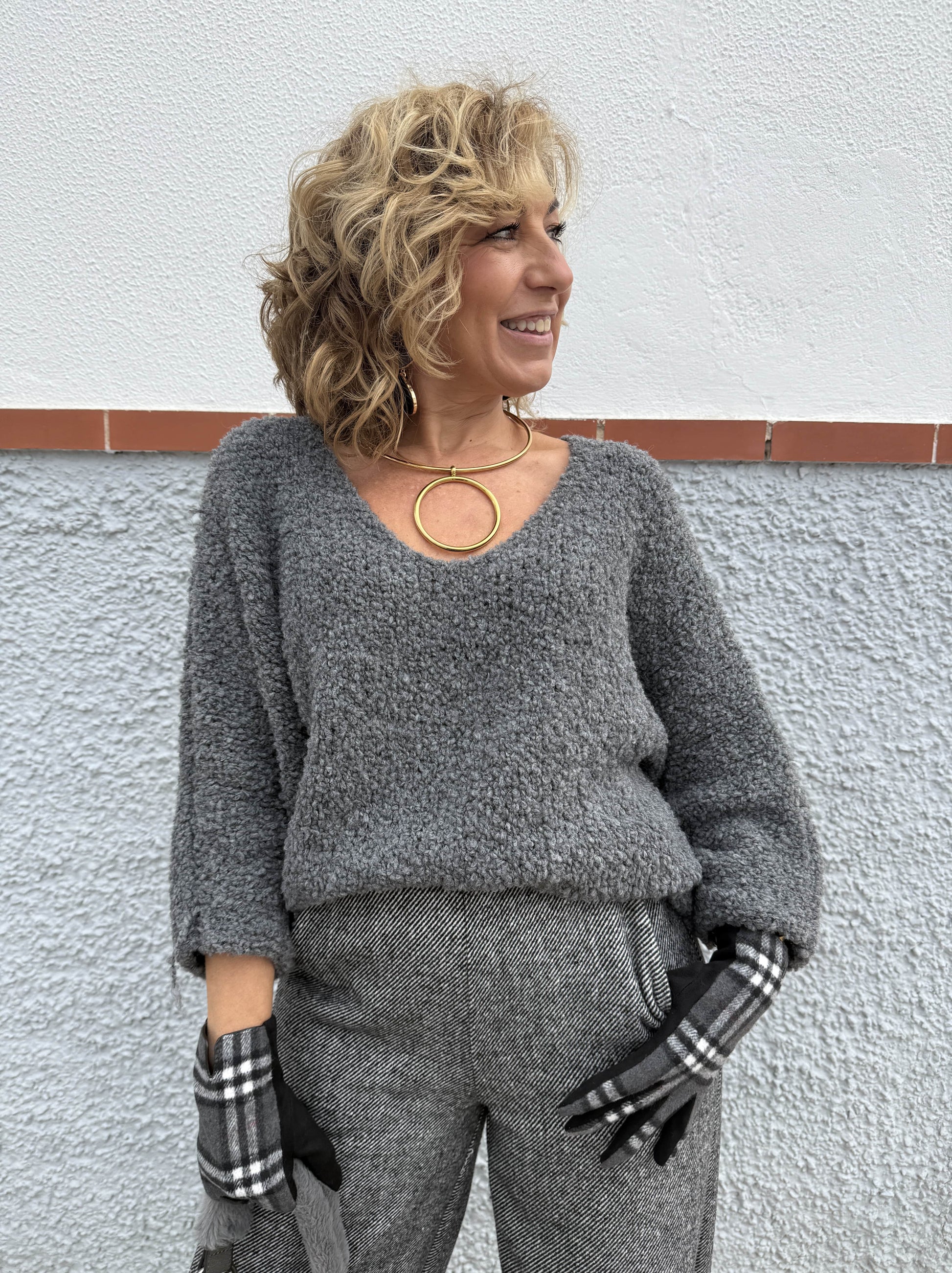 Disponible en color gris, verde cacería, negro, burdeos, tierra, mostaza, blanco roto, arena, topo y beige.