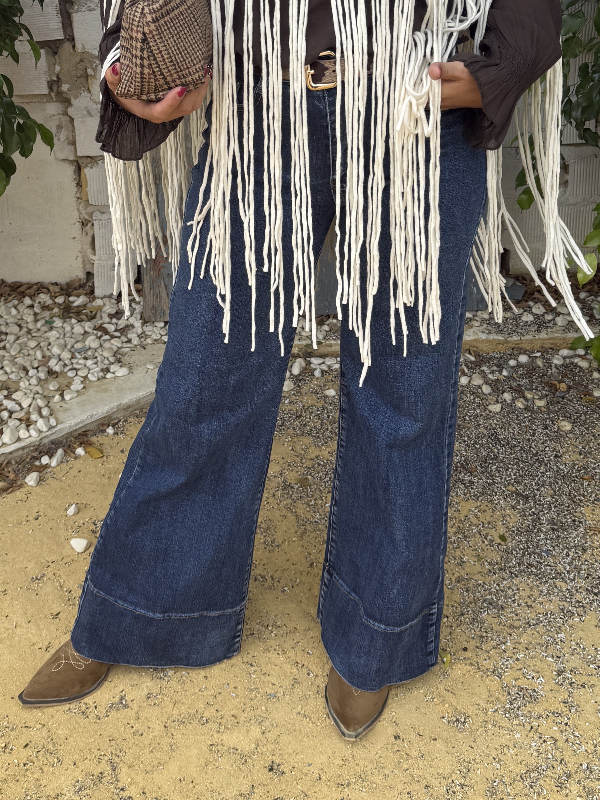 Pantalón vaquero de mujer con costura del bajo ancho.