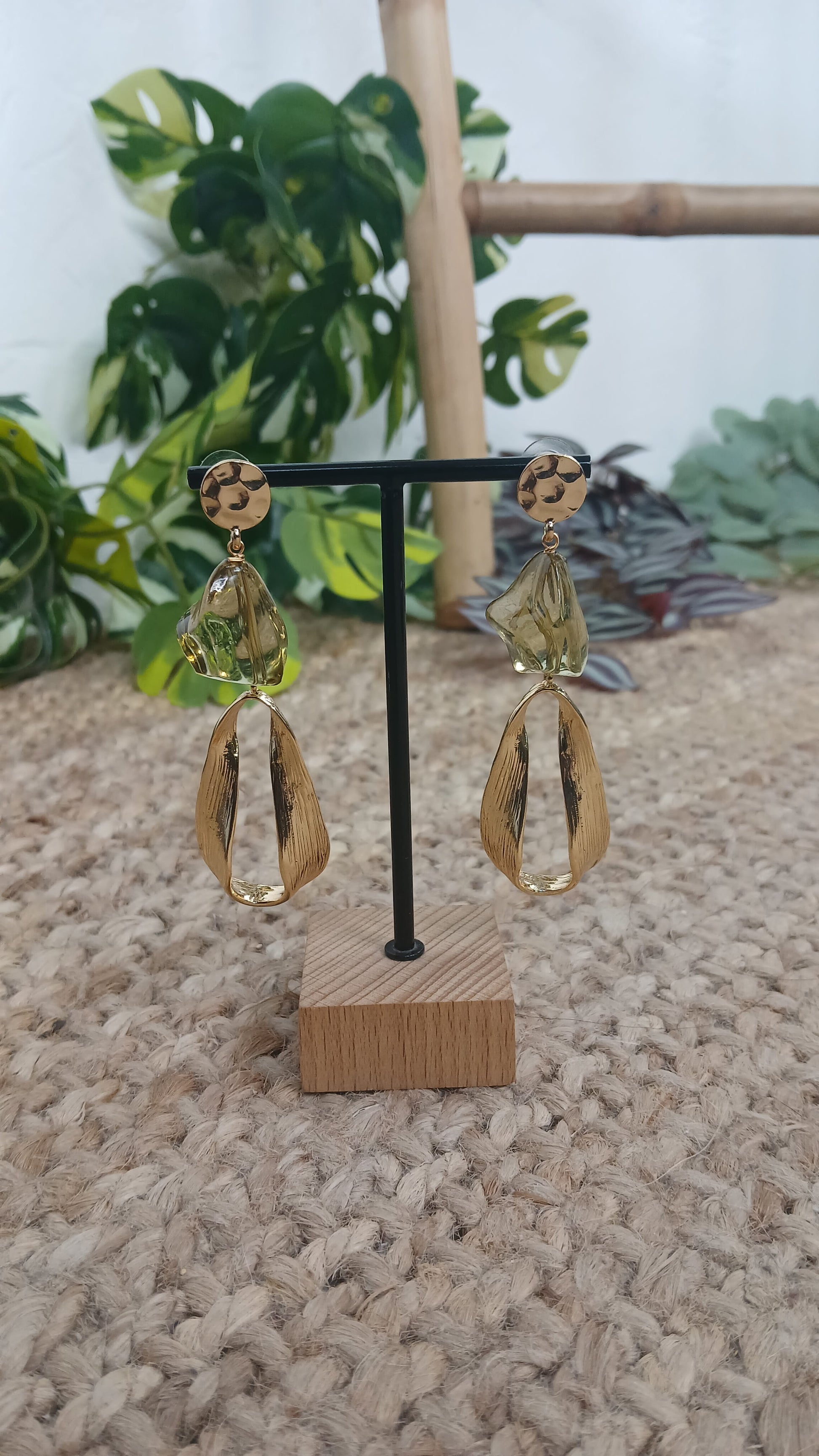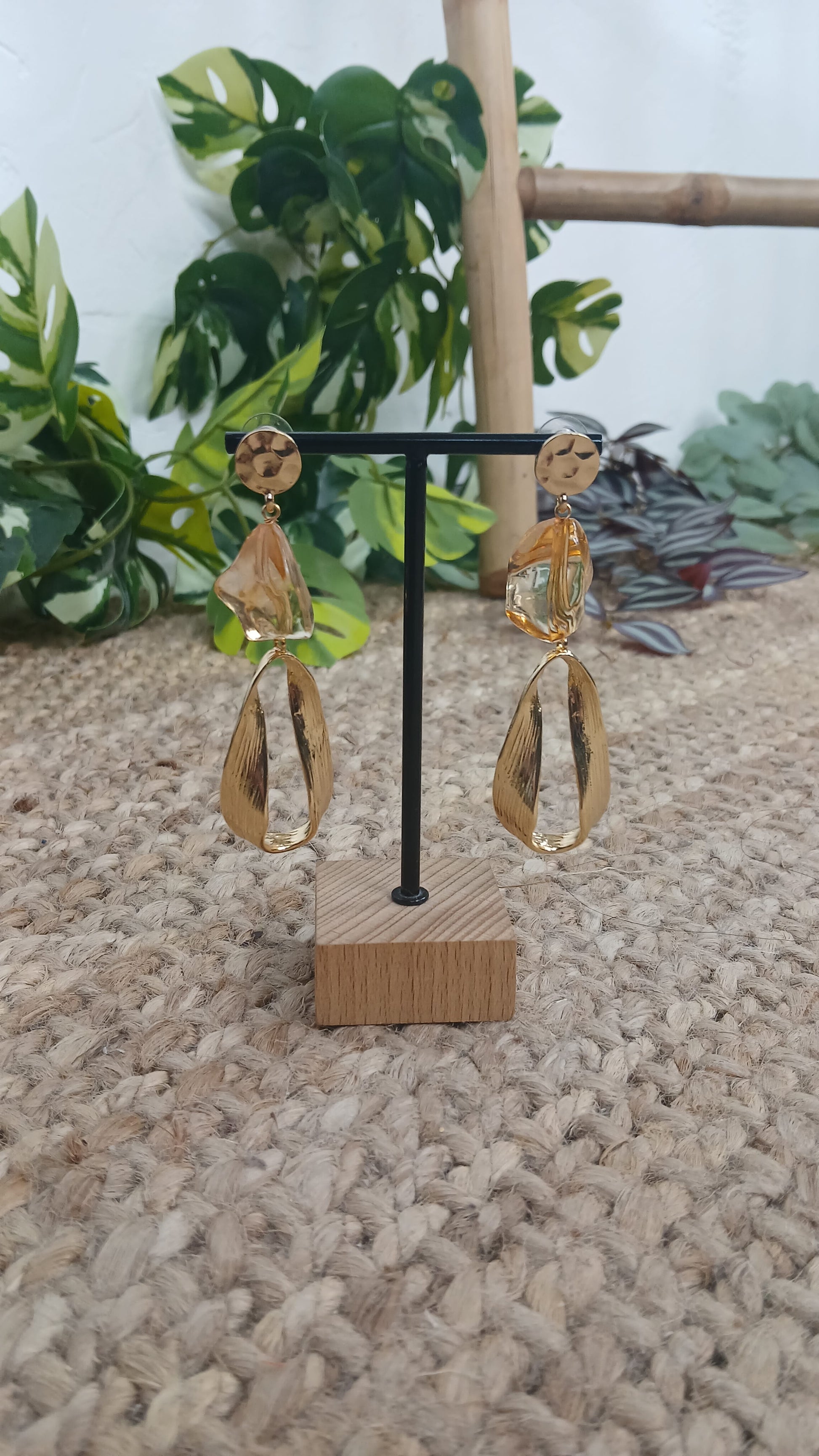 Tiene un abalorio de resina en forma de piedra semitransparente.