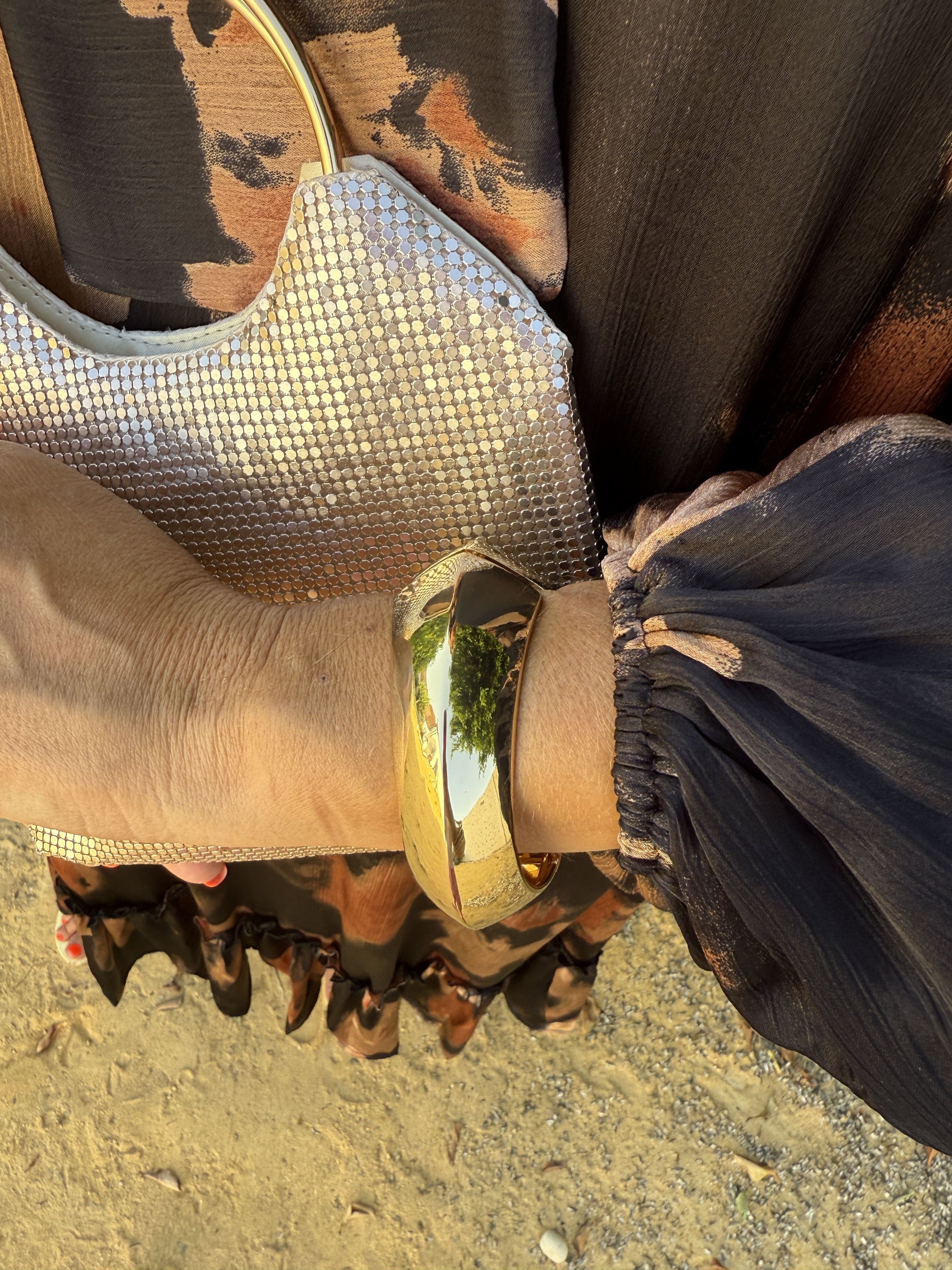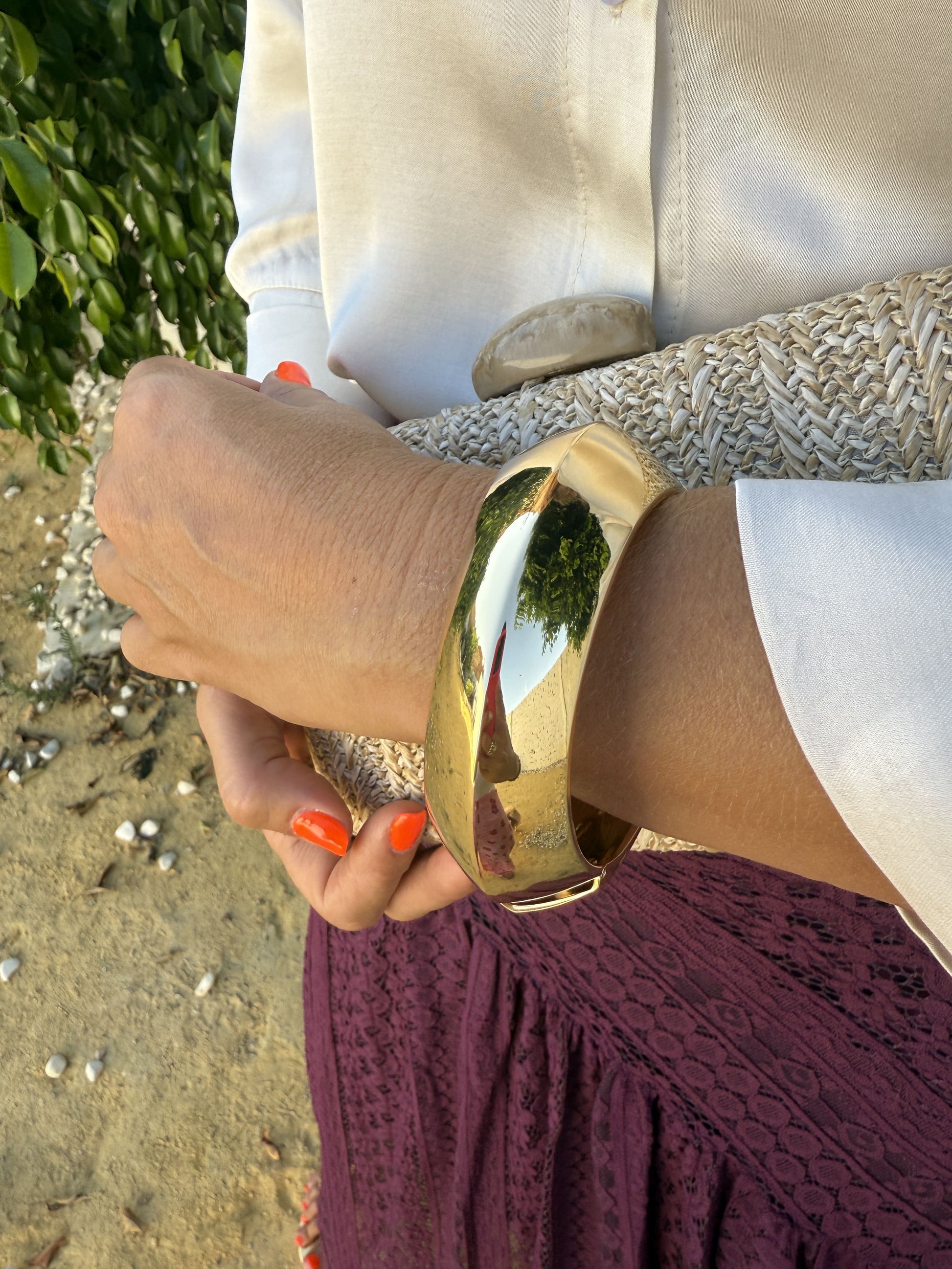 Pulsera tipo brazalete con forma asimétrica y cierre.