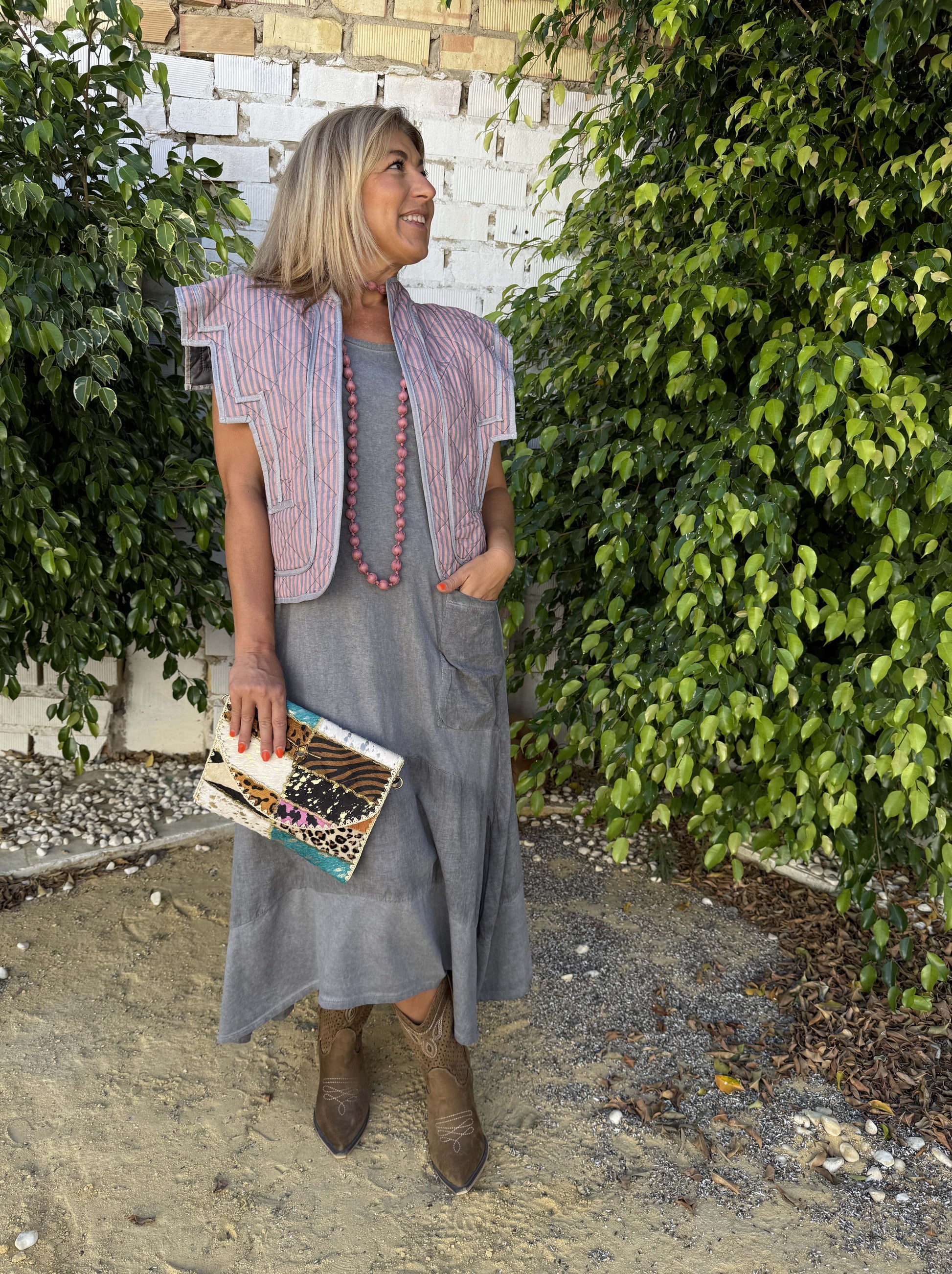Vestido tipo camiseta de algodón con bolsillo en el lateral.