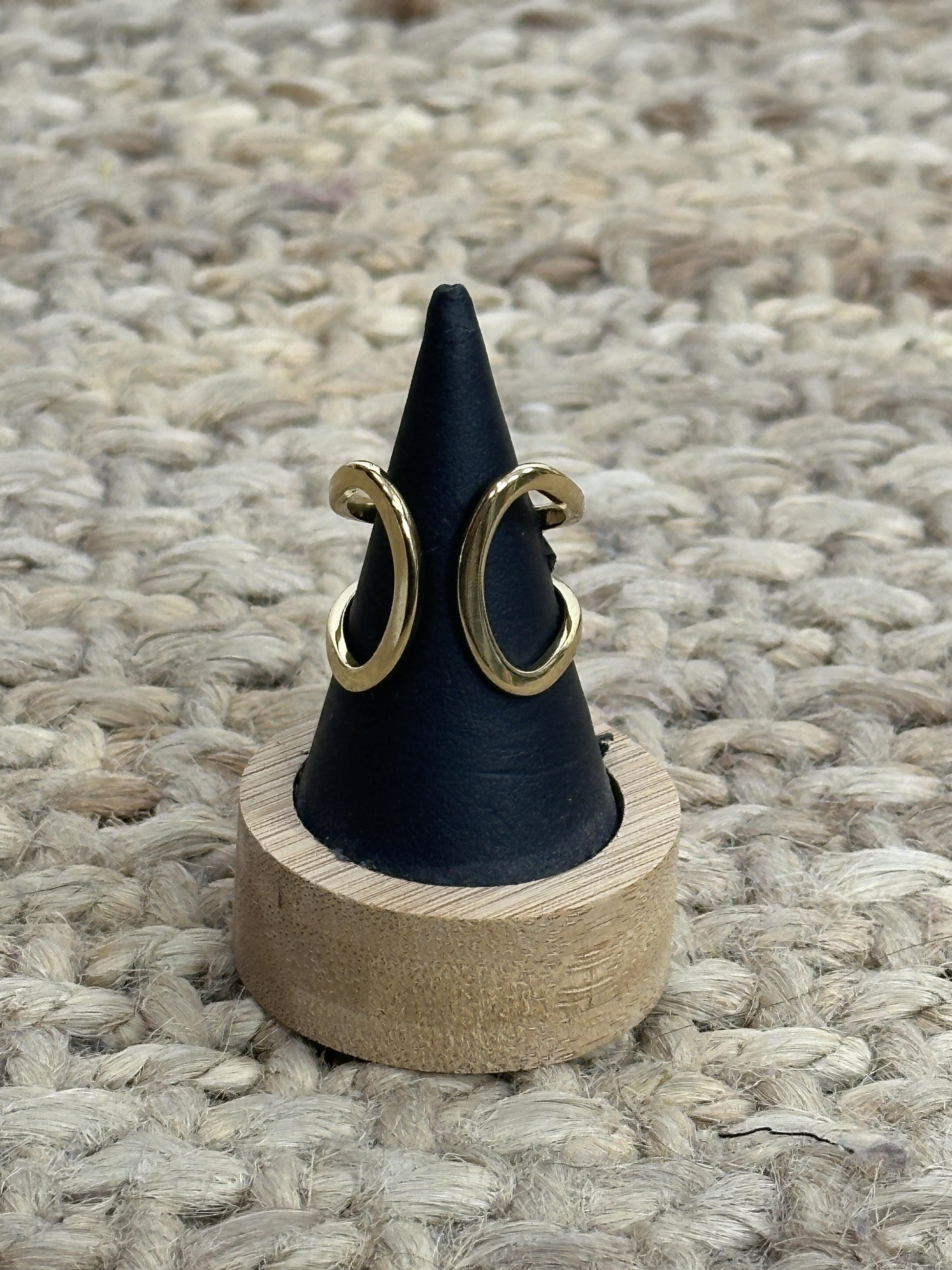 Anillo de acero con forma irregular y apertura en la parte superior.