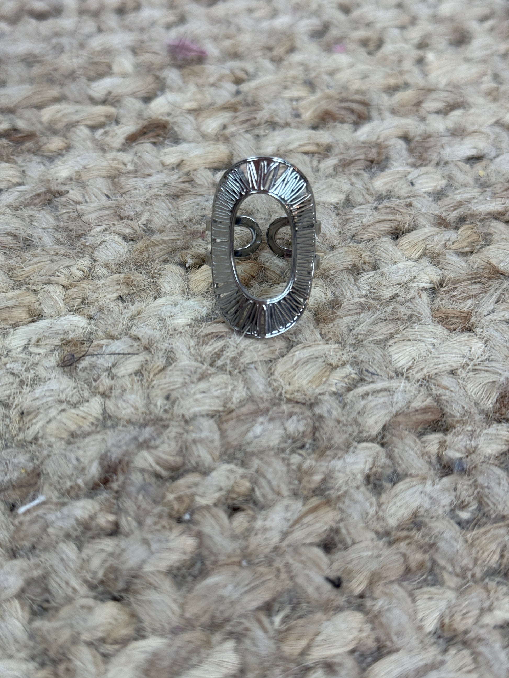 Anillo en forma ovalada con tiras en color plata , anillo ajustable.