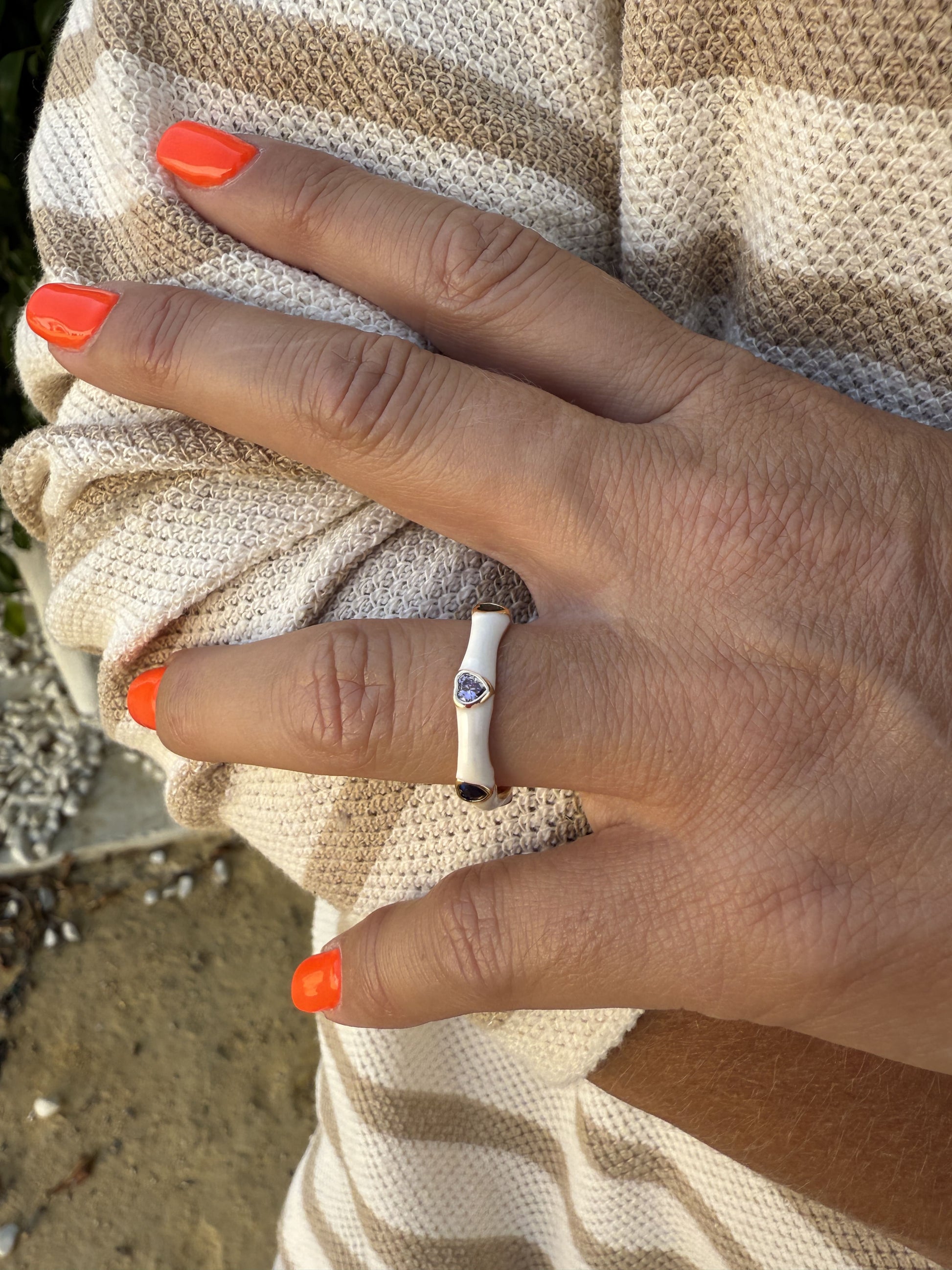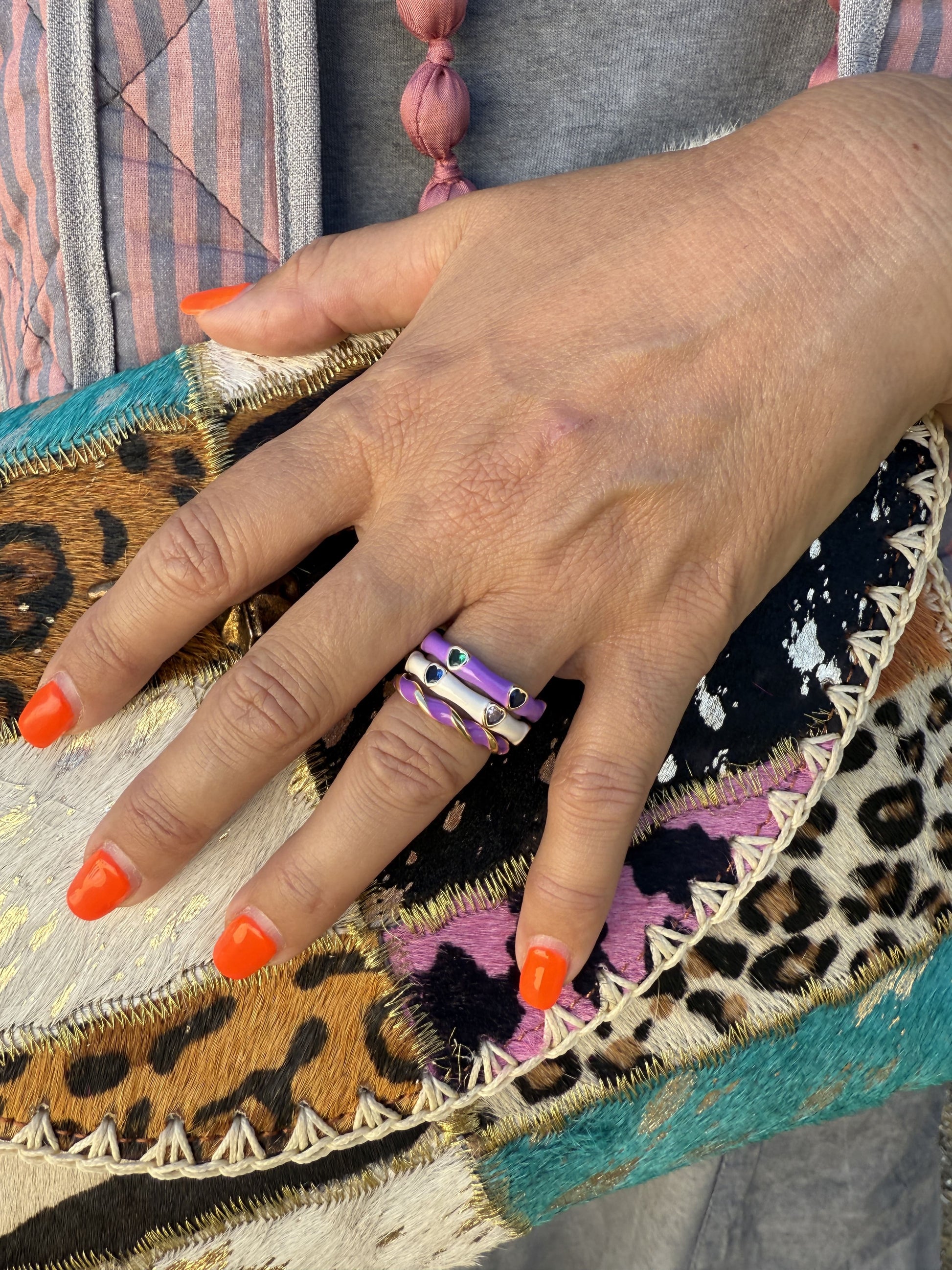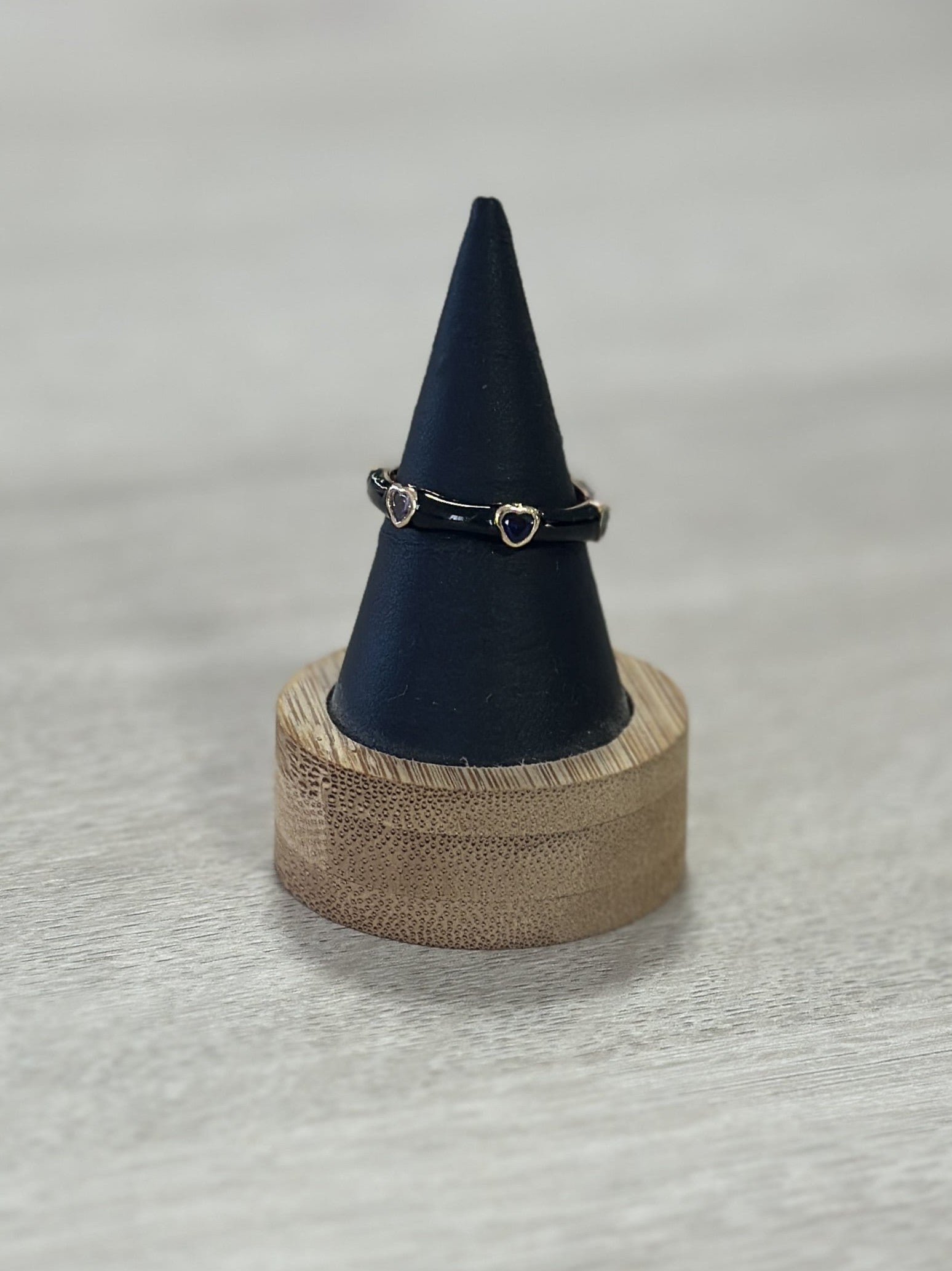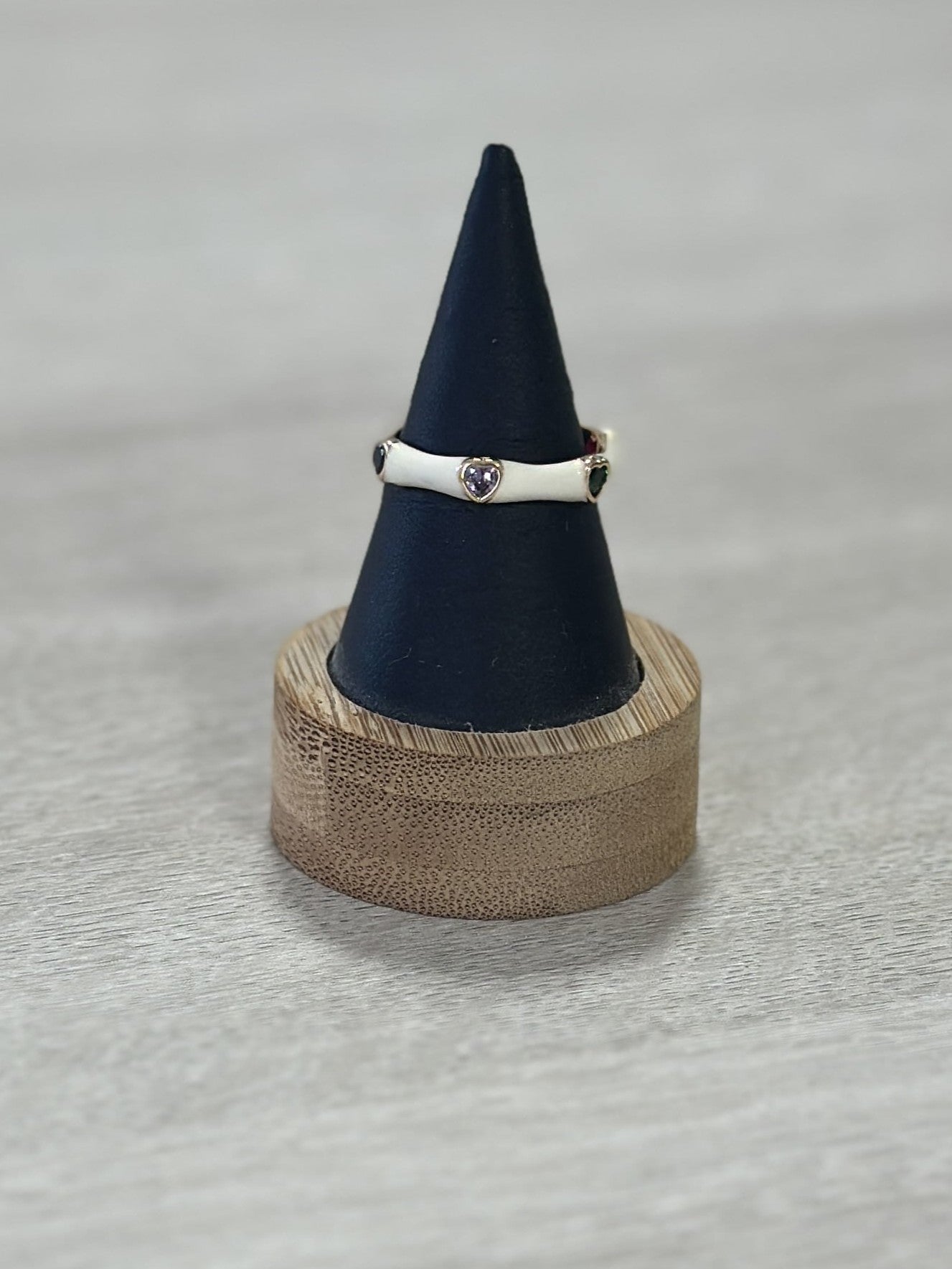 Este anillo tiene con corazones por todo su alrededor con brillo tipo circonita en el centro.