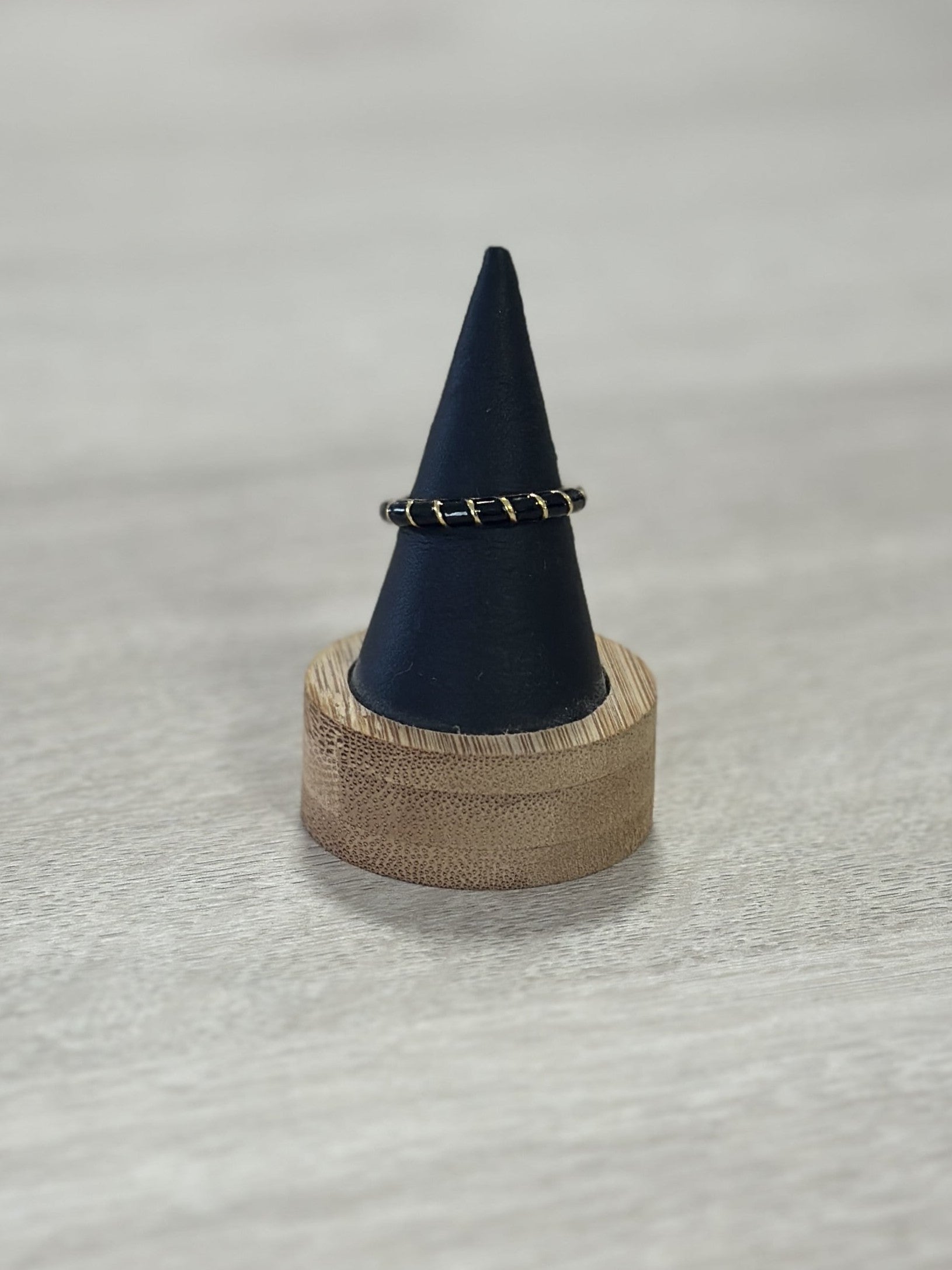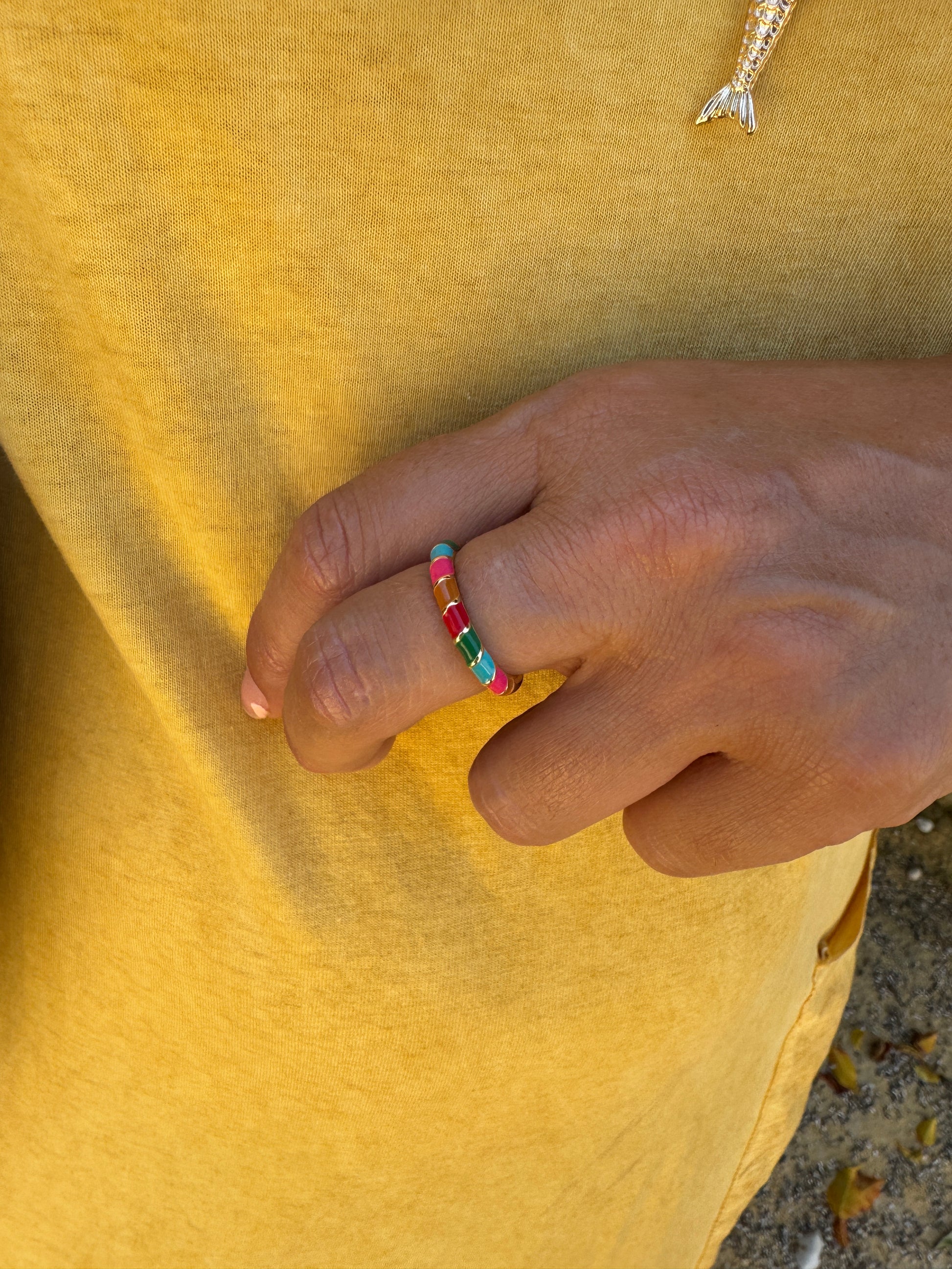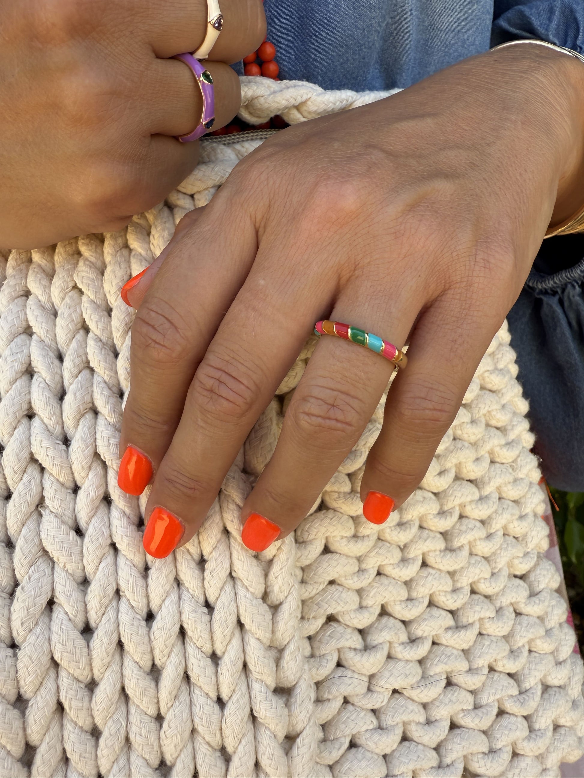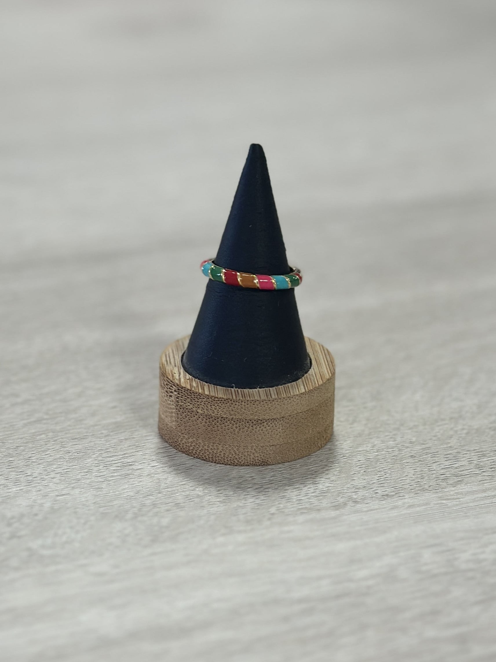 Anillo esmaltado disponible con fondo dorado que divide el esmaltado en varias partes.