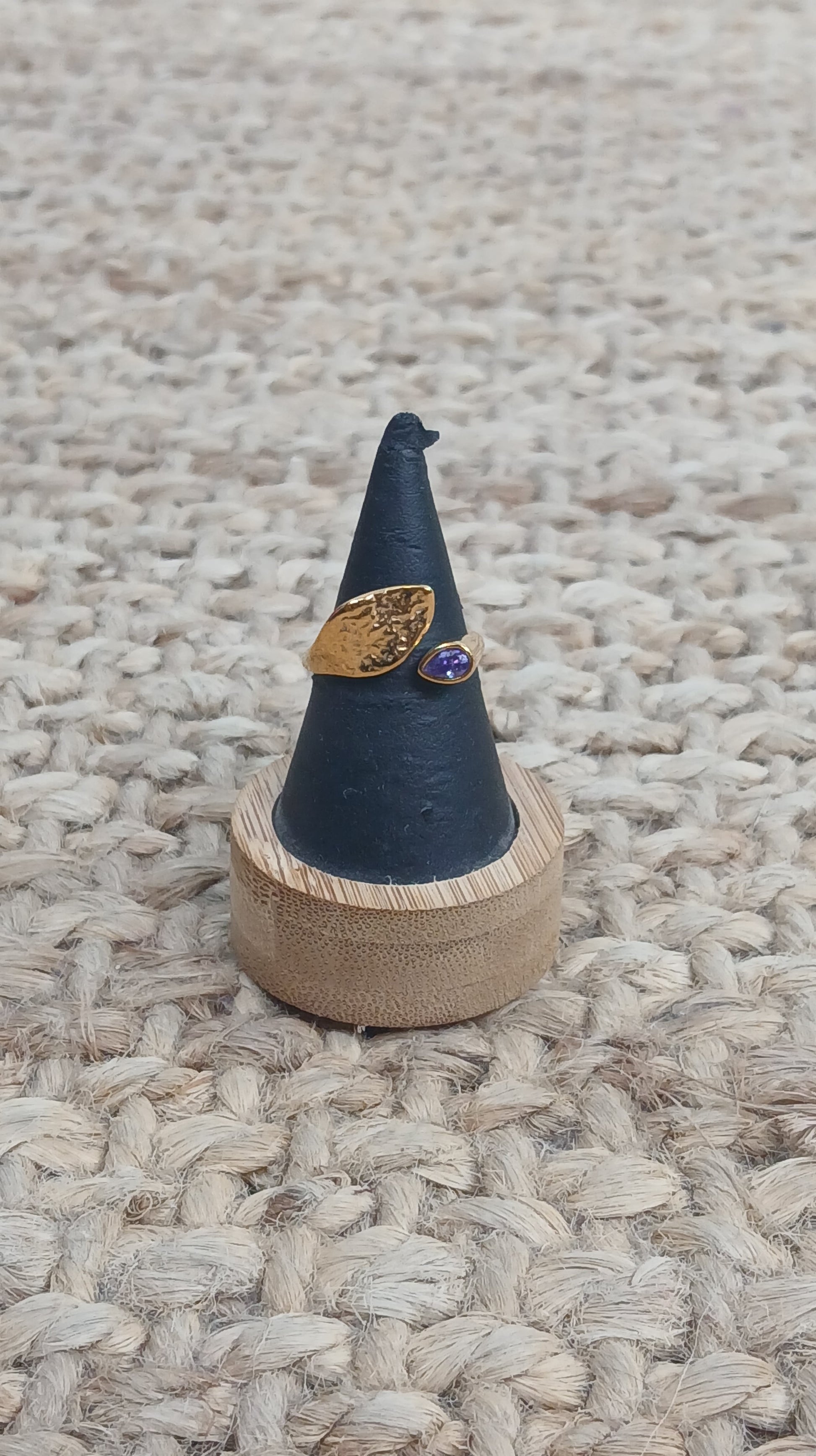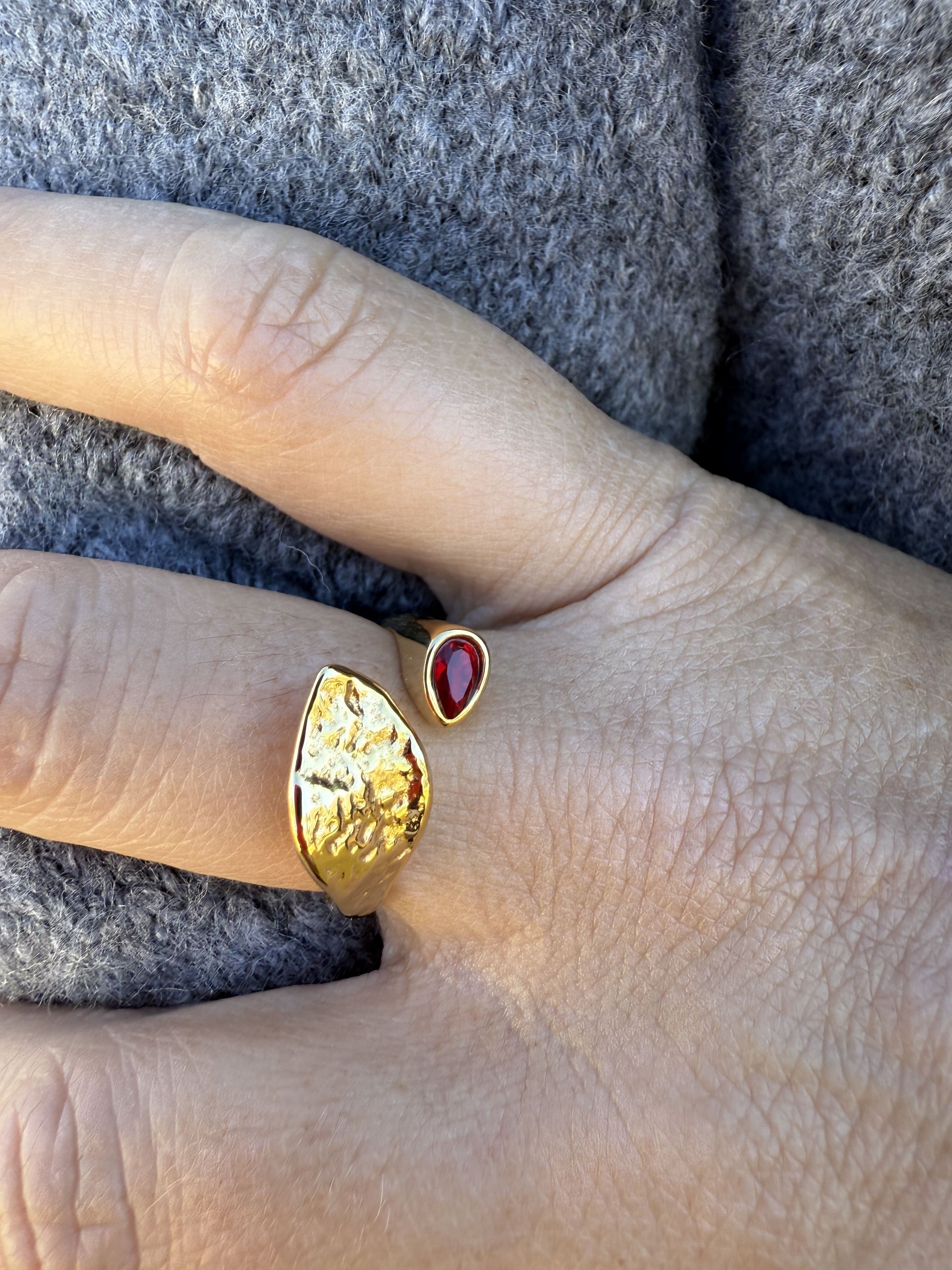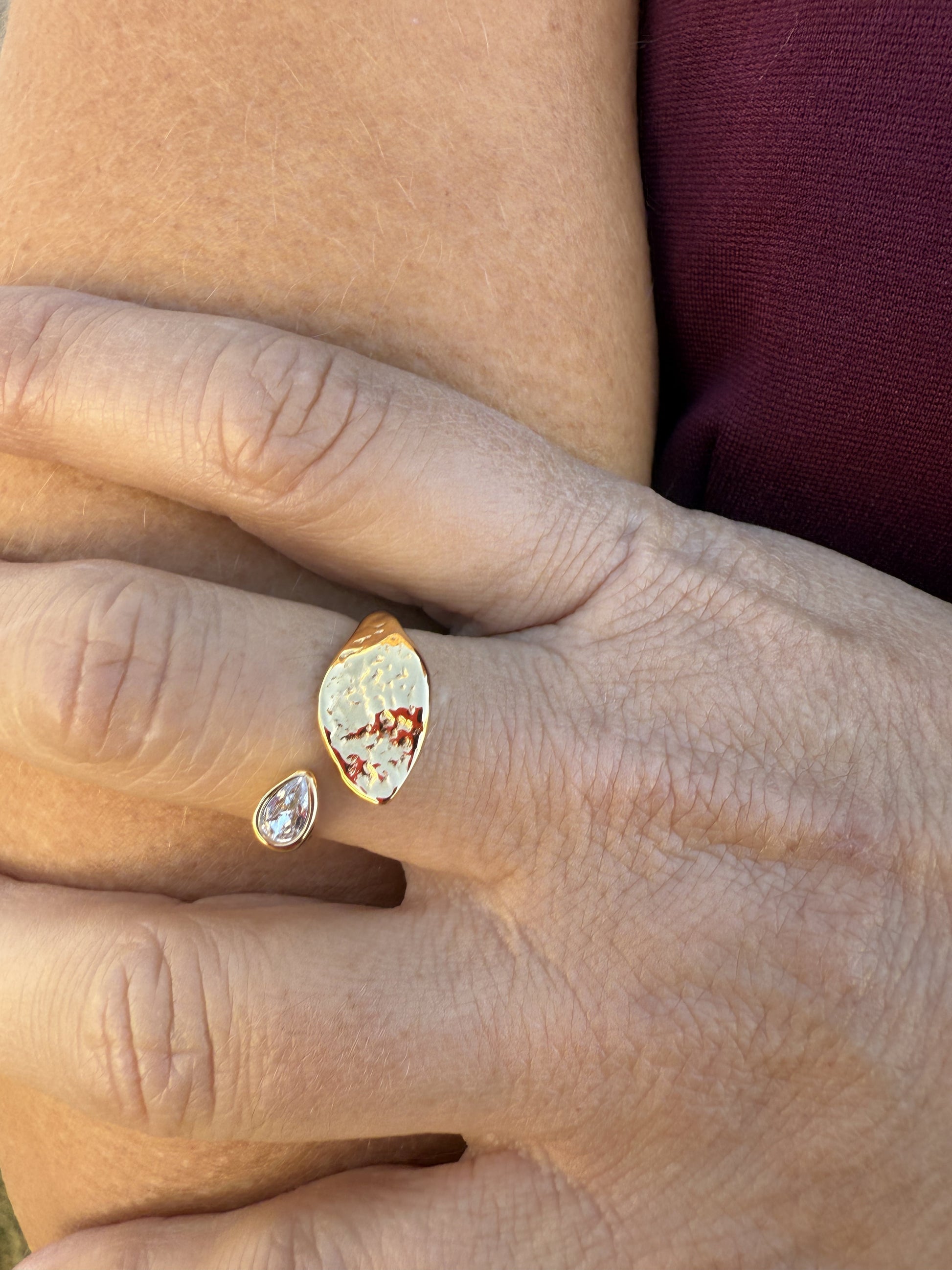 Anillo de talla regulable con apertura en la parte delantera entre la hoja y el brillito.