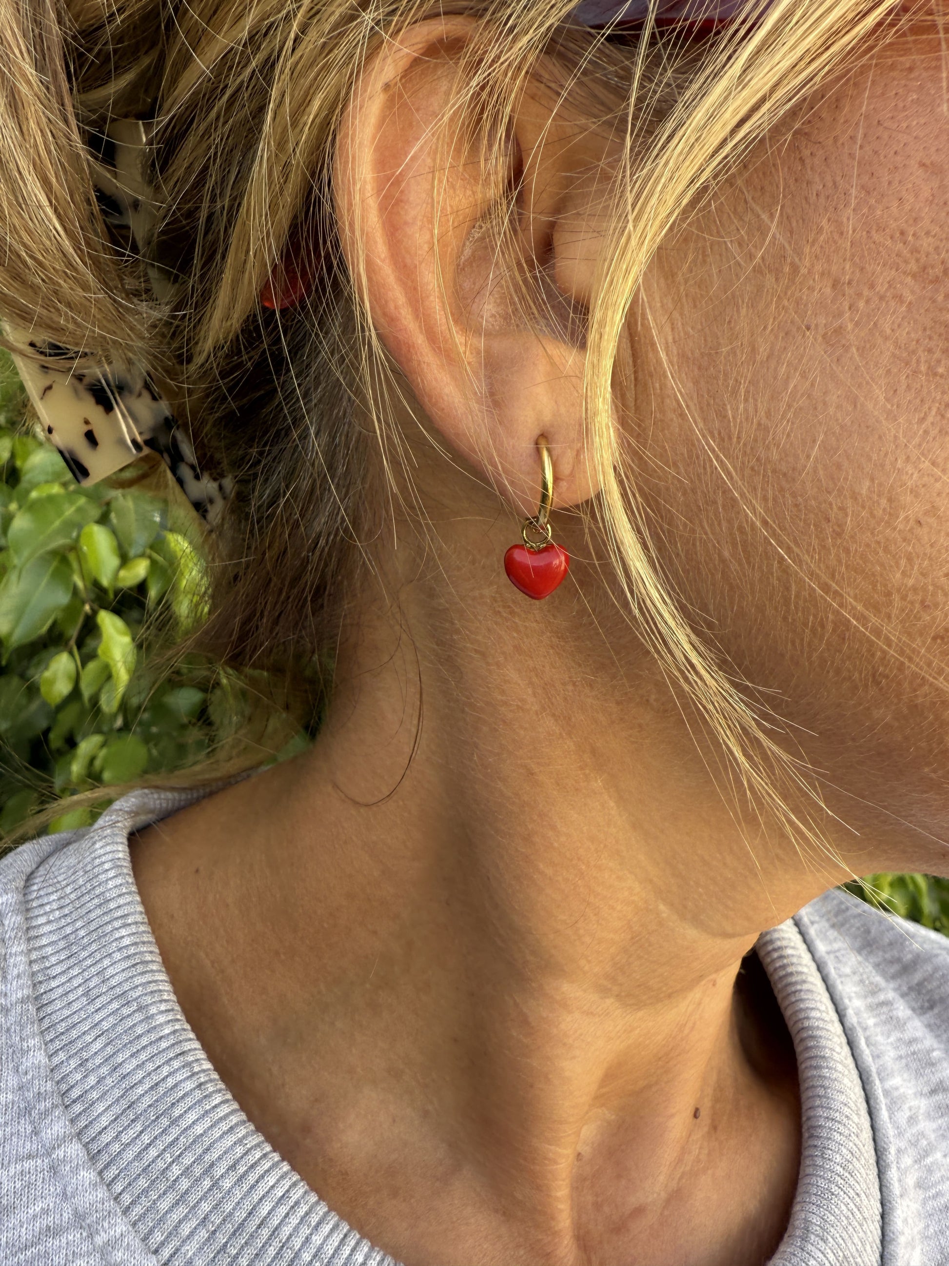Argolla mini con abalorio de corazón en color rojo y acabado mate.