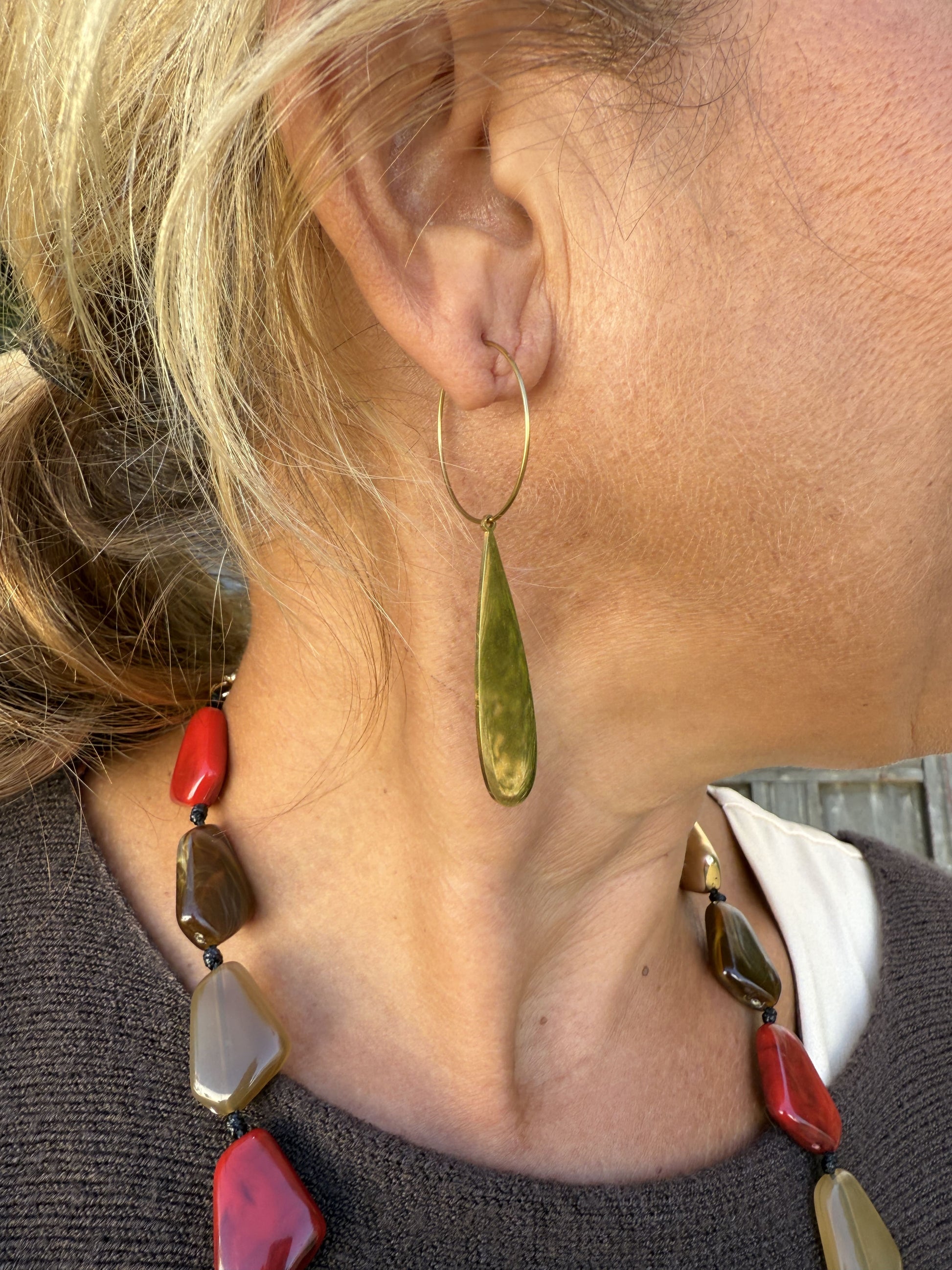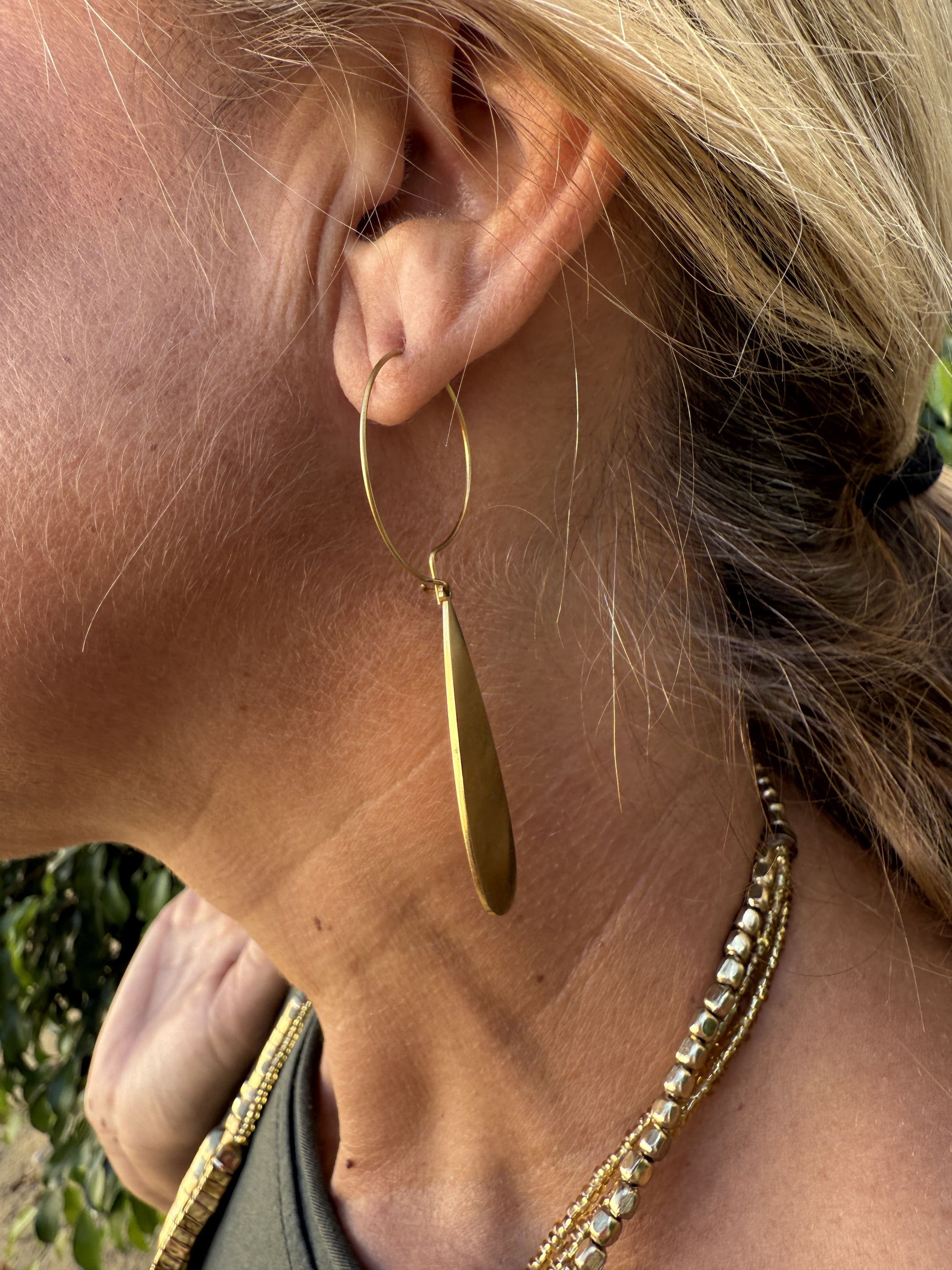 Argolla de acero con abalorio en forma de pétalo colgando.