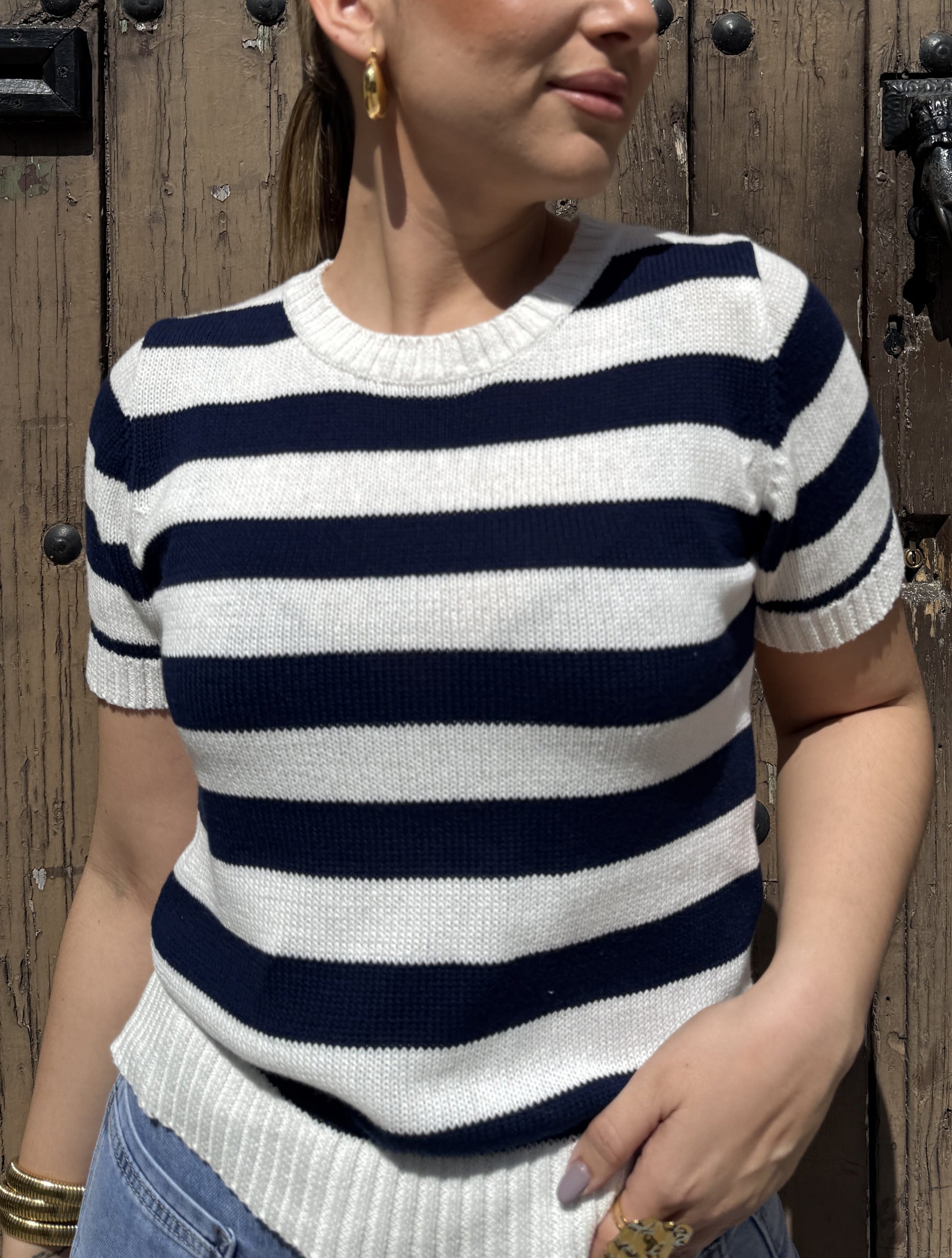 Blusa de manga corta confeccionada en tejido suave y transpirable, perfecta para los días cálidos. Diseño clásico con rayas en azul marino y blanco que aporta un toque marinero y versátil a tu armario. Ideal para combinar con pantalones, faldas o shorts, tanto para el día como para ocasiones más relajadas. Una prenda esencial que nunca falla en tu guardarropa de temporada.