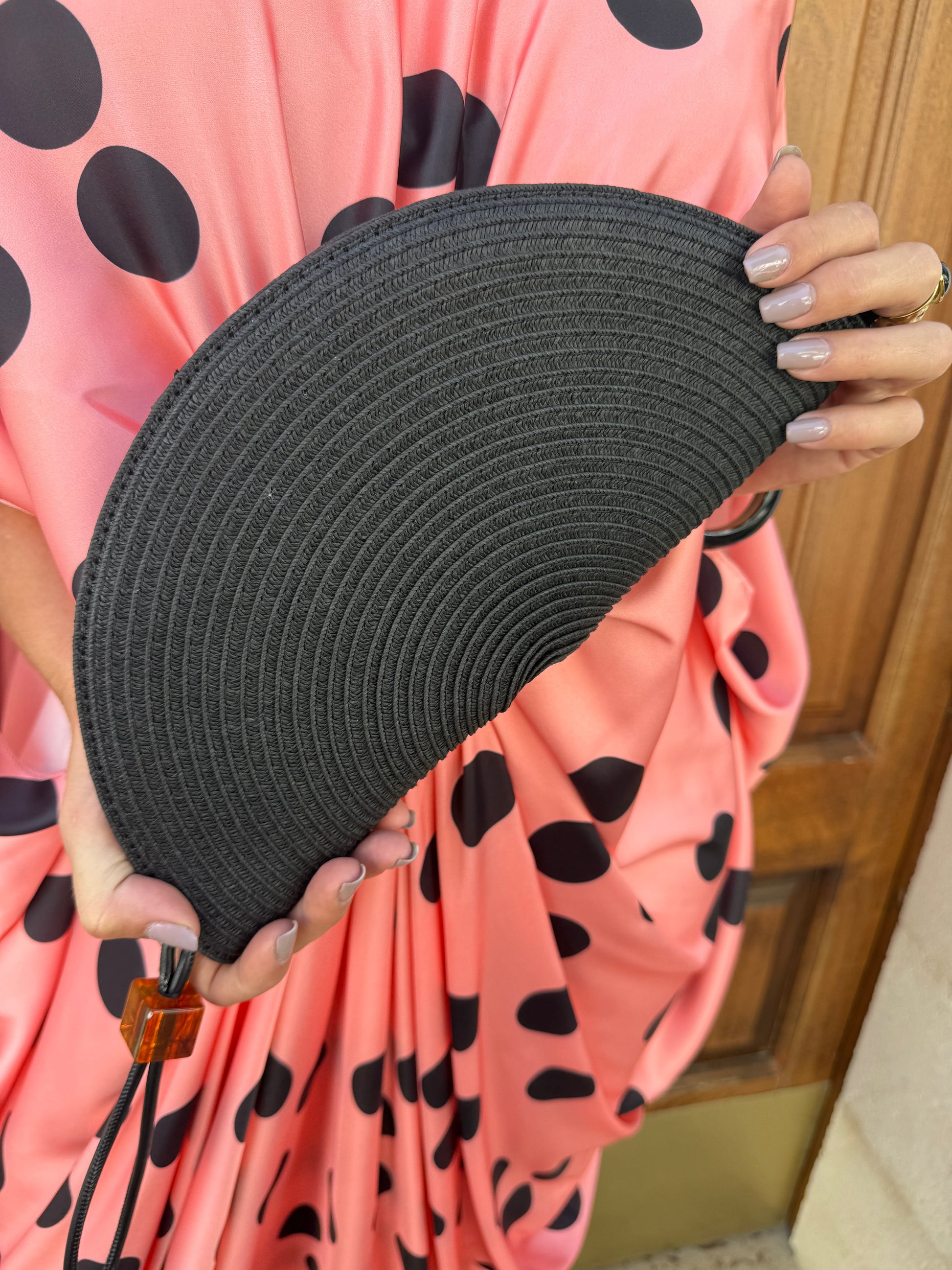 Bolso de mano con forma de abanico.