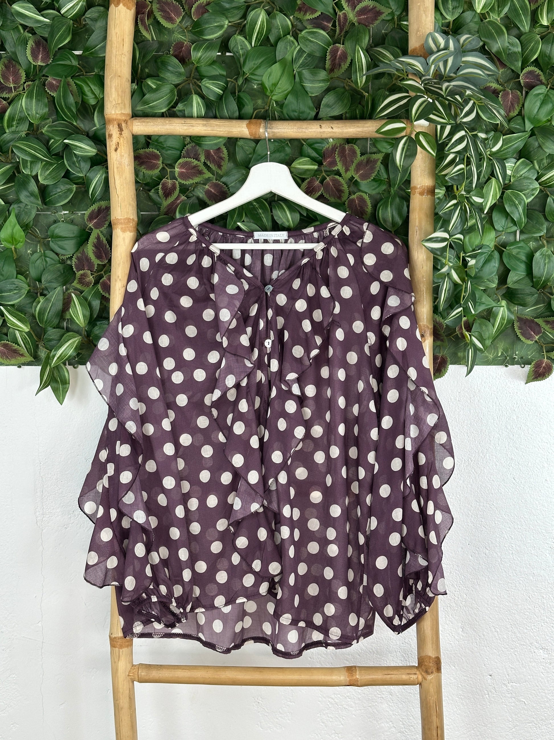 Disponible blanco roto con lunares negro y berenjena con lunares blanco roto.