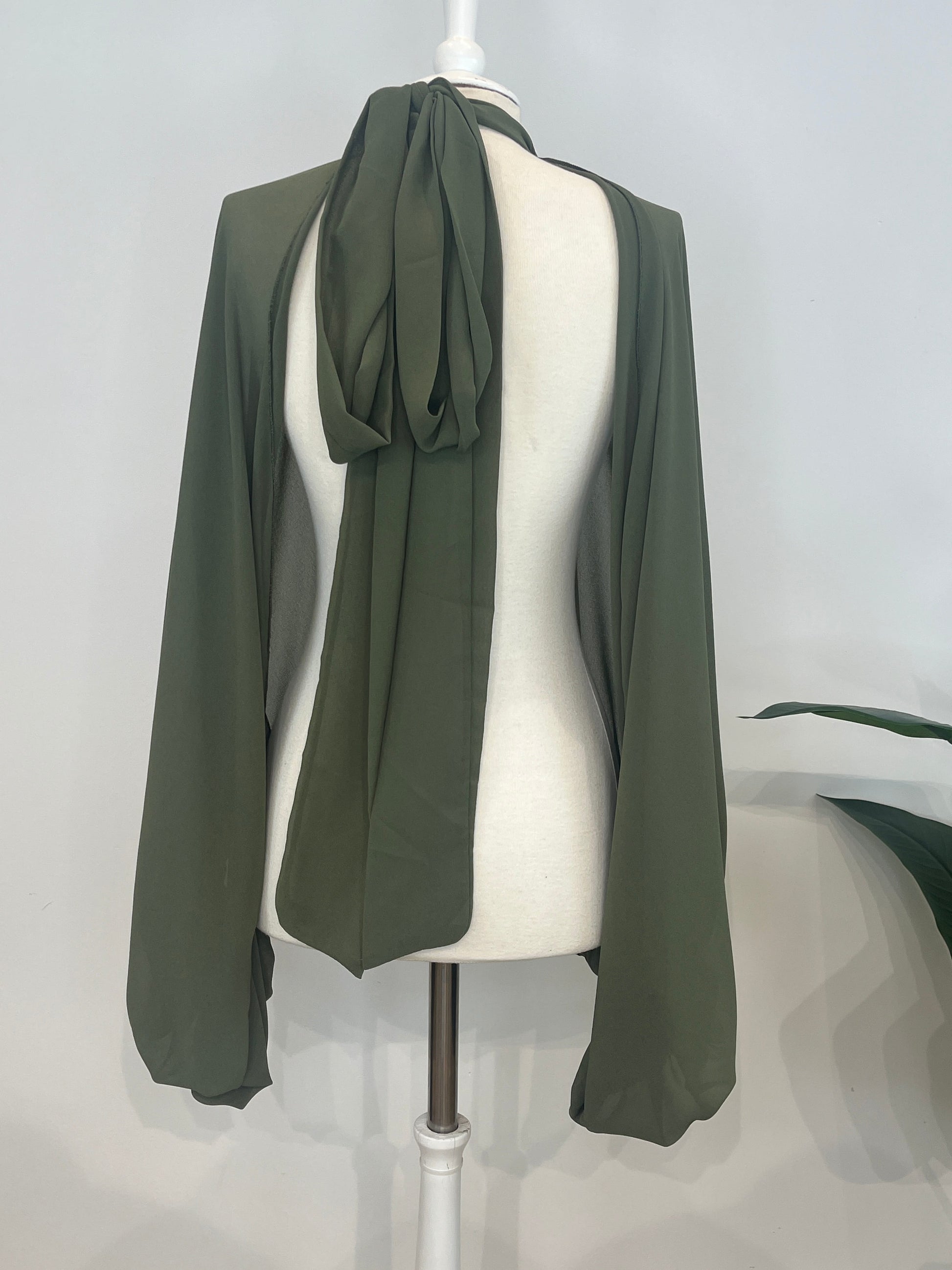 Descubre la elegancia atemporal con nuestra capa translúcida de diseño sofisticado. Featuring espalda completamente descubierta y mangas bombachas que crean un efecto dramático y femenino, esta prenda se ata al cuello con un lazo delicado que añade un toque de refinamiento. Disponible en verde y negro, combina versatilidad con estilo vanguardista. Perfecta para ocasiones especiales, eventos nocturnos o para elevar tu look cotidiano con un toque de misterio y distinción. Una pieza que te permite expresar tu personalidad mientras captas todas las miradas.