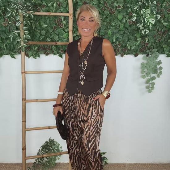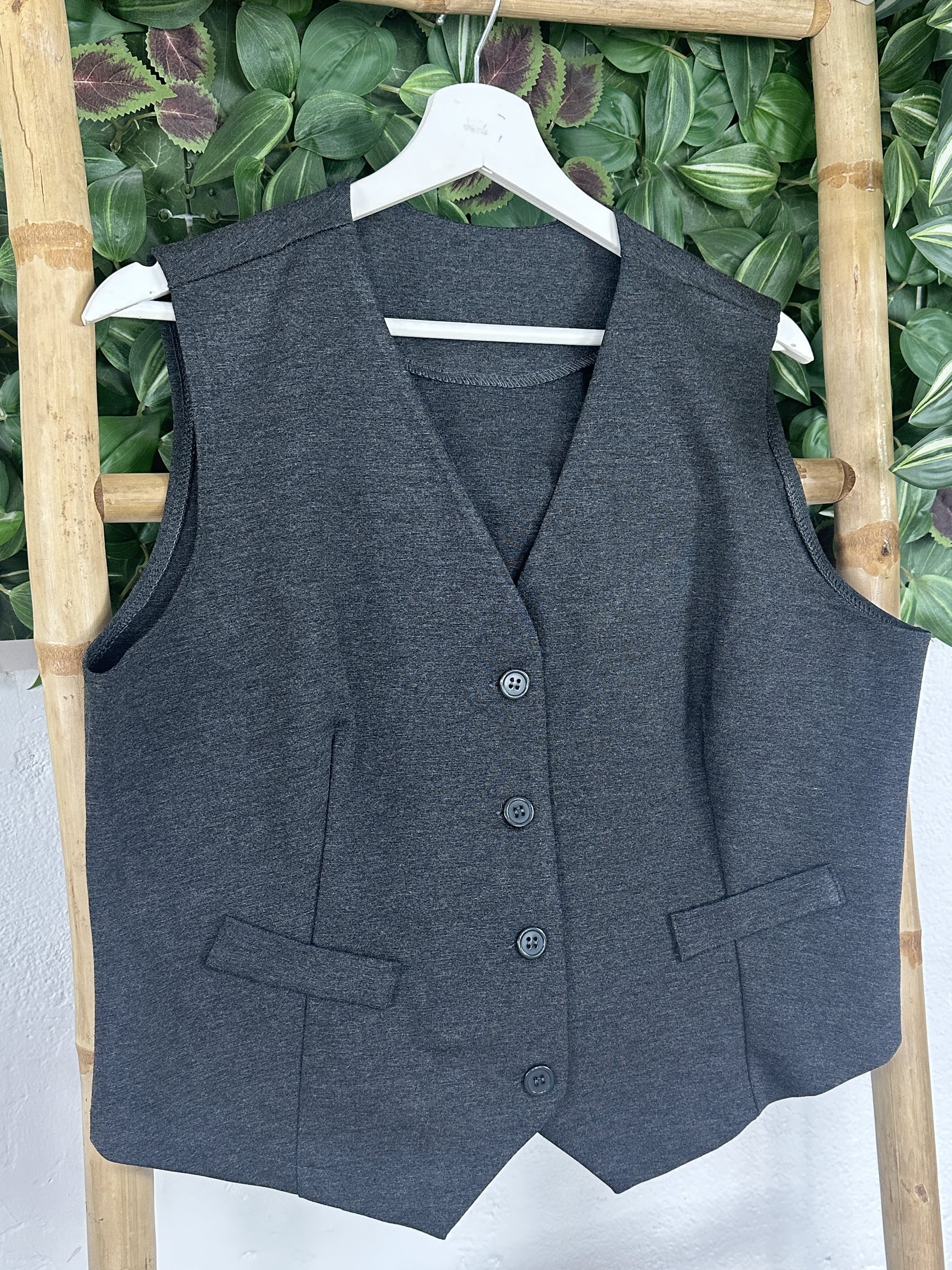 Chaleco sin mangas con tejido punto roma con pinzas en la zona baja del pecho.