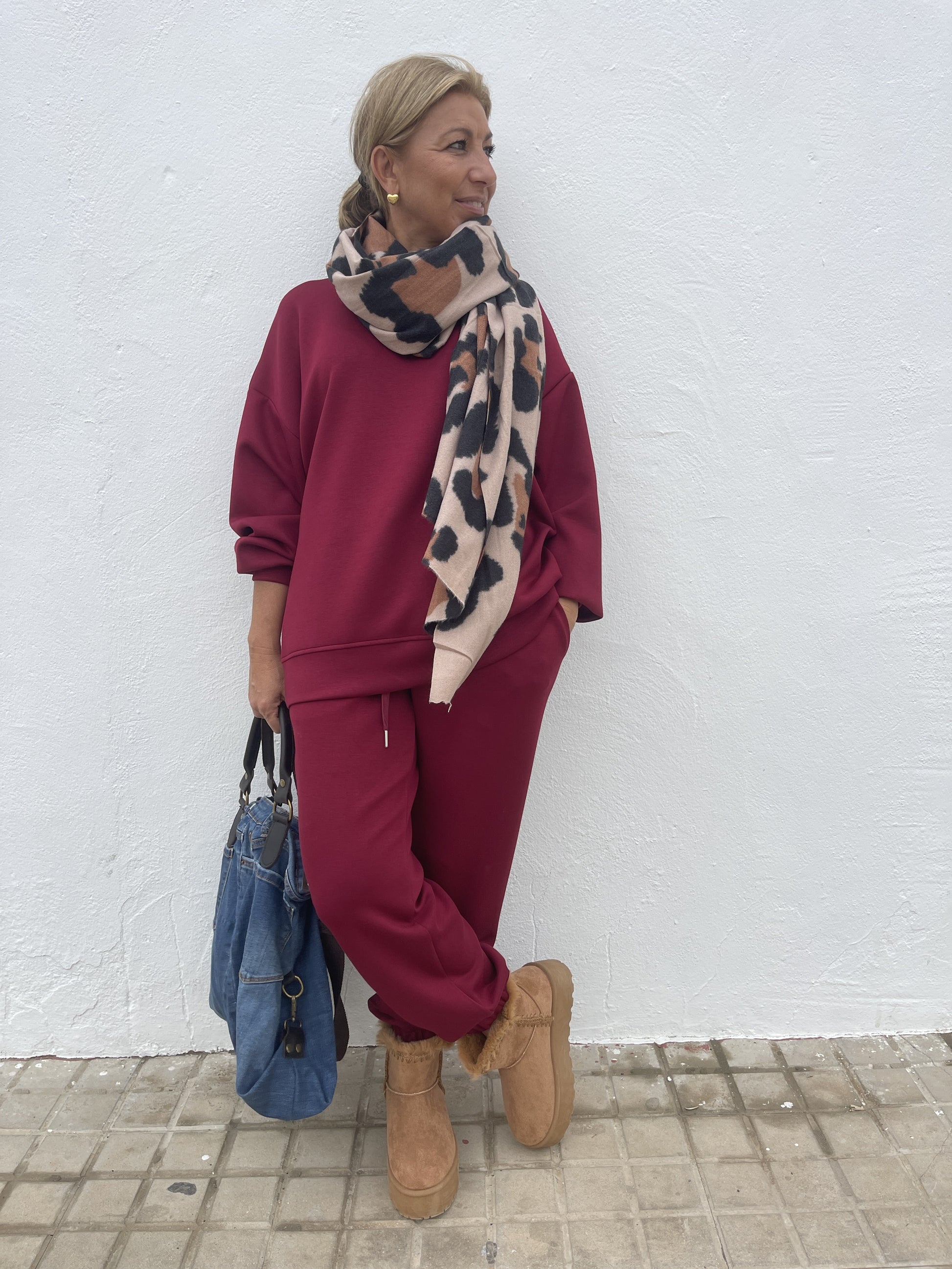Disponible en color burdeos, beige y gris.