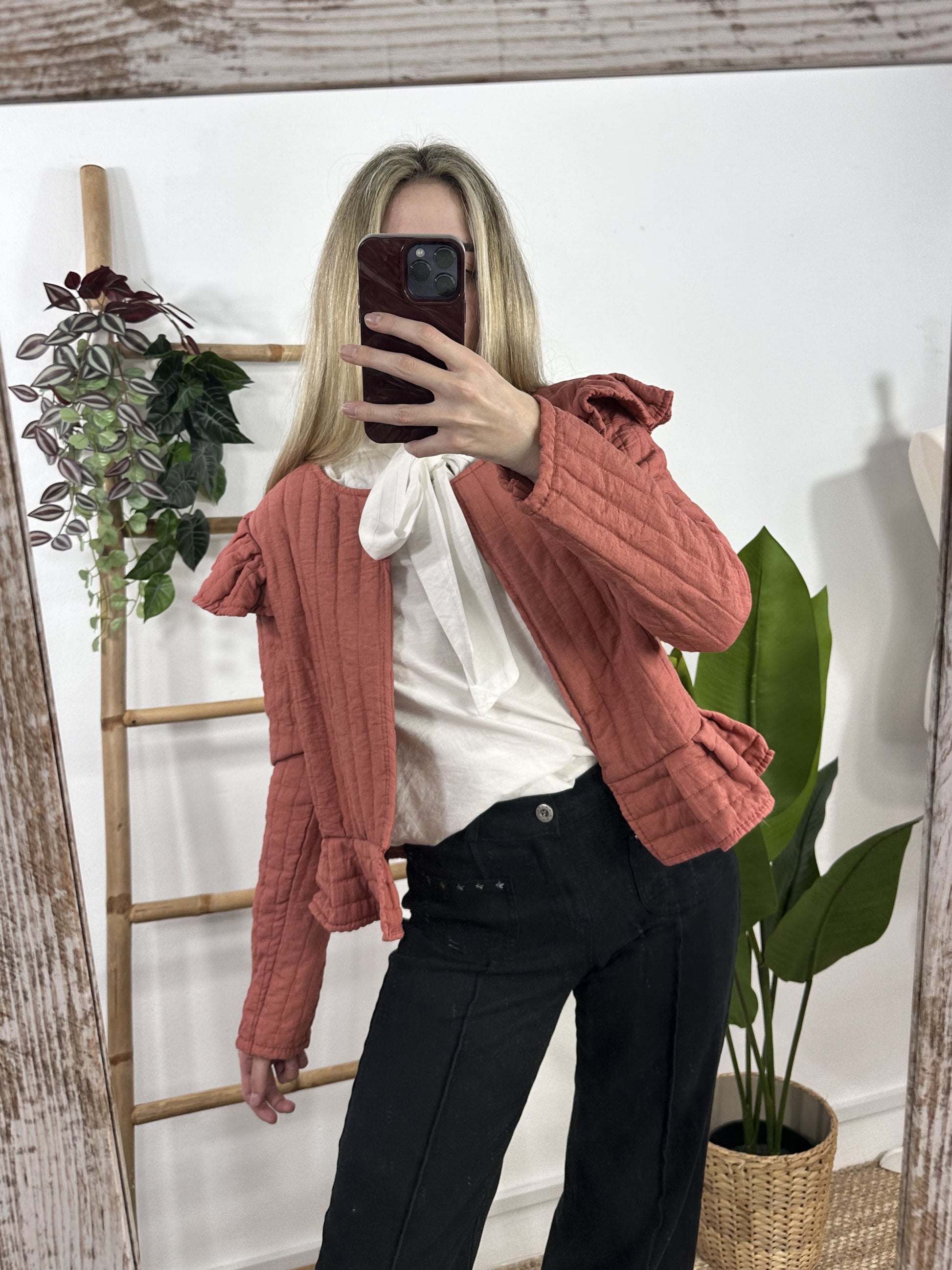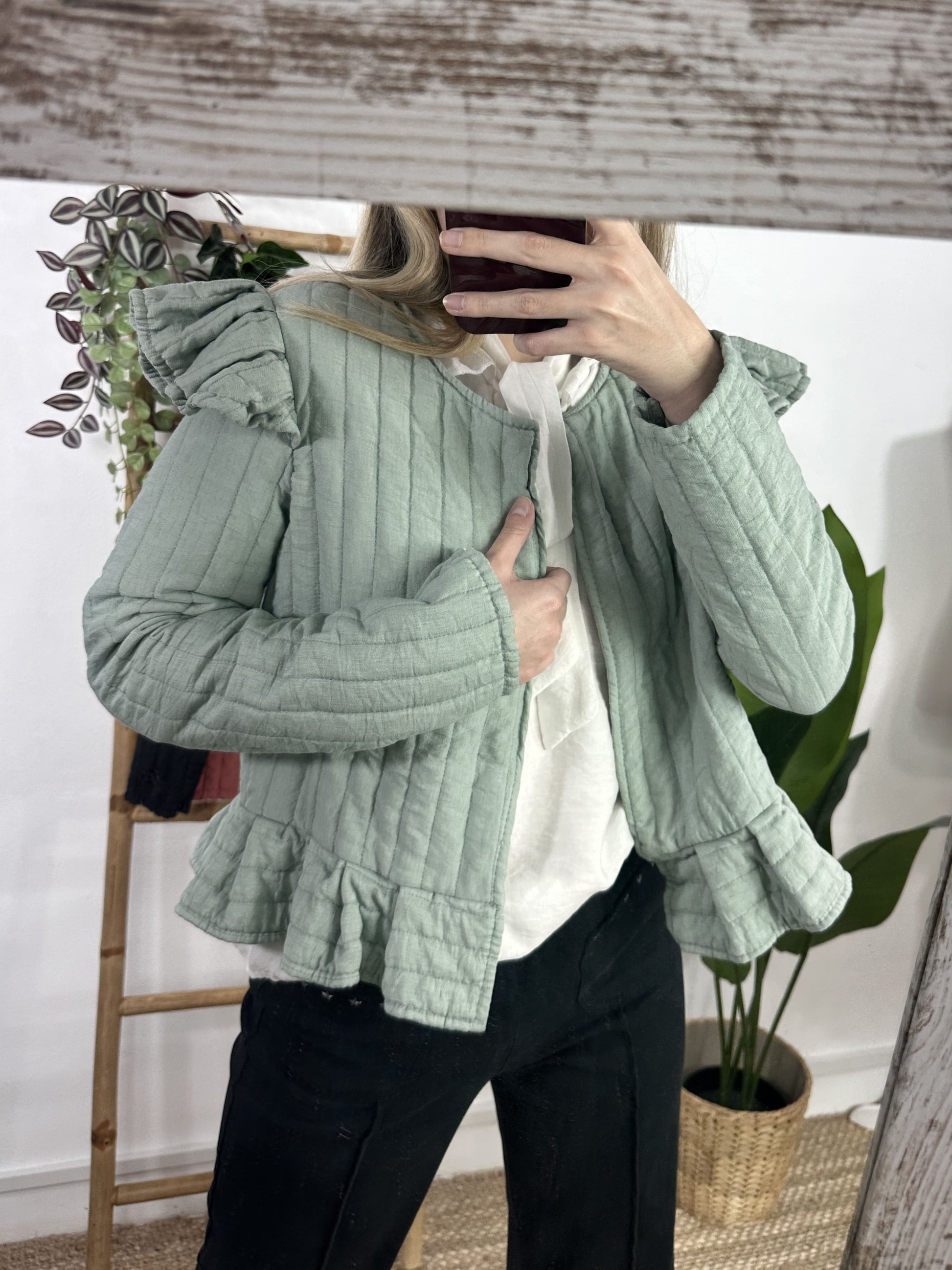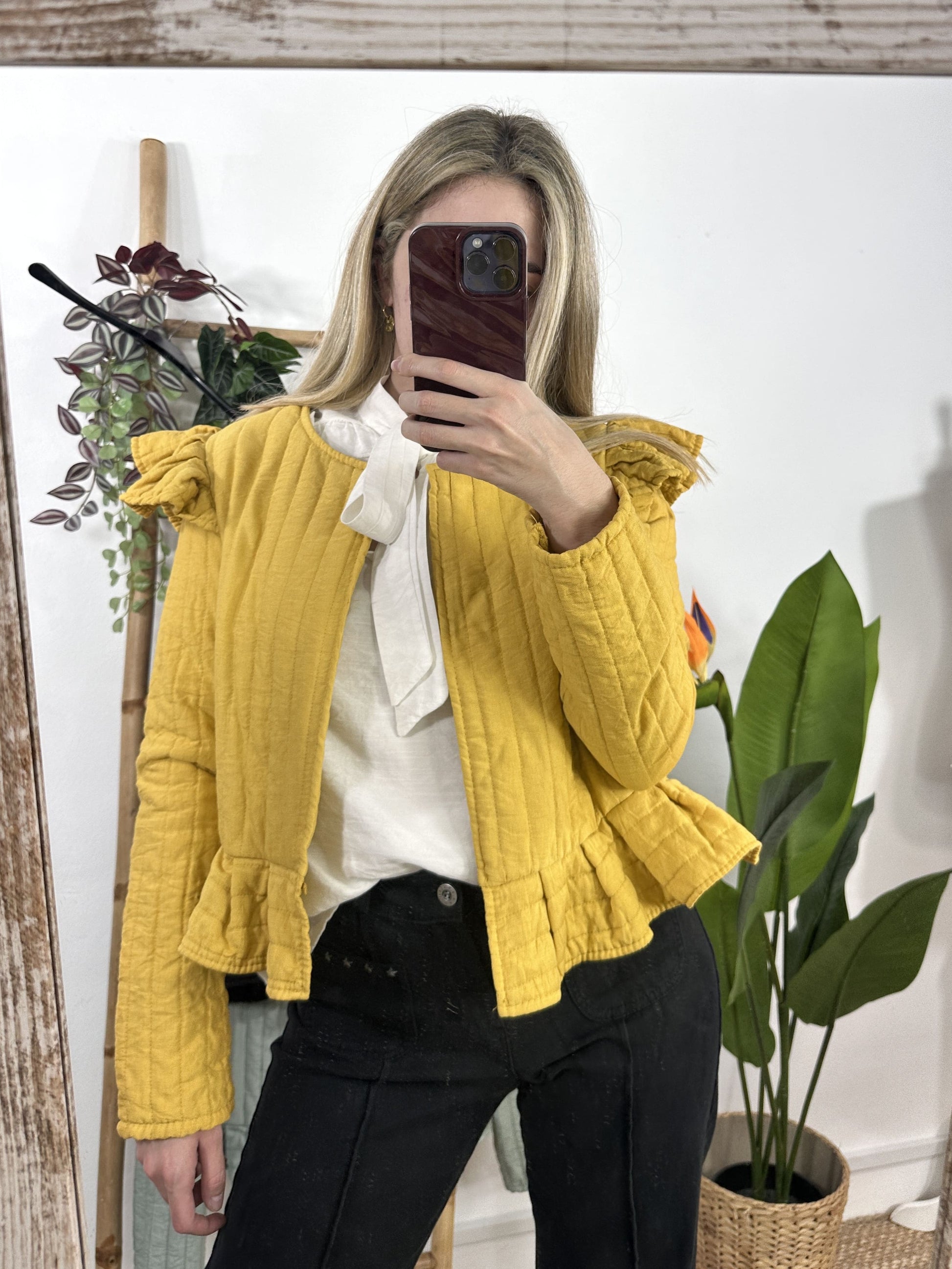 Chaqueta acolchada de manga larga con volante en la hombrera y en la cintura.