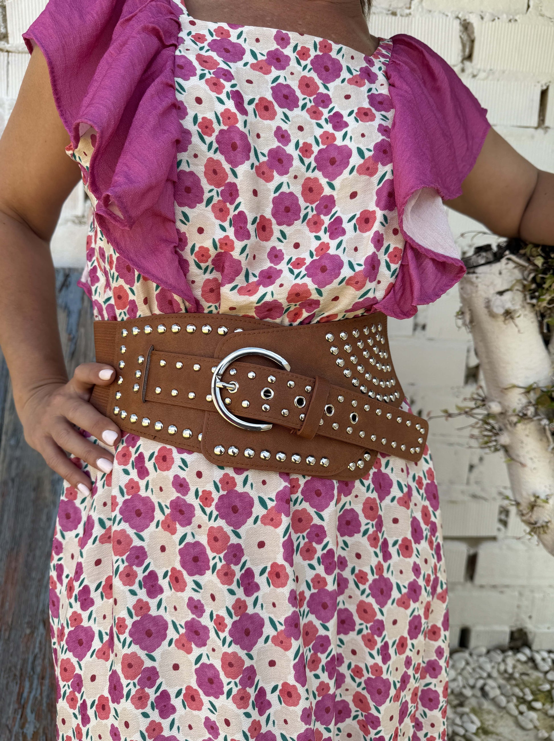 Este cinturón de tachas lo tenemos disponible en color camel.