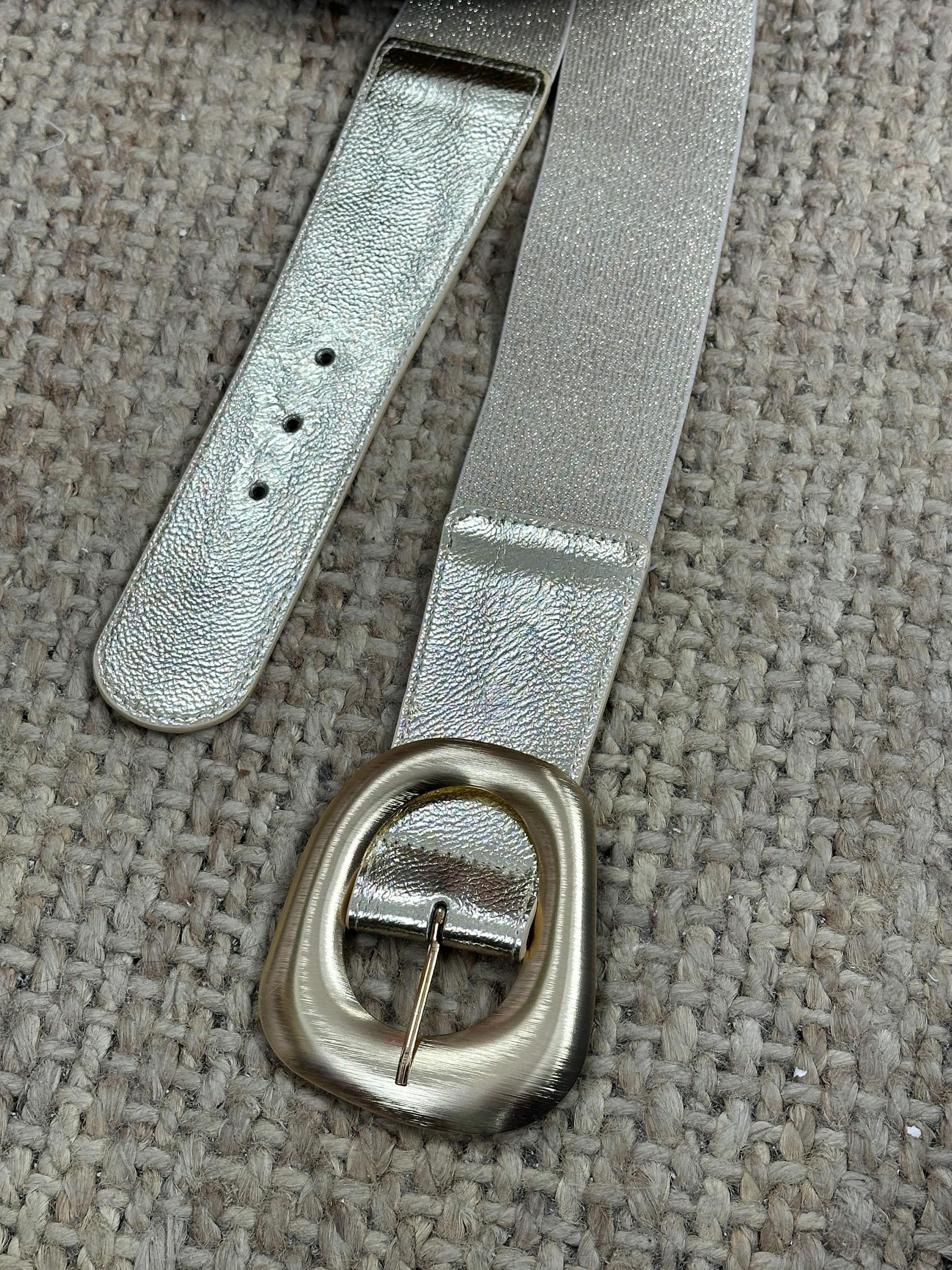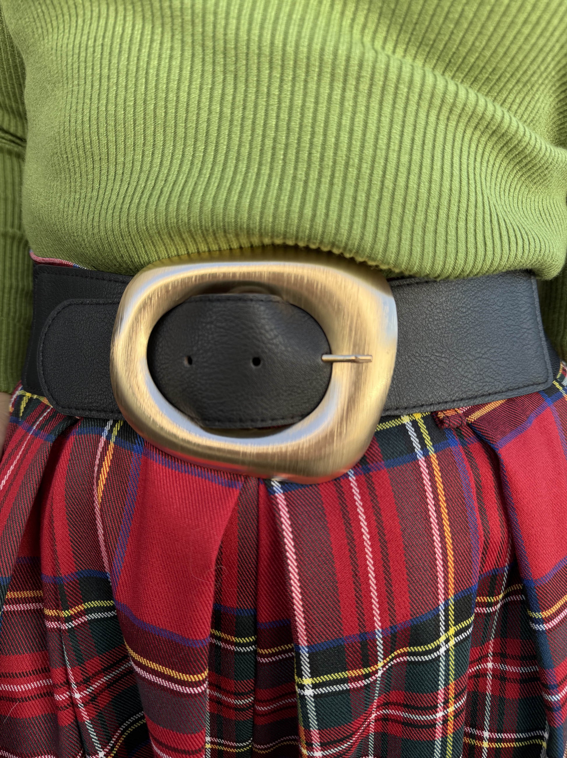 Cinturón ancho de mujer con hebilla maxi dorada.