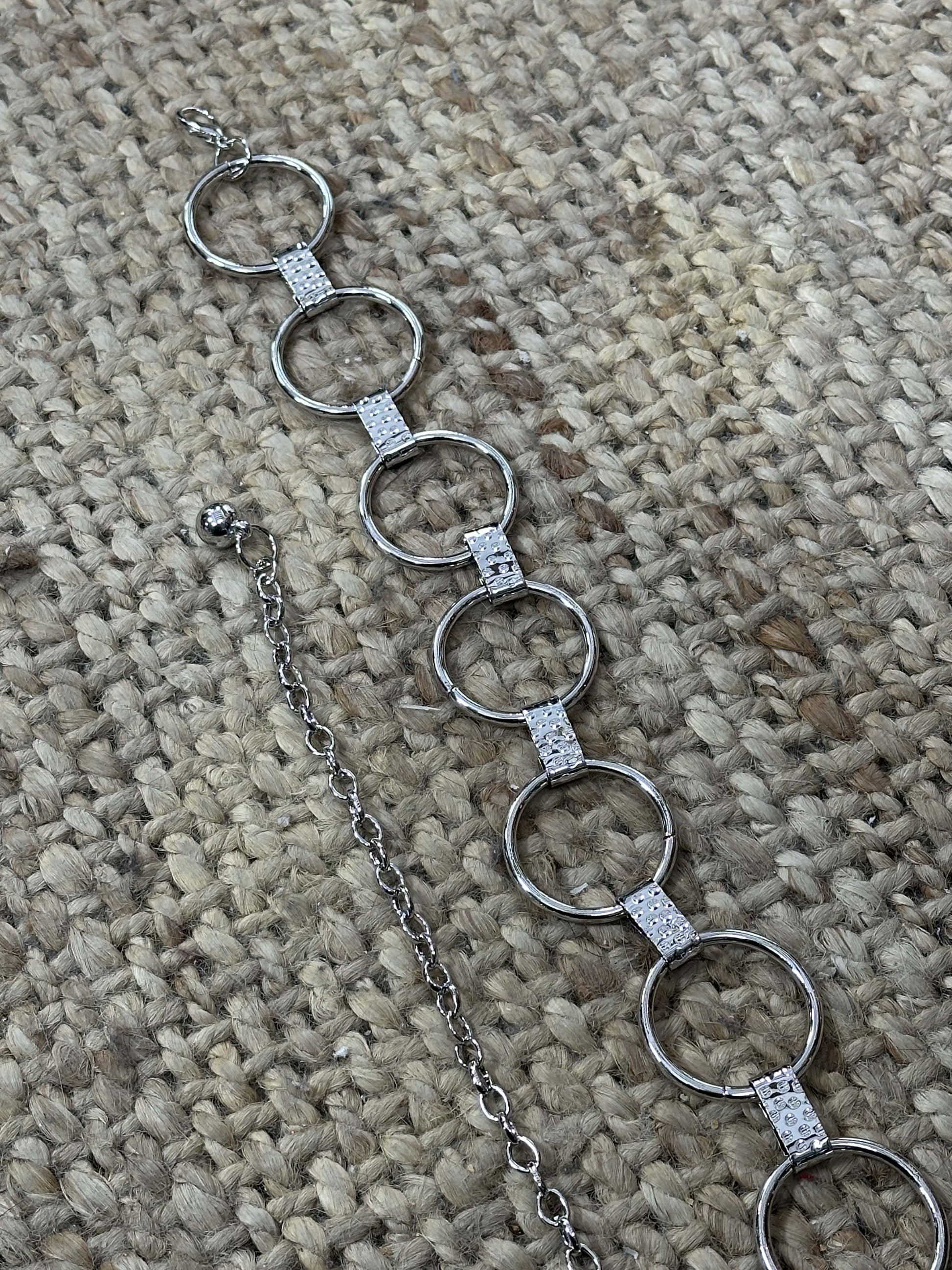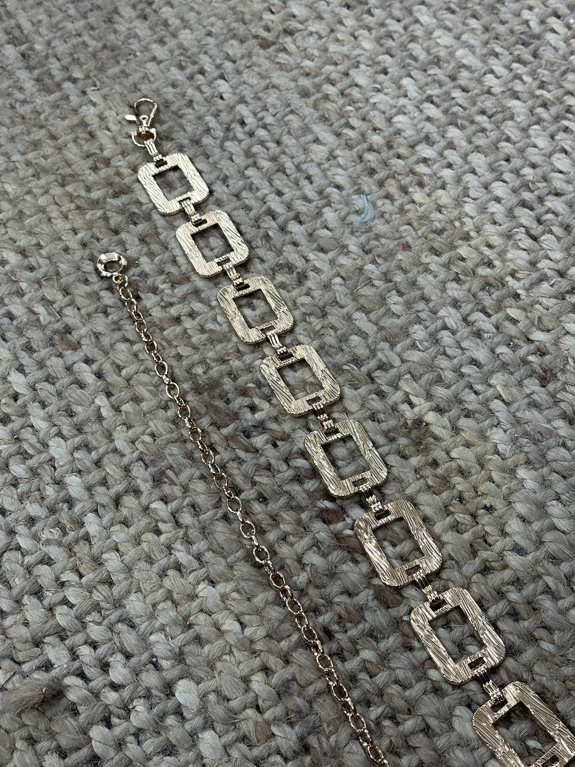 Modelo con forma de círculo y rectangular y en color dorado y plateado.