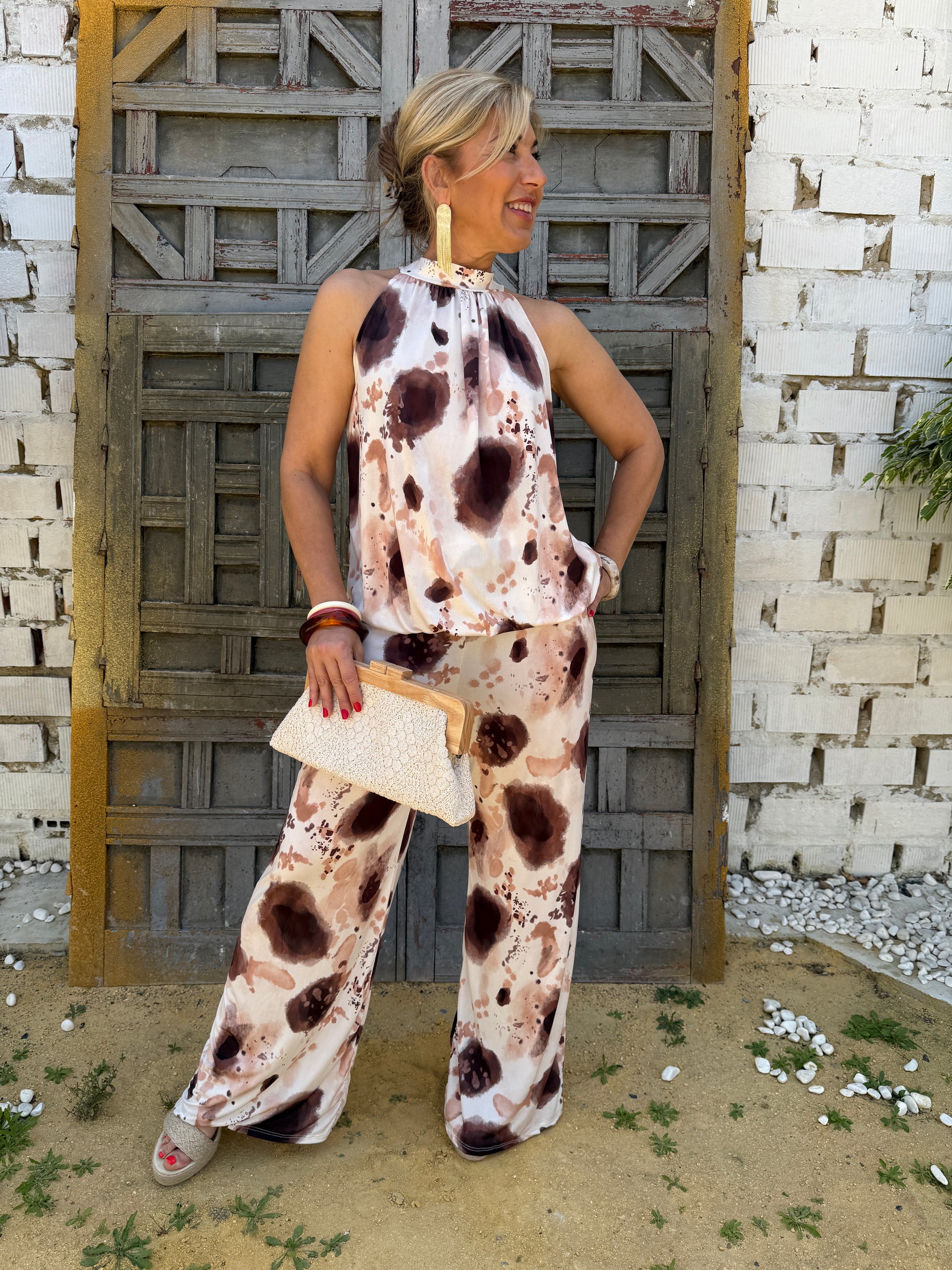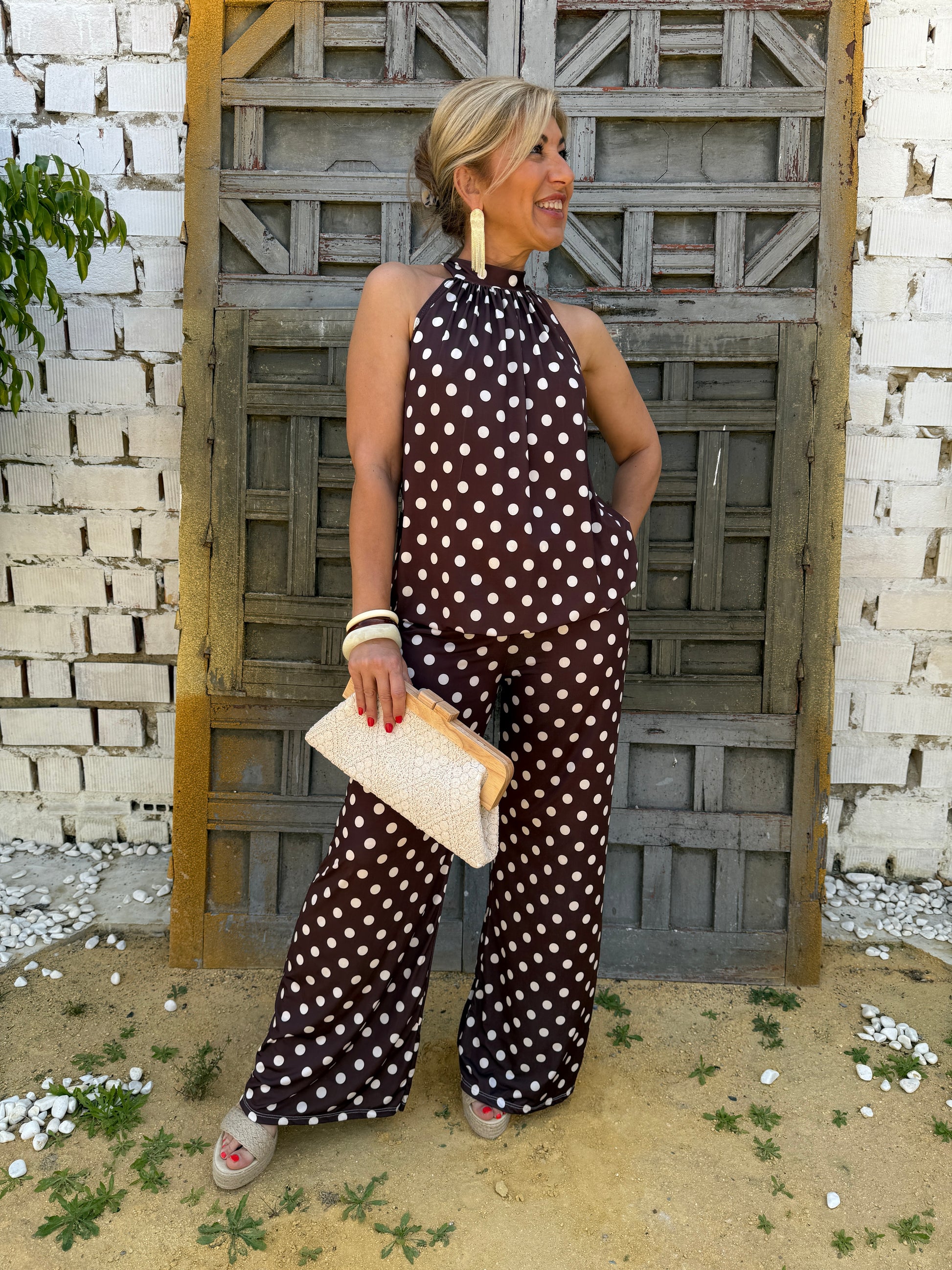 Blusa con corte halter con apertura en la espalda y lazo en la zona trasera del cuello.