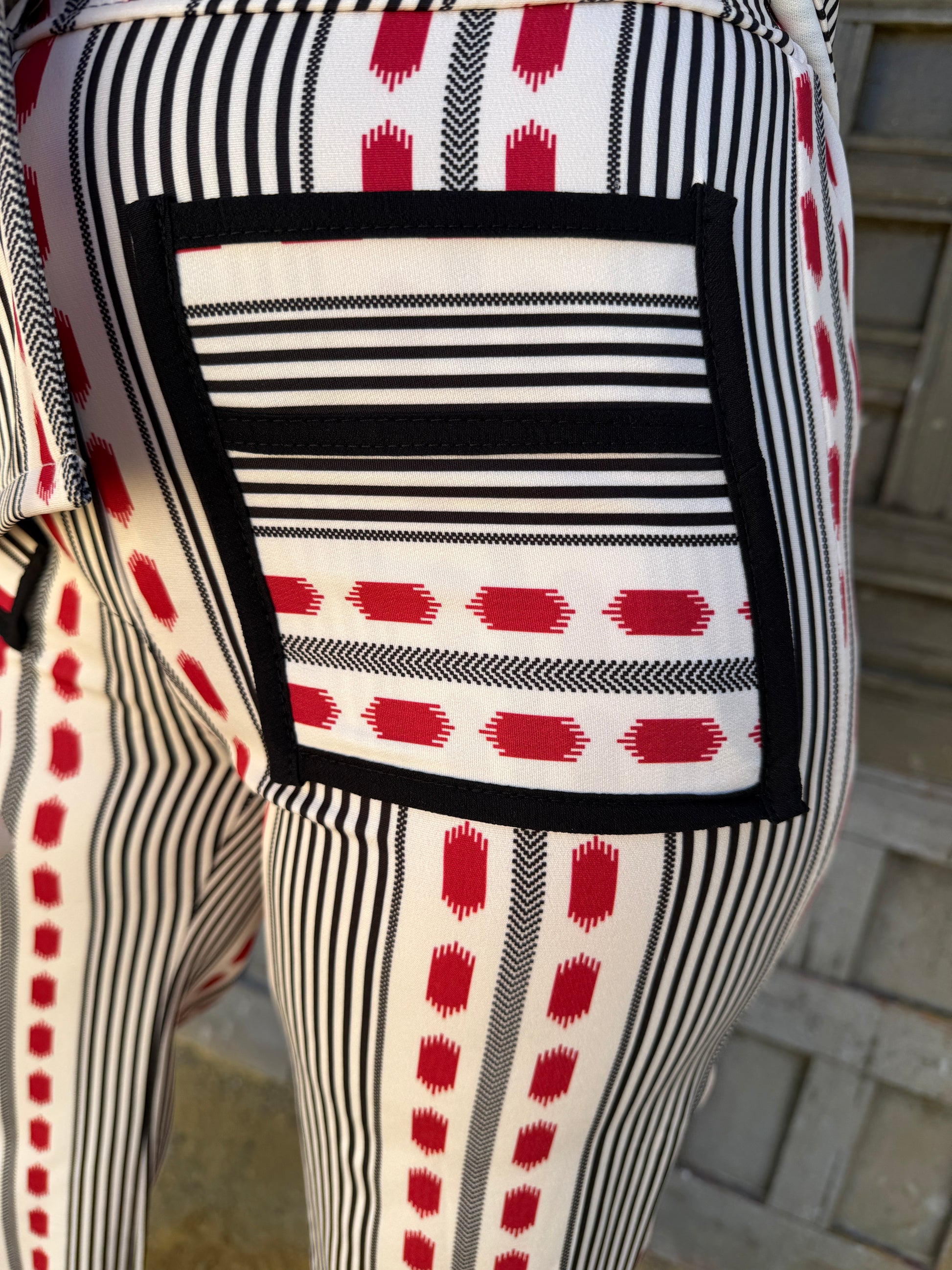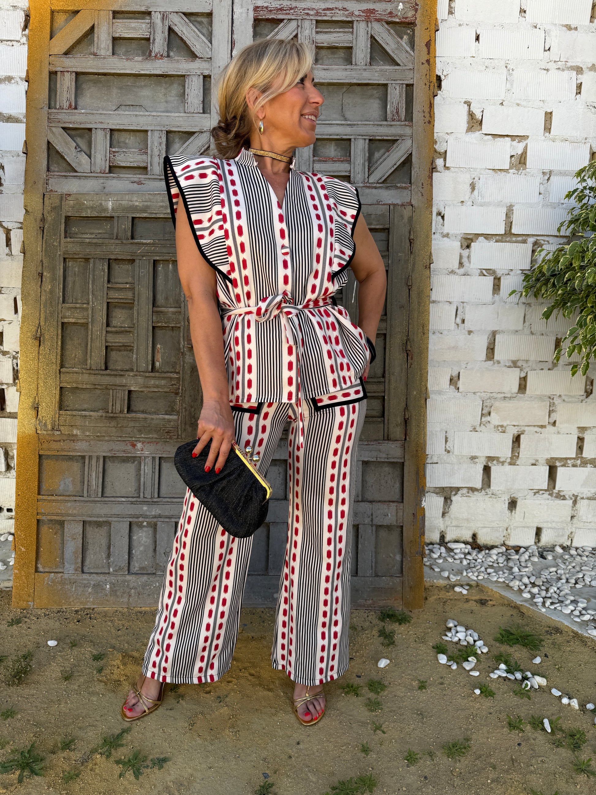 Conjunto de chaleco y pantalón estampado de rayas y dibujo.