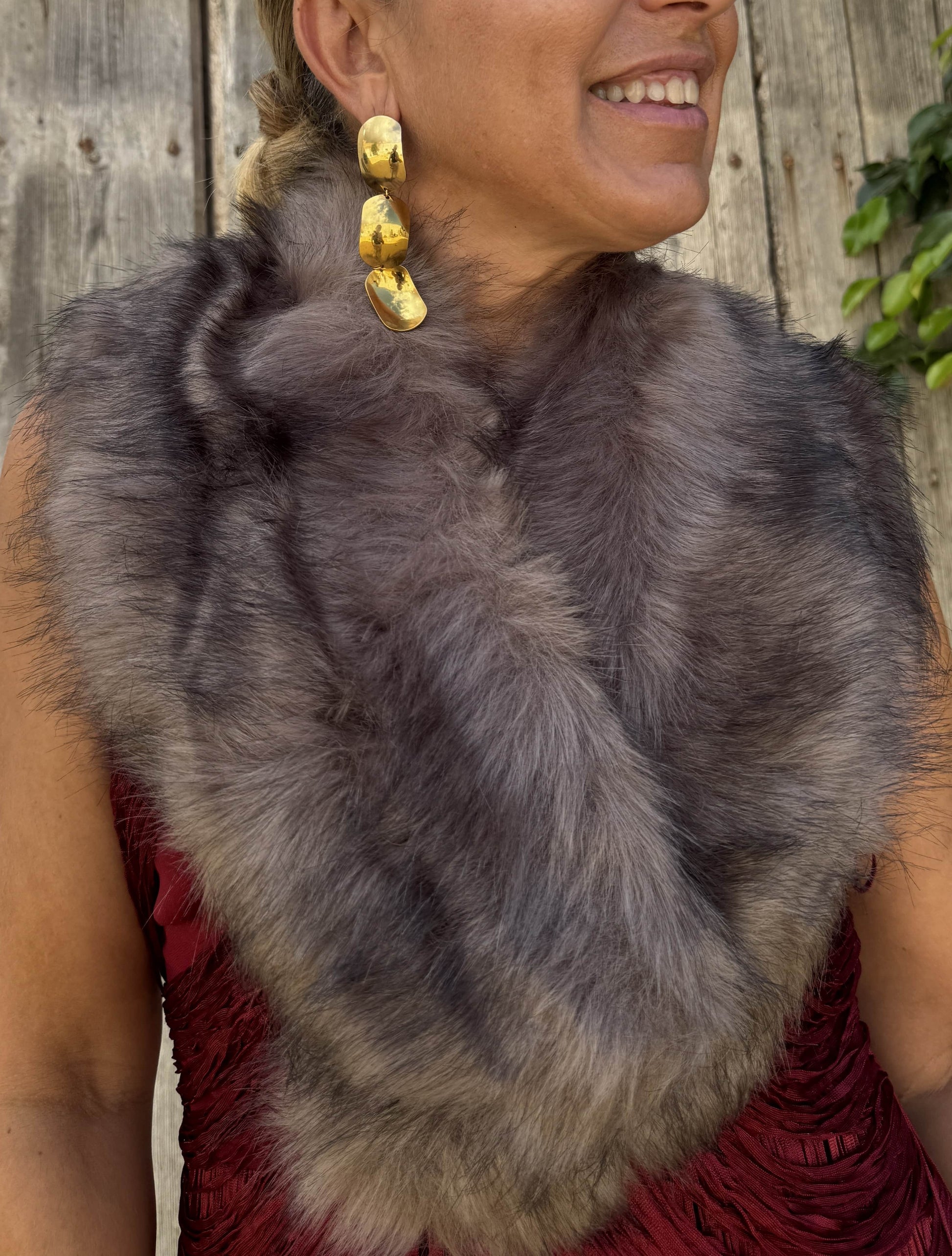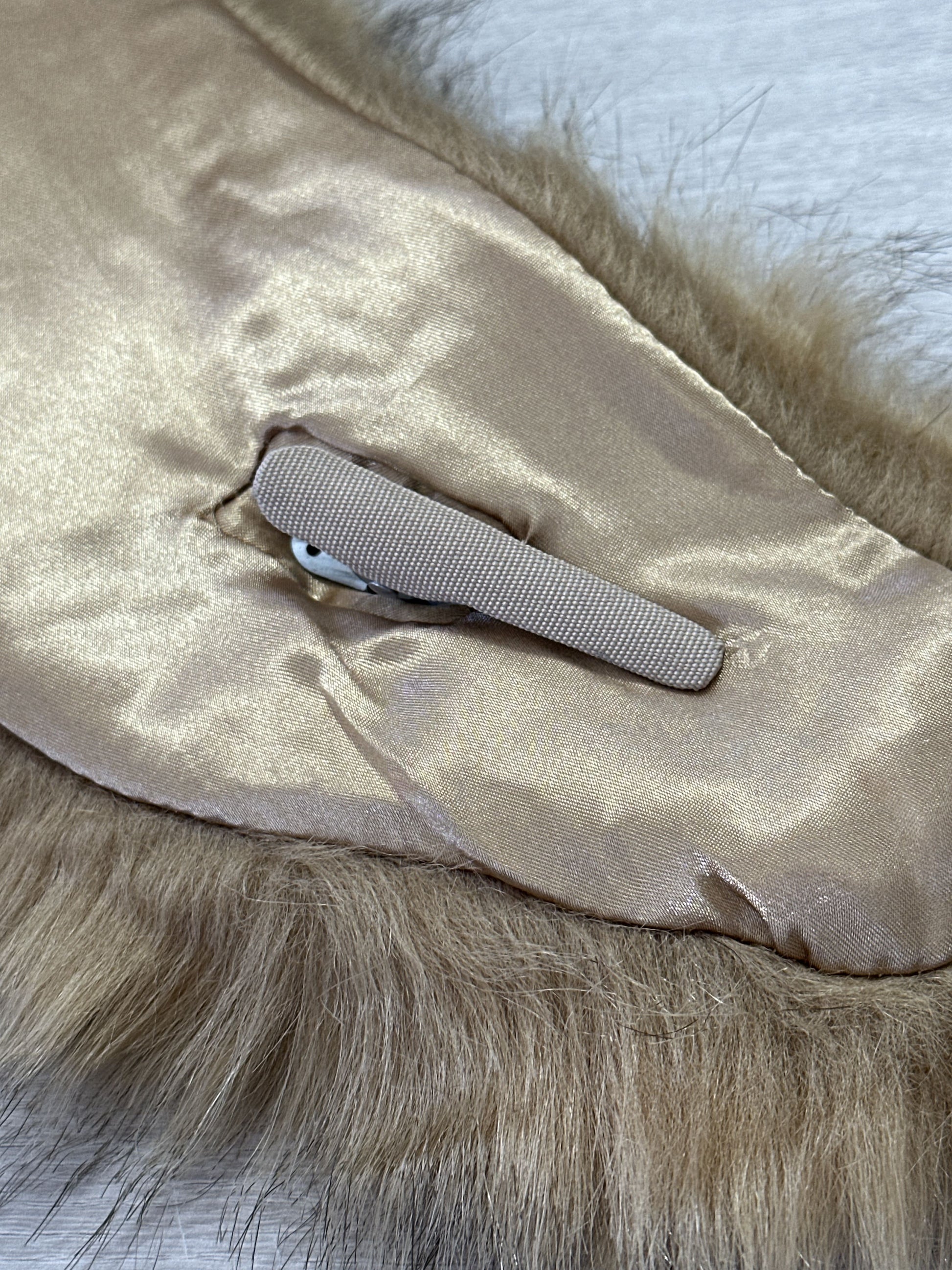 Cuello de pelo sintético con cierre con pinza en la zona delantera.