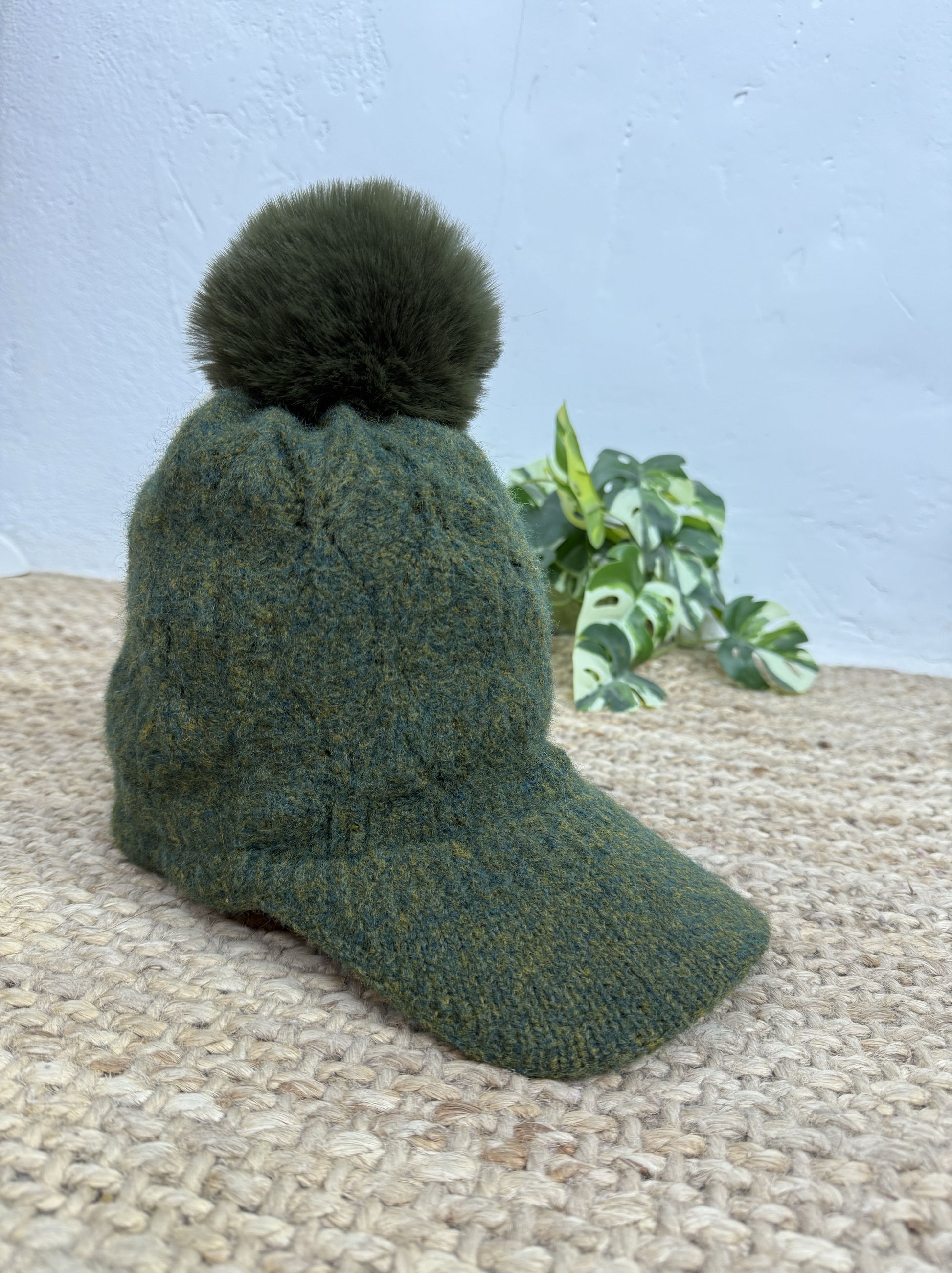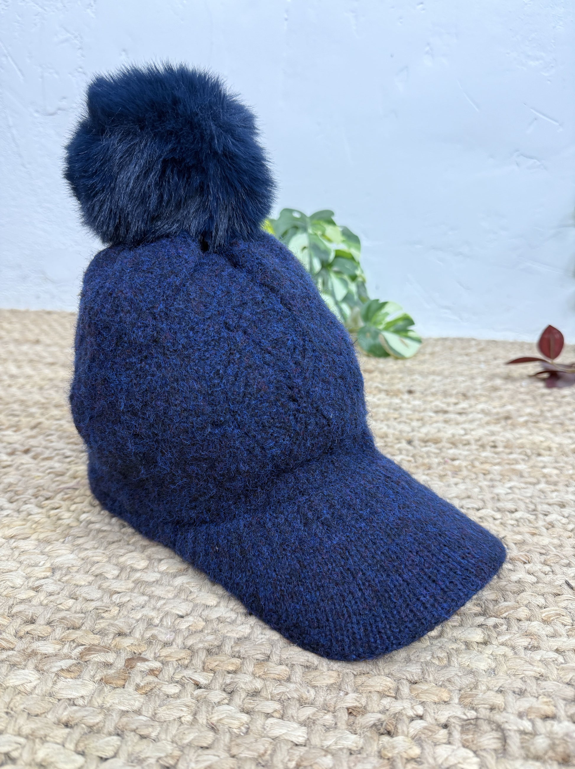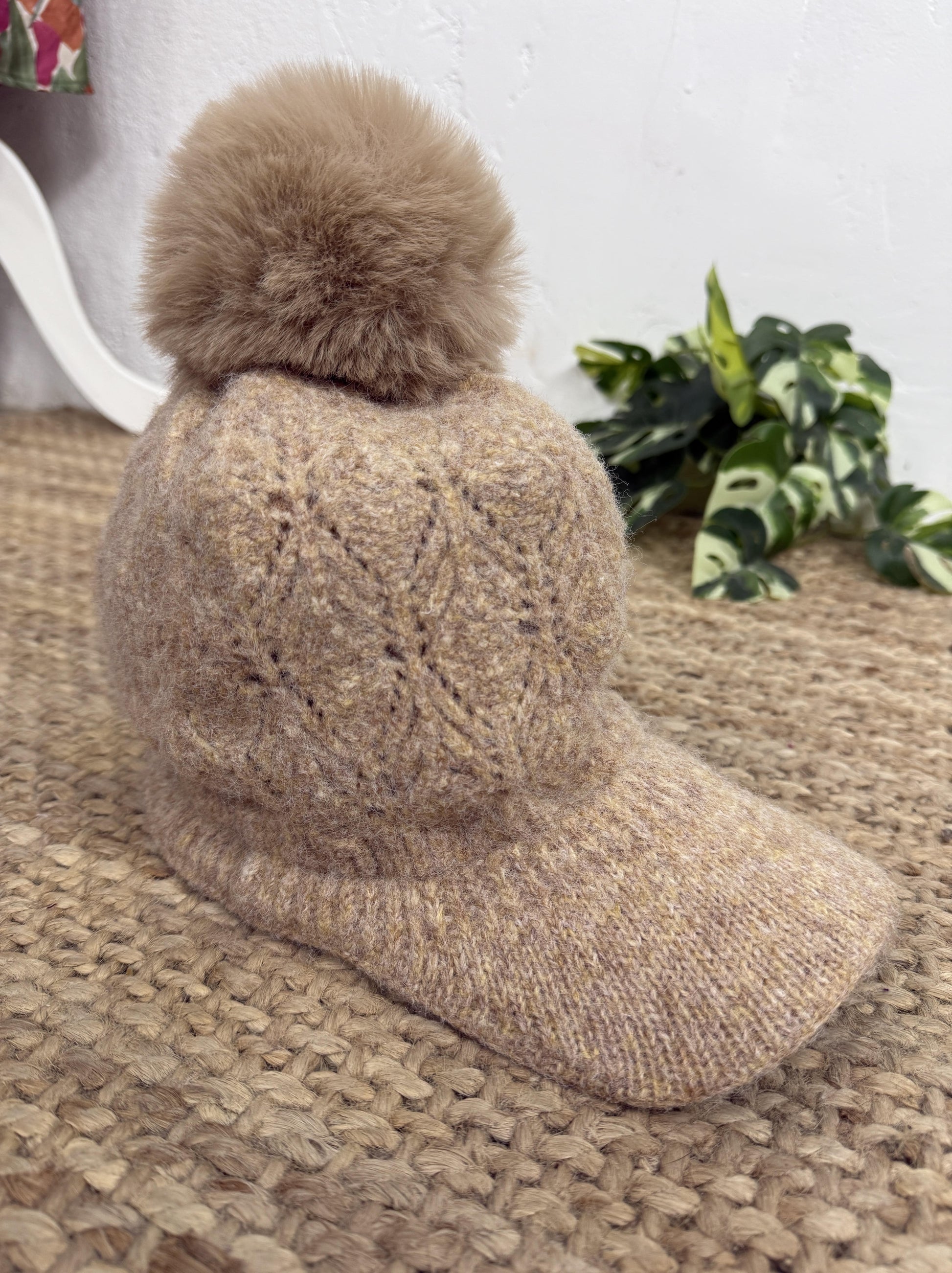 Gorra de mujer con pompón en la parte superior.