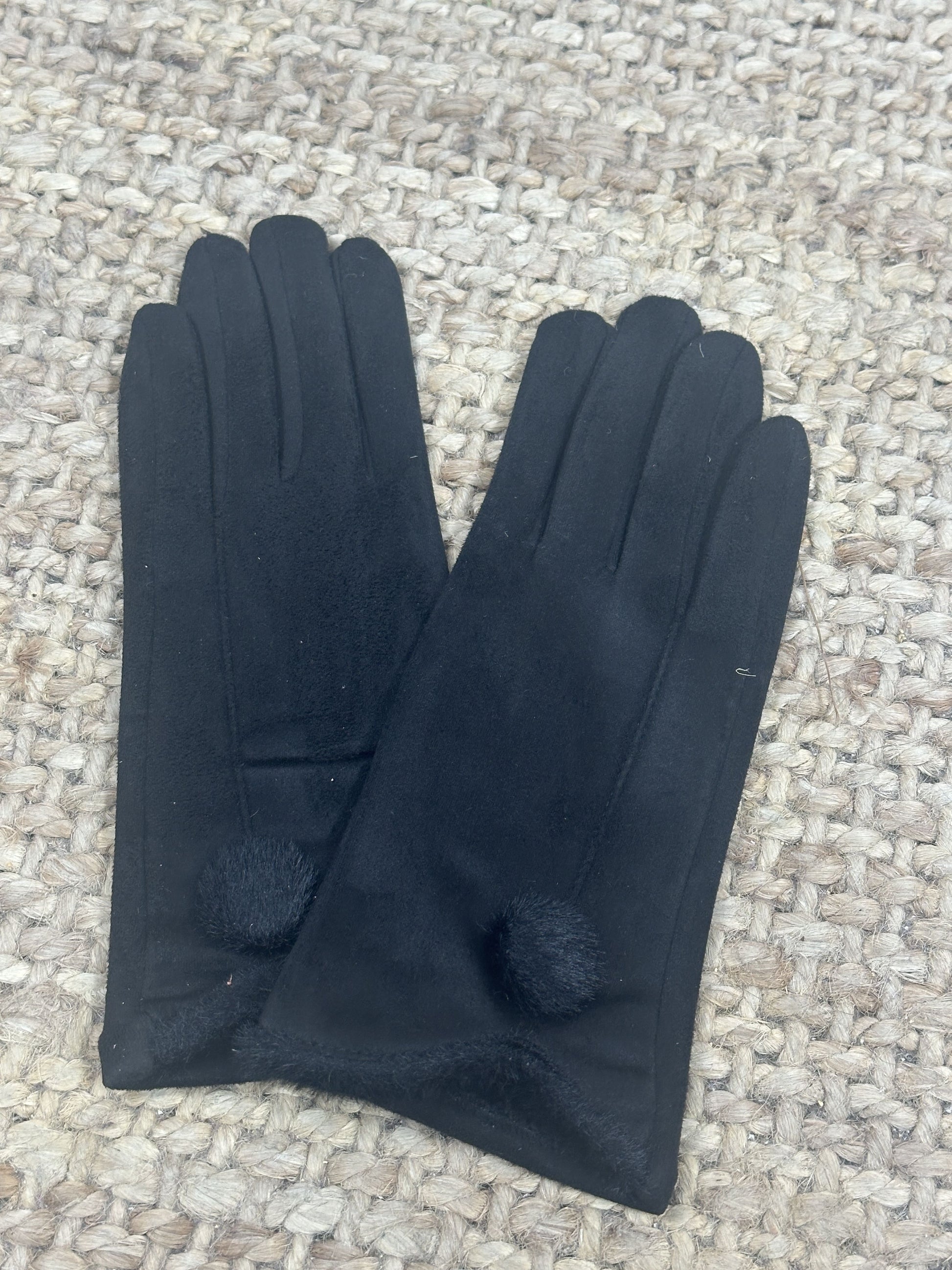 Guantes de antelina con pompón en la muñeca y filo de pelito.