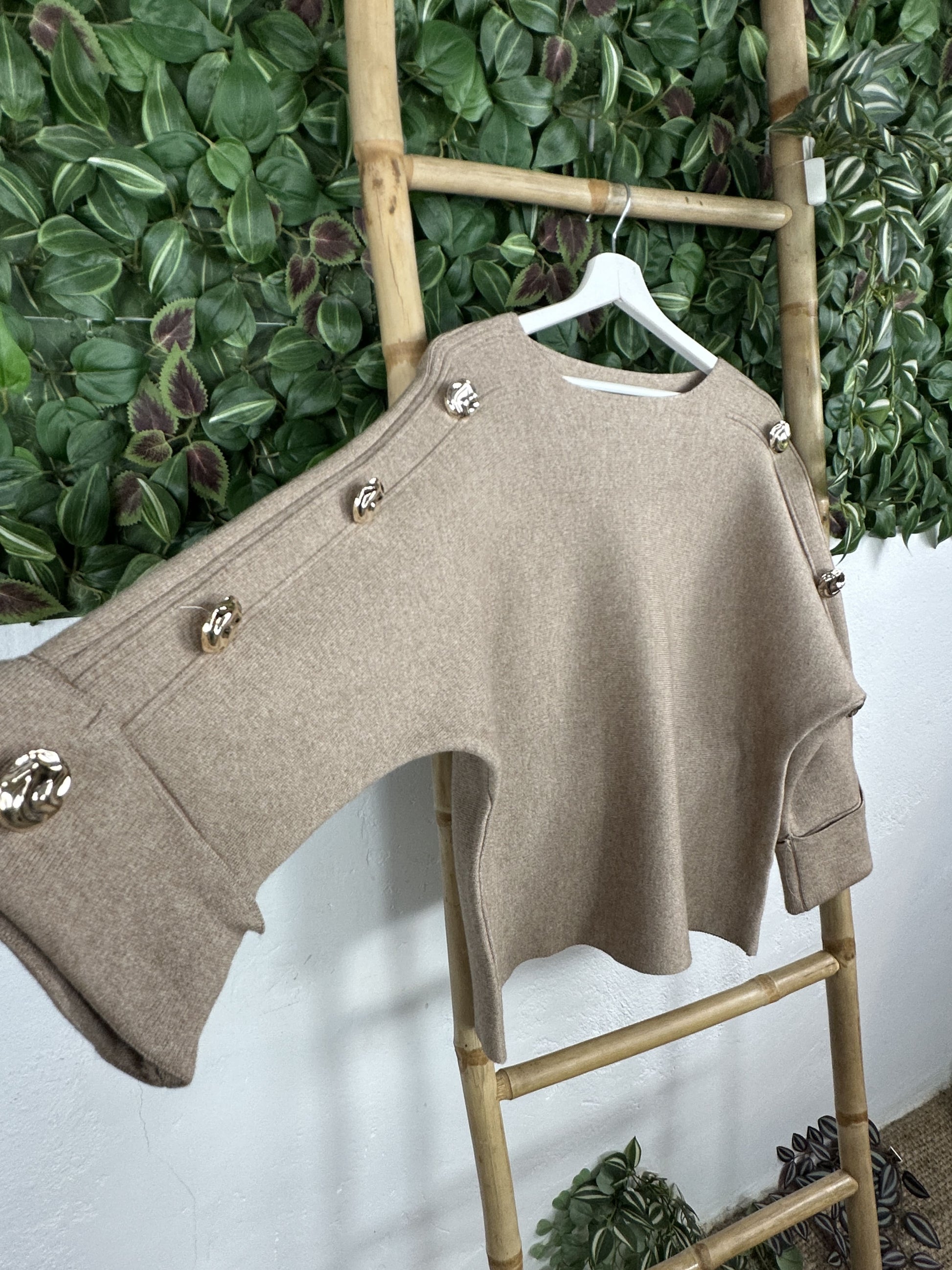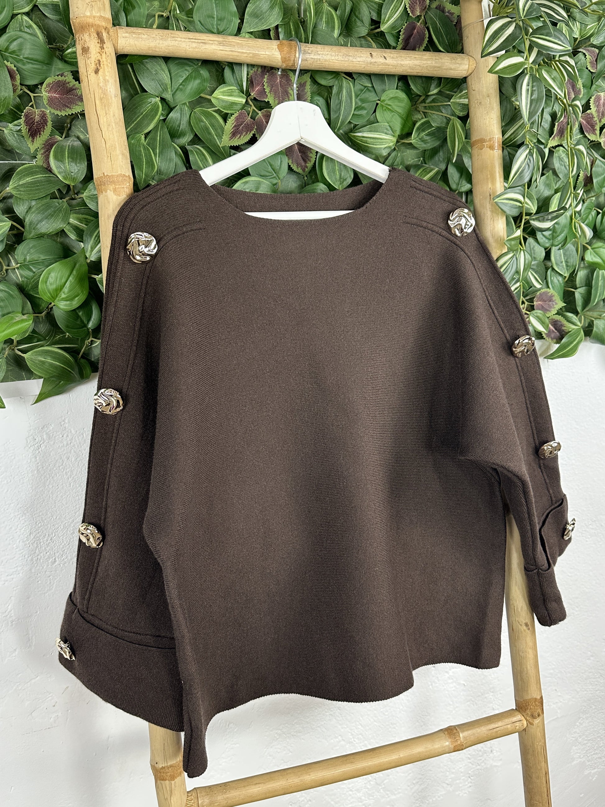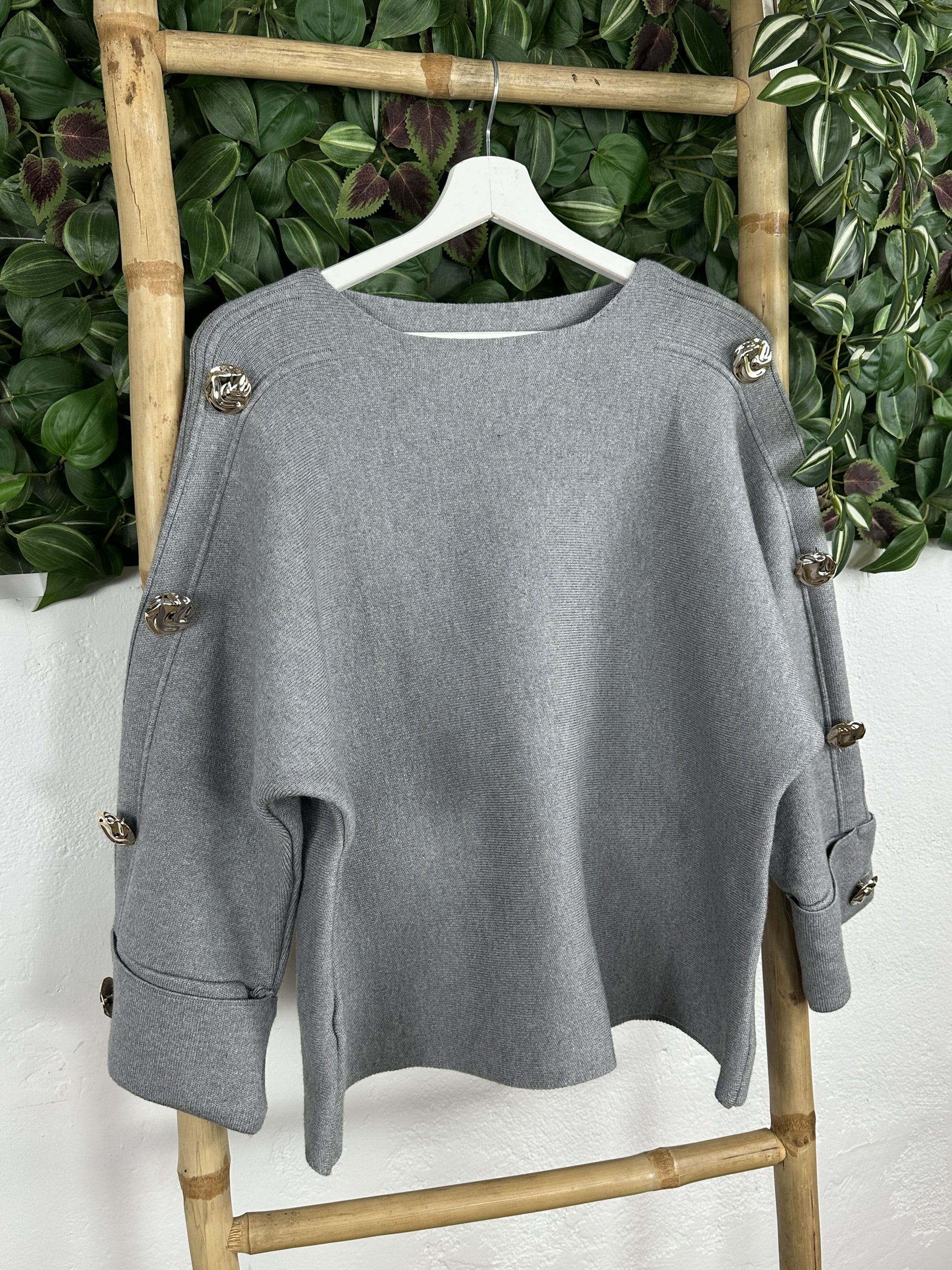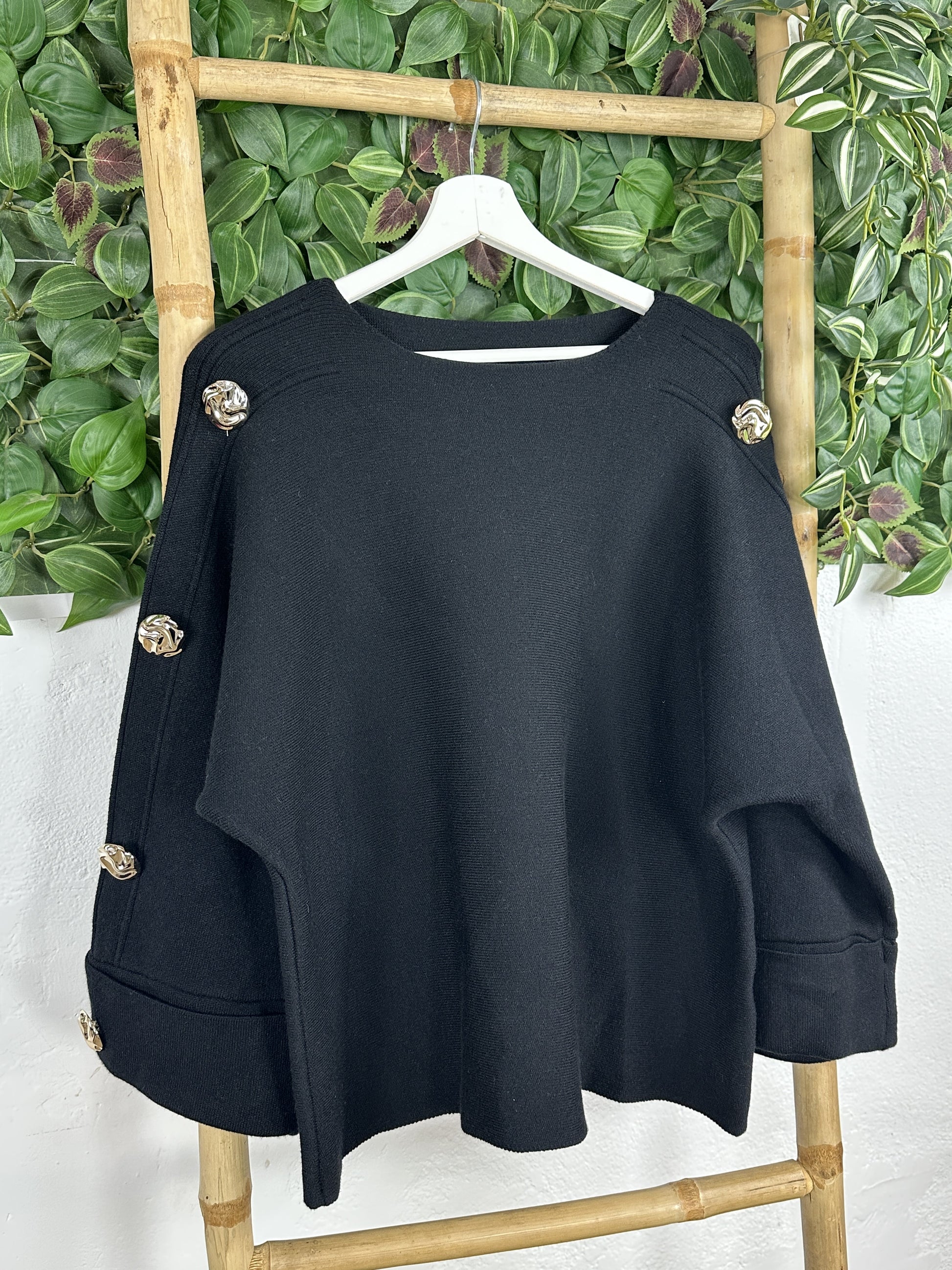 Jersey ancho con detalle de botones maxi a lo largo de la manga.