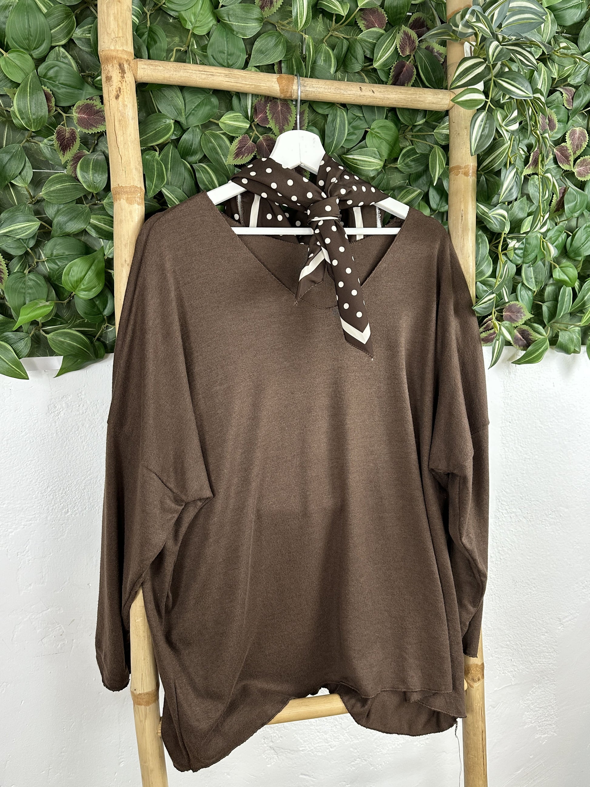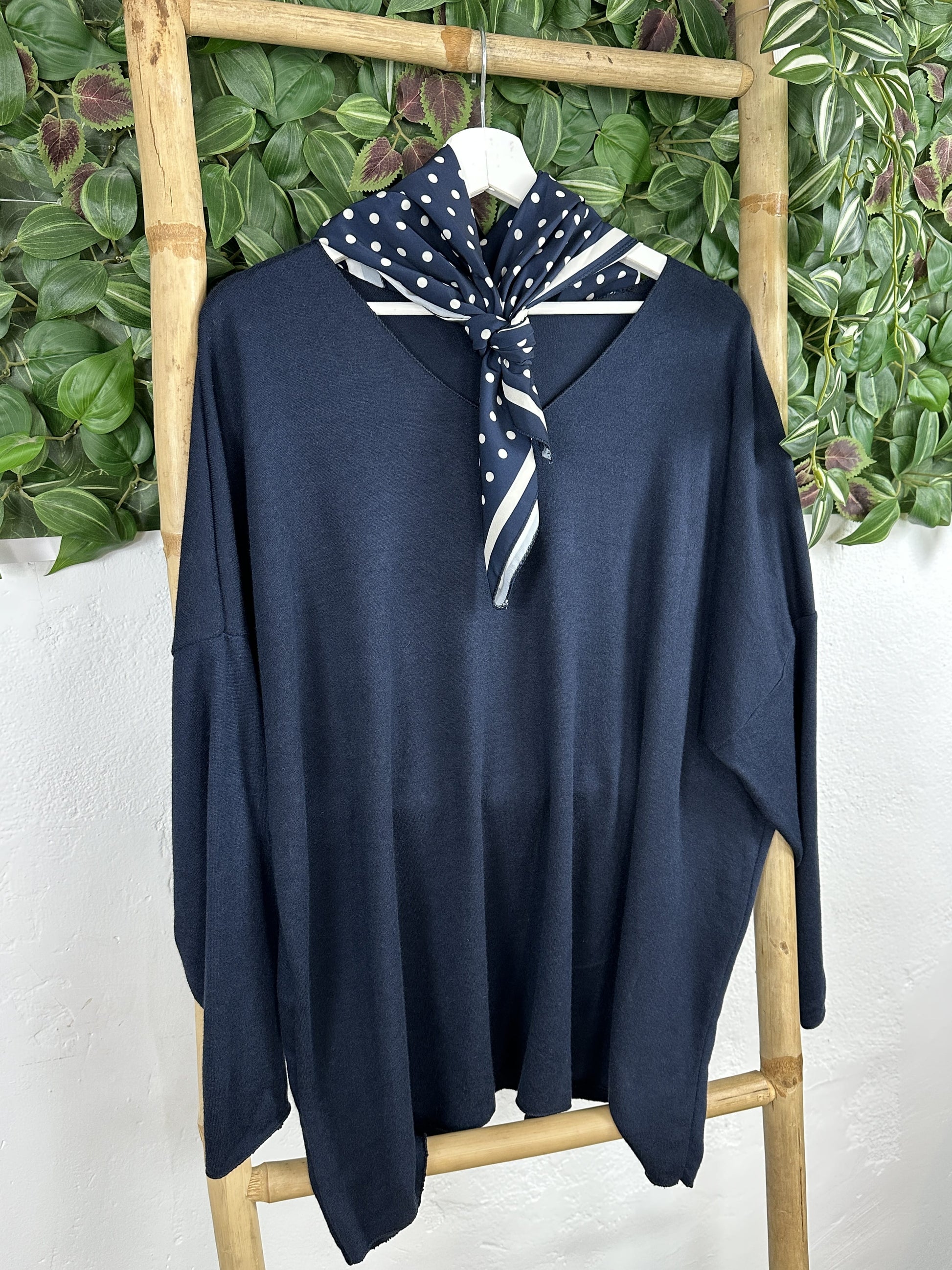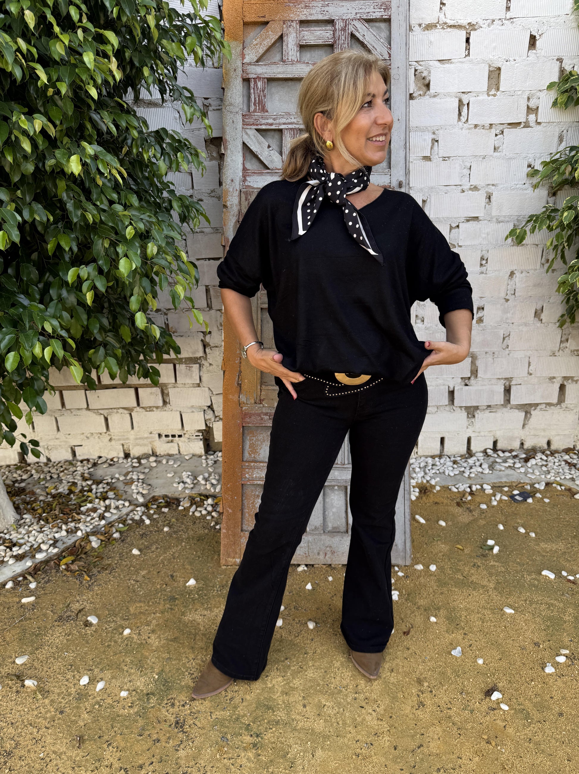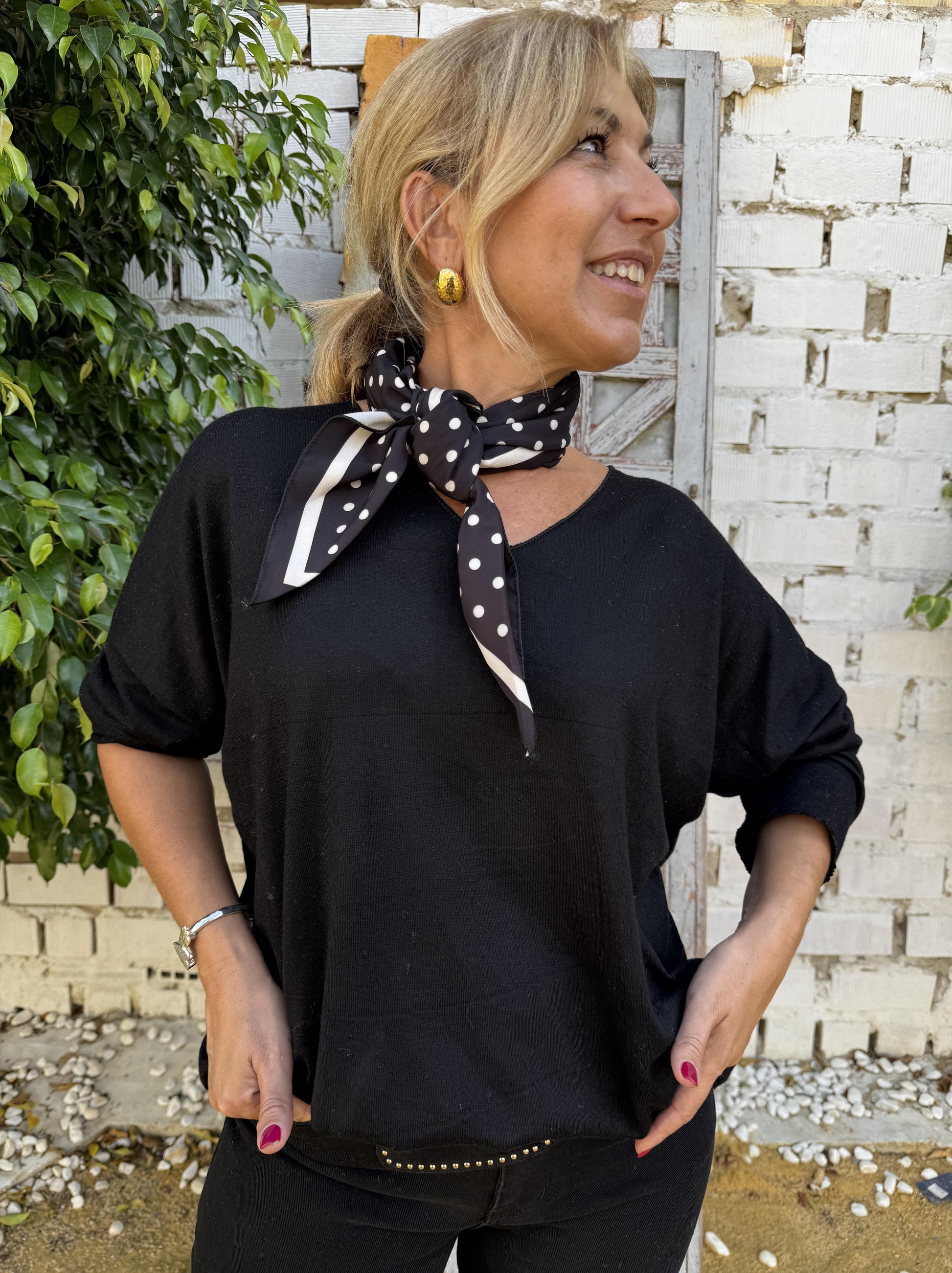 Jersey curvy de manga murciélago con pañuelo estampado de lunares.