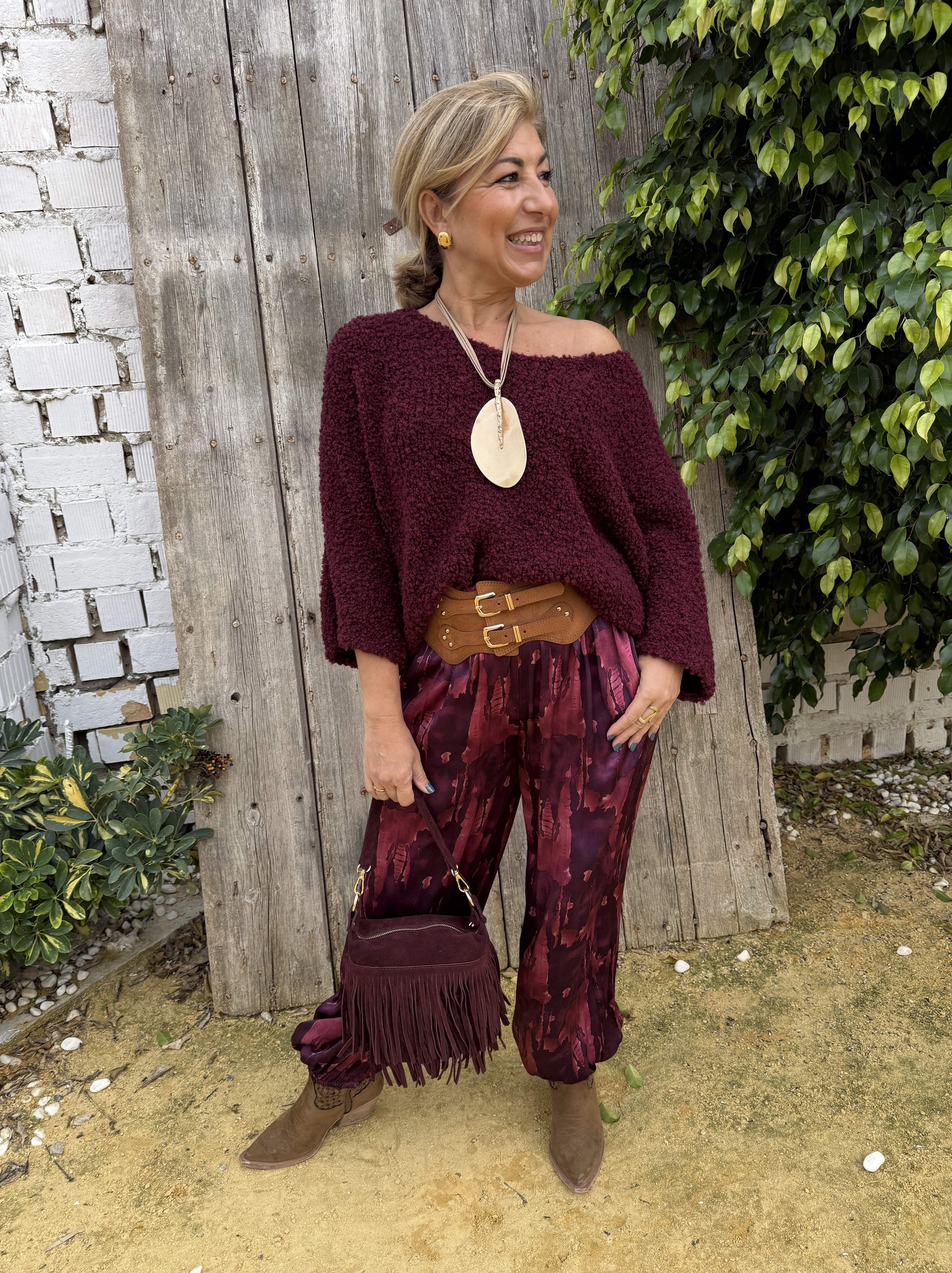 Disponible en color gris, verde cacería, negro, burdeos, tierra, mostaza, blanco roto, arena, topo y beige.