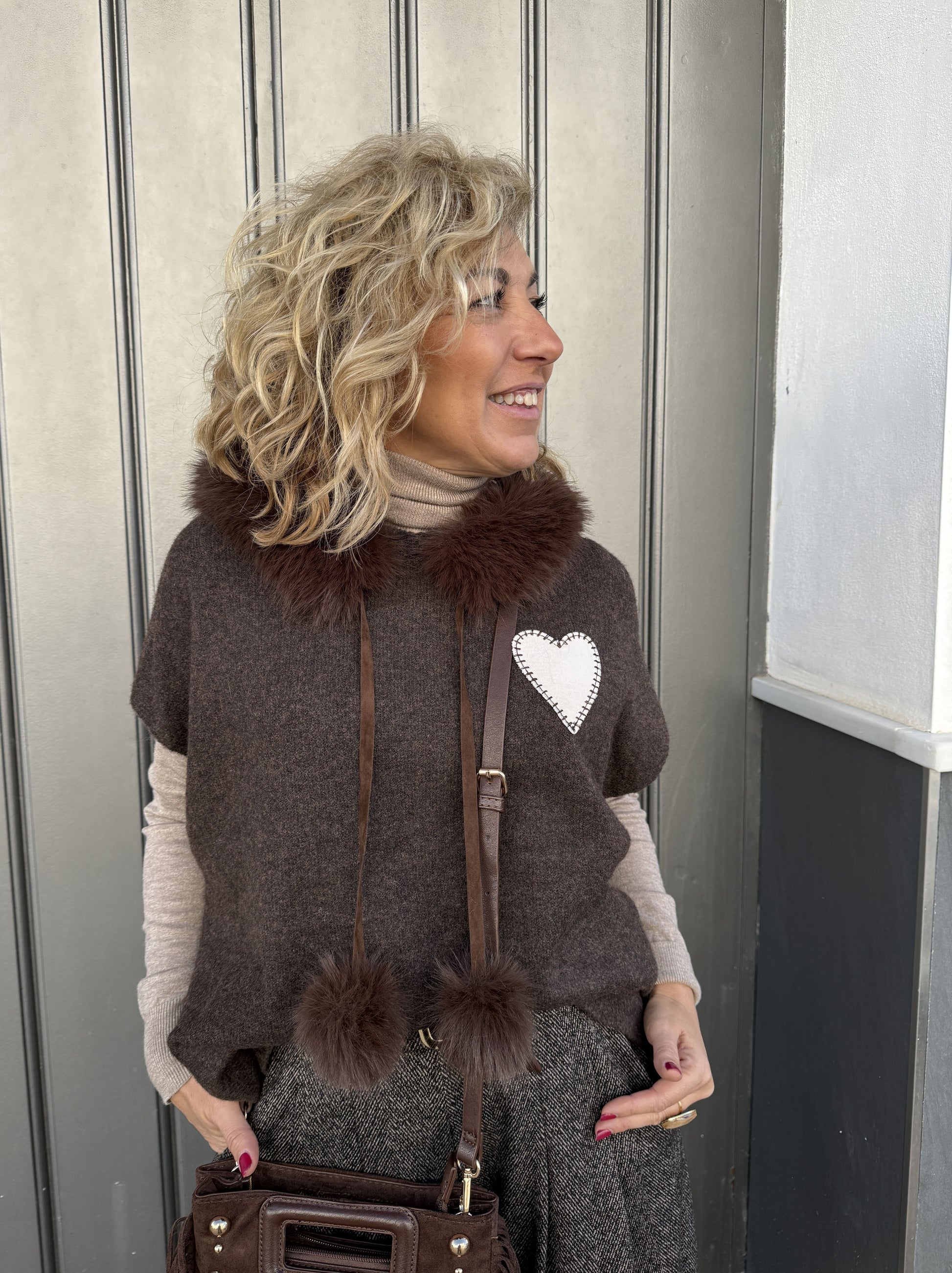 Este jersey tiene un corazón de antelina bordado en el pecho.