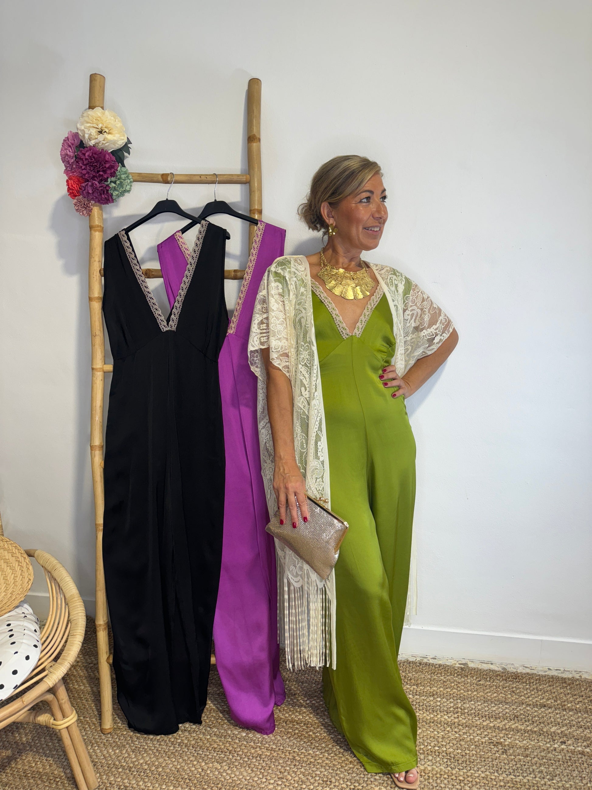 Mono de mujer de tirantes con encaje en la zona del pecho.