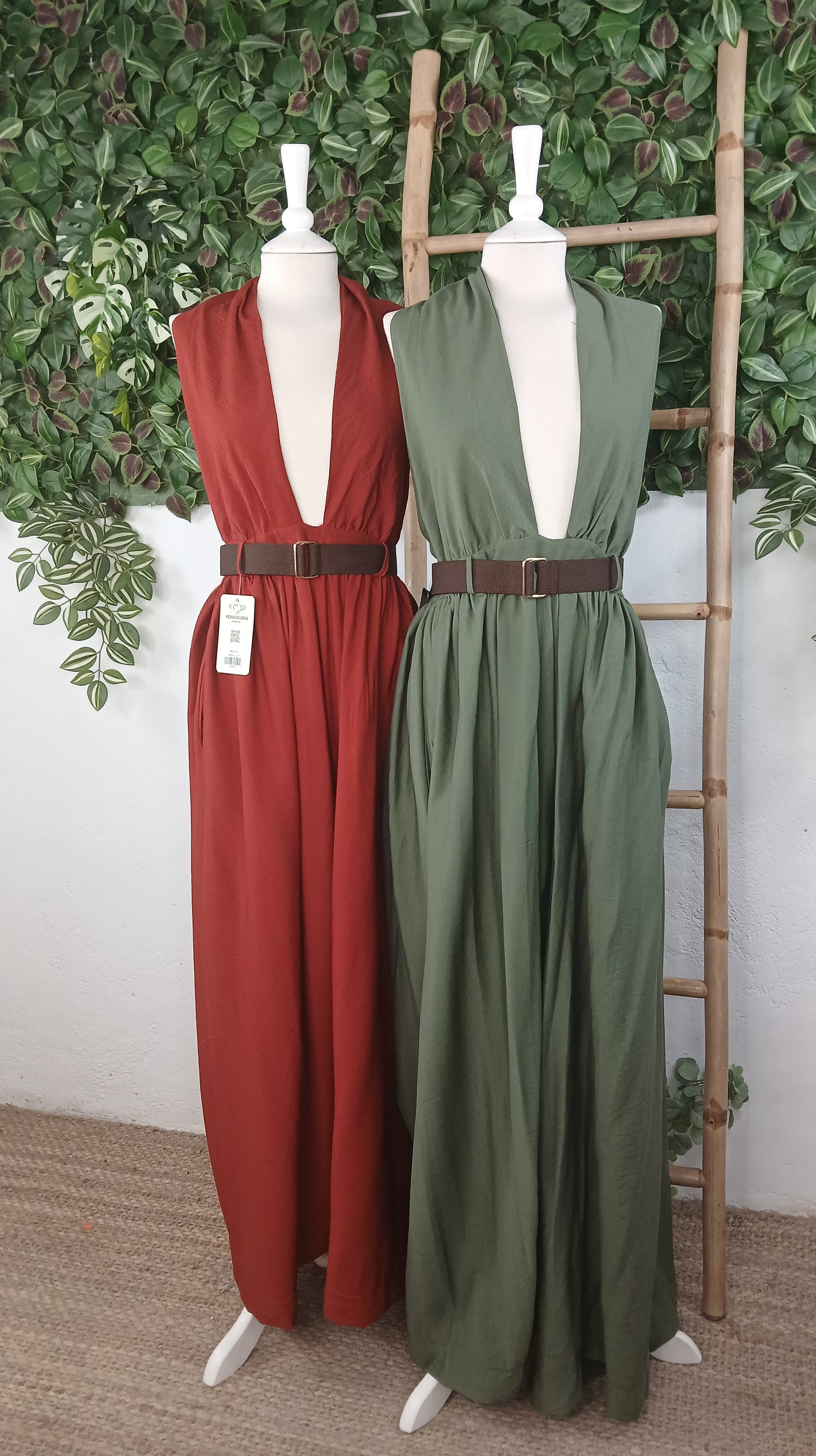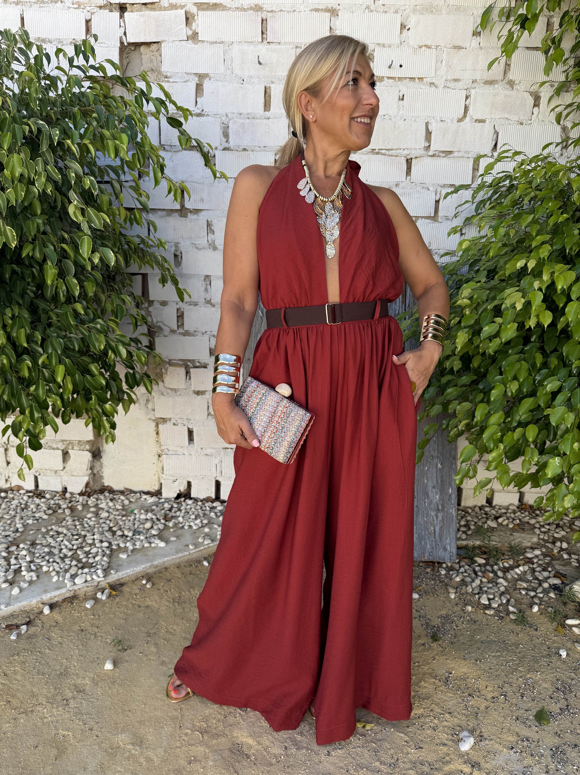 Mono de pantalón con pata de elefante y espalda descubierta.