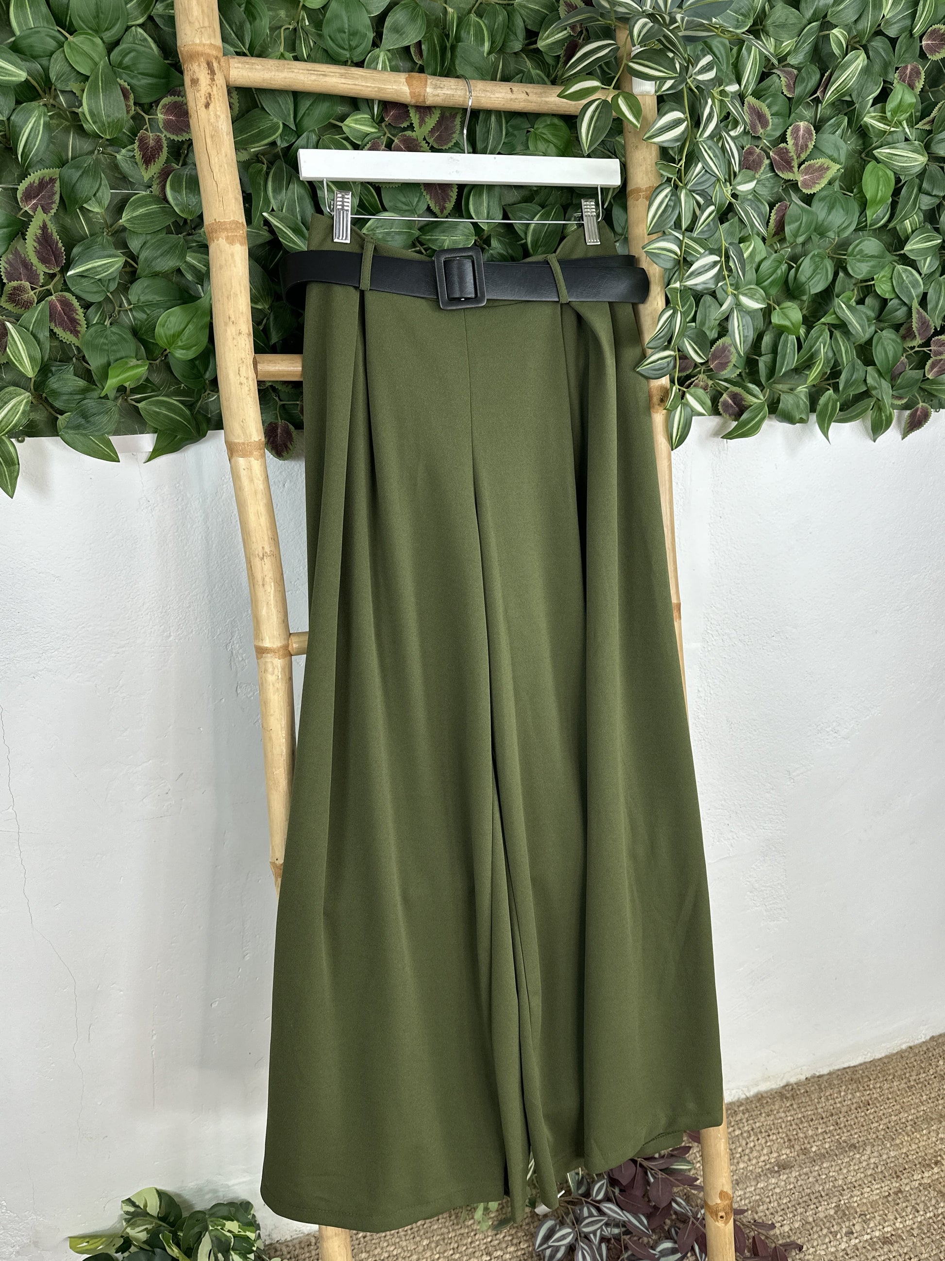 Pantalón tipo palazzo con pinza en la parte delantera.