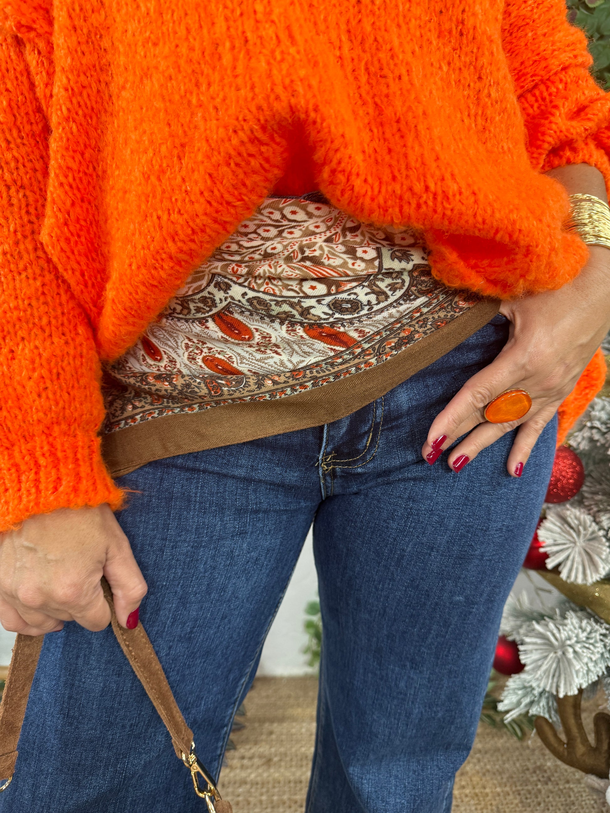 Pañuelo ideal para usarlo en el cuello y como decoración en bolsos, maletas, etc.
